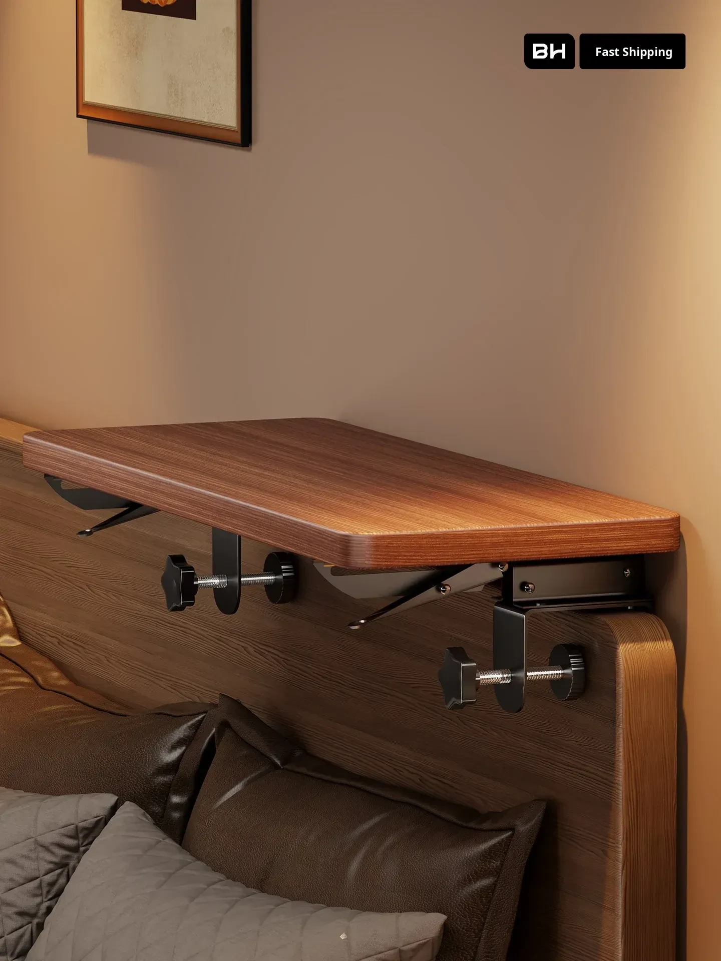 Foldable No-Drill Projector Bedside Stand - Space-Saving Shelf for Bedroom with Extension Socket and Router Tray, Perfect for Home Use