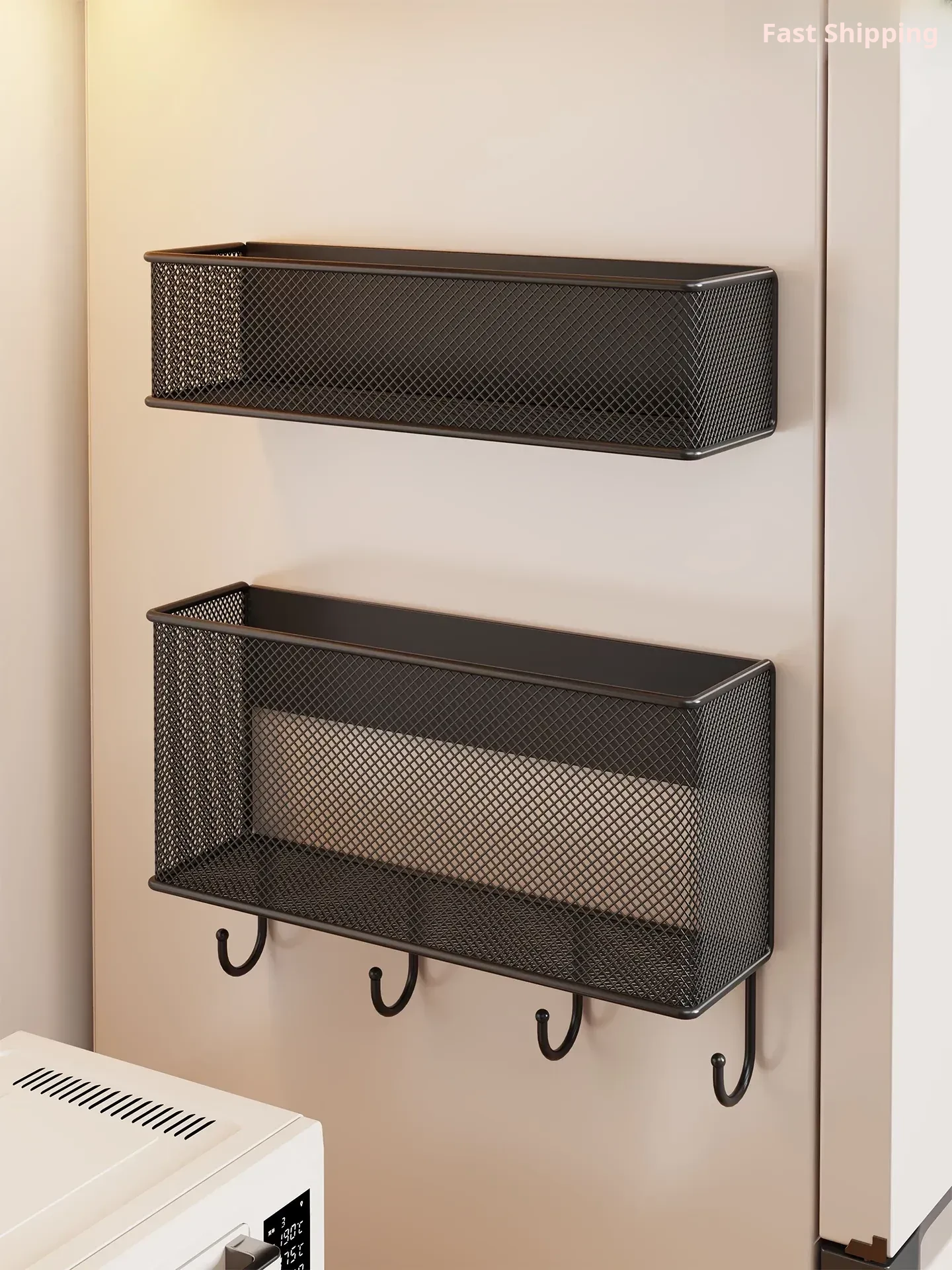 Magnetic Side Storage Rack for Refrigerator - No Drill Wall-Mounted Organizer for Cling Film, Paper Towels, and Spice Hooks - Your Ultimate Kitchen Space Saver!