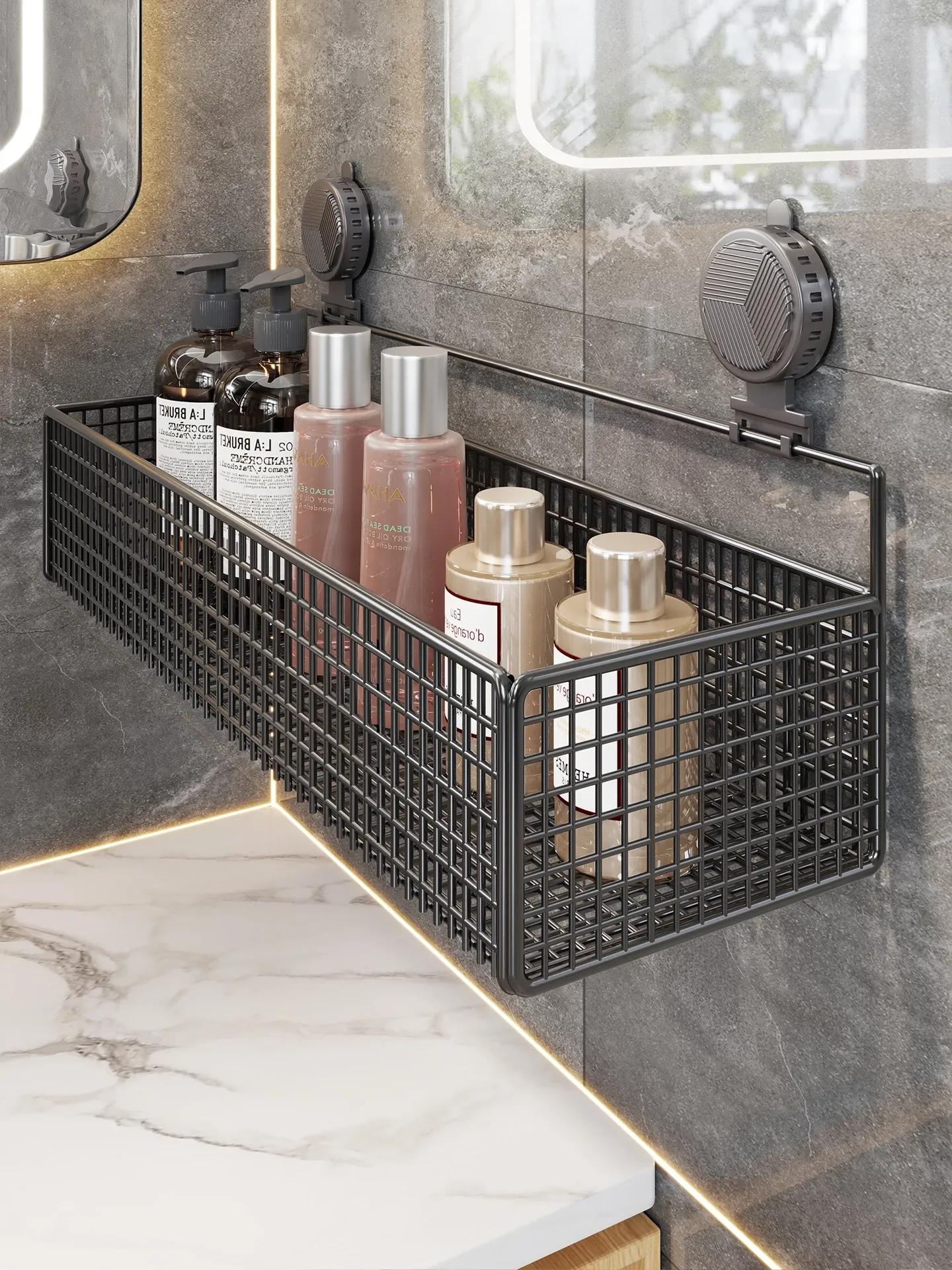 Suction Cup Bathroom Organizer - Wall-Mounted, No Drilling Required, Perfect for Storing Toiletries and Essentials in Your Washroom or Toilet!