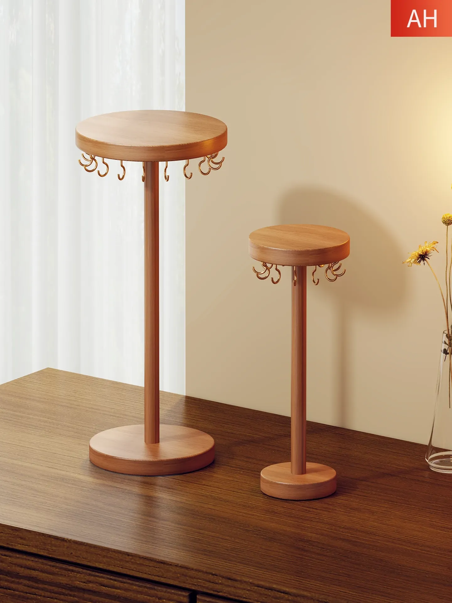 Wooden Desktop Necklace Display Stand - Elegant Jewelry Organizer with Hooks for Bracelets and Accessories Storage and Showcase. Perfect for Retail Displays and Personal Use!