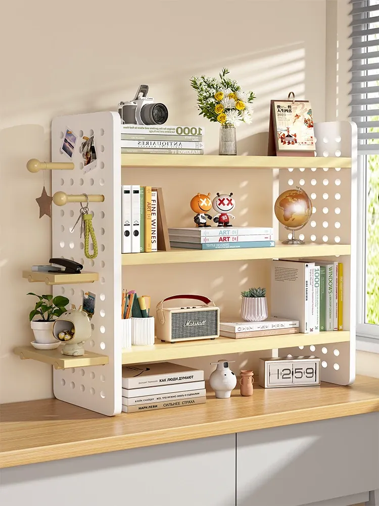 Multi-Tier Desktop Bookshelf Organizer - Stylish Pegboard Storage Rack for Home Office, Study, and Workspaces - Perfect for Keeping Your Desk Tidy and Efficient!
