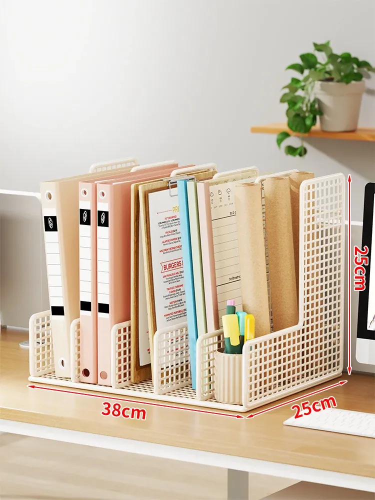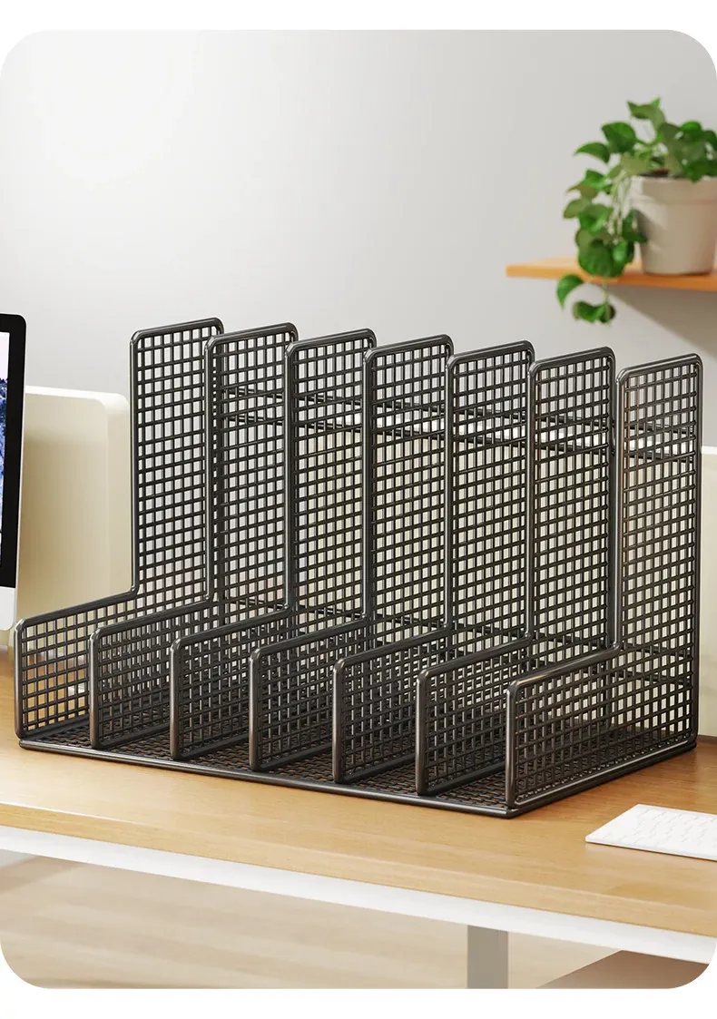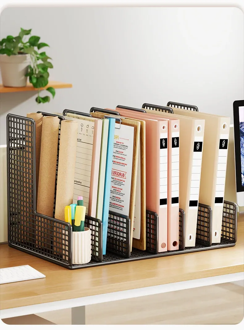 オフィスデスク用A4ファイル収納ボックス - 多段階の仕切りで書類をスッキリ整理!仕事効率アップに最適なファイルフレーム。あなたのデスクを美しく整え、必要な書類をすぐに取り出せる便利アイテム!