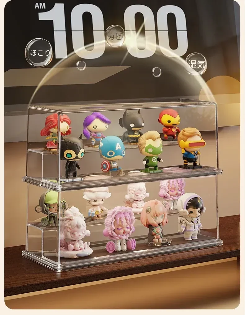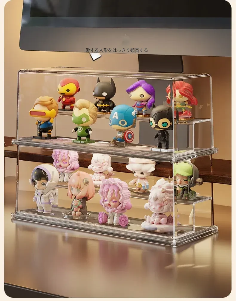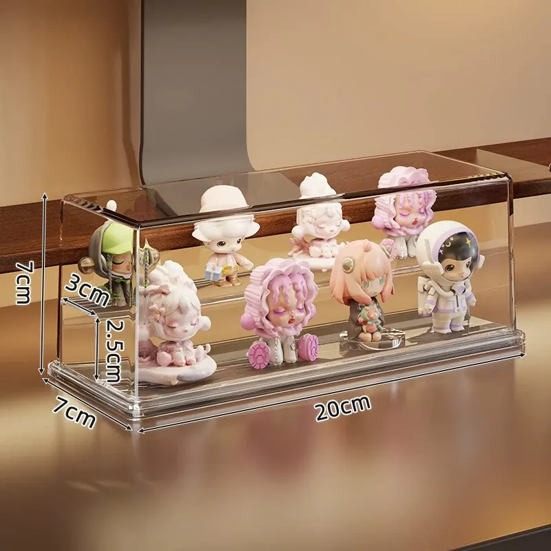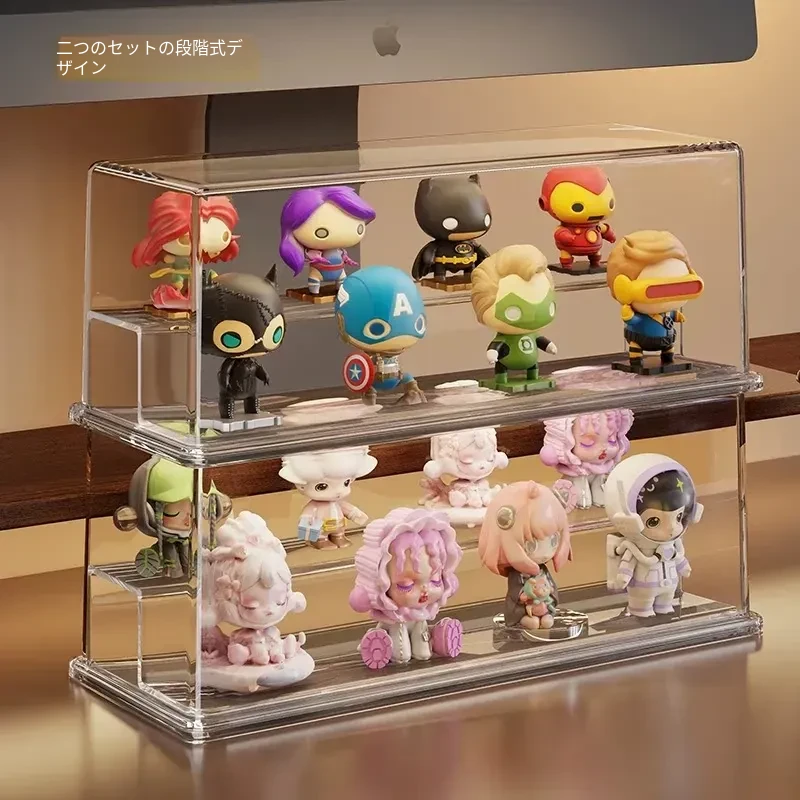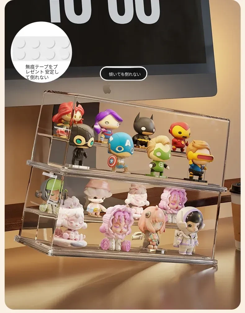 かわいいデザインのアクリル製ブラインドボックスディスプレイスタンド!手軽に組み立て不要、ホコリから守るおしゃれな収納ボックス。あなたのフィギュアを美しく飾って、デスクを華やかに演出しましょう!