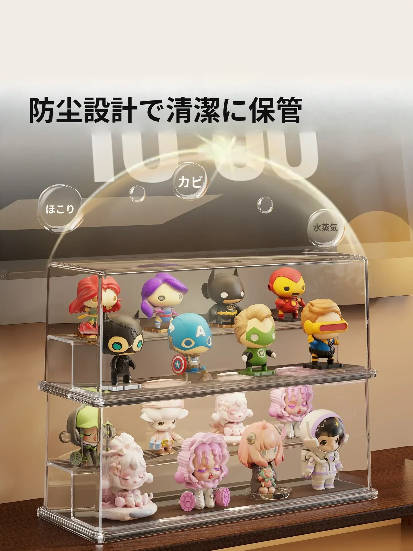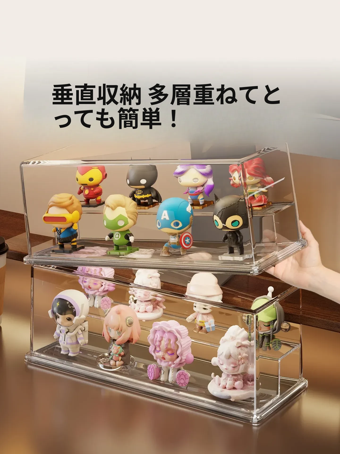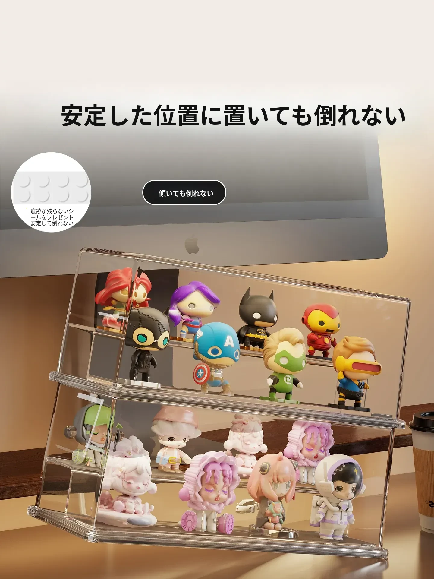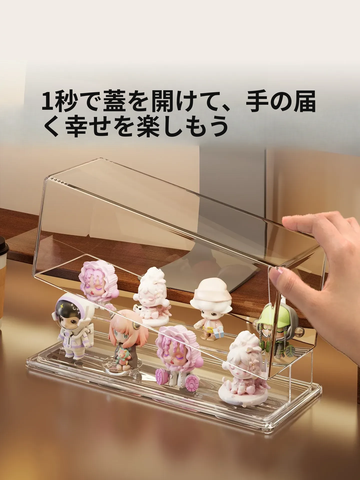 かわいいデザインのアクリル製ブラインドボックスディスプレイスタンド!手軽に組み立て不要、ホコリから守るおしゃれな収納ボックス。あなたのフィギュアを美しく飾って、デスクを華やかに演出しましょう!