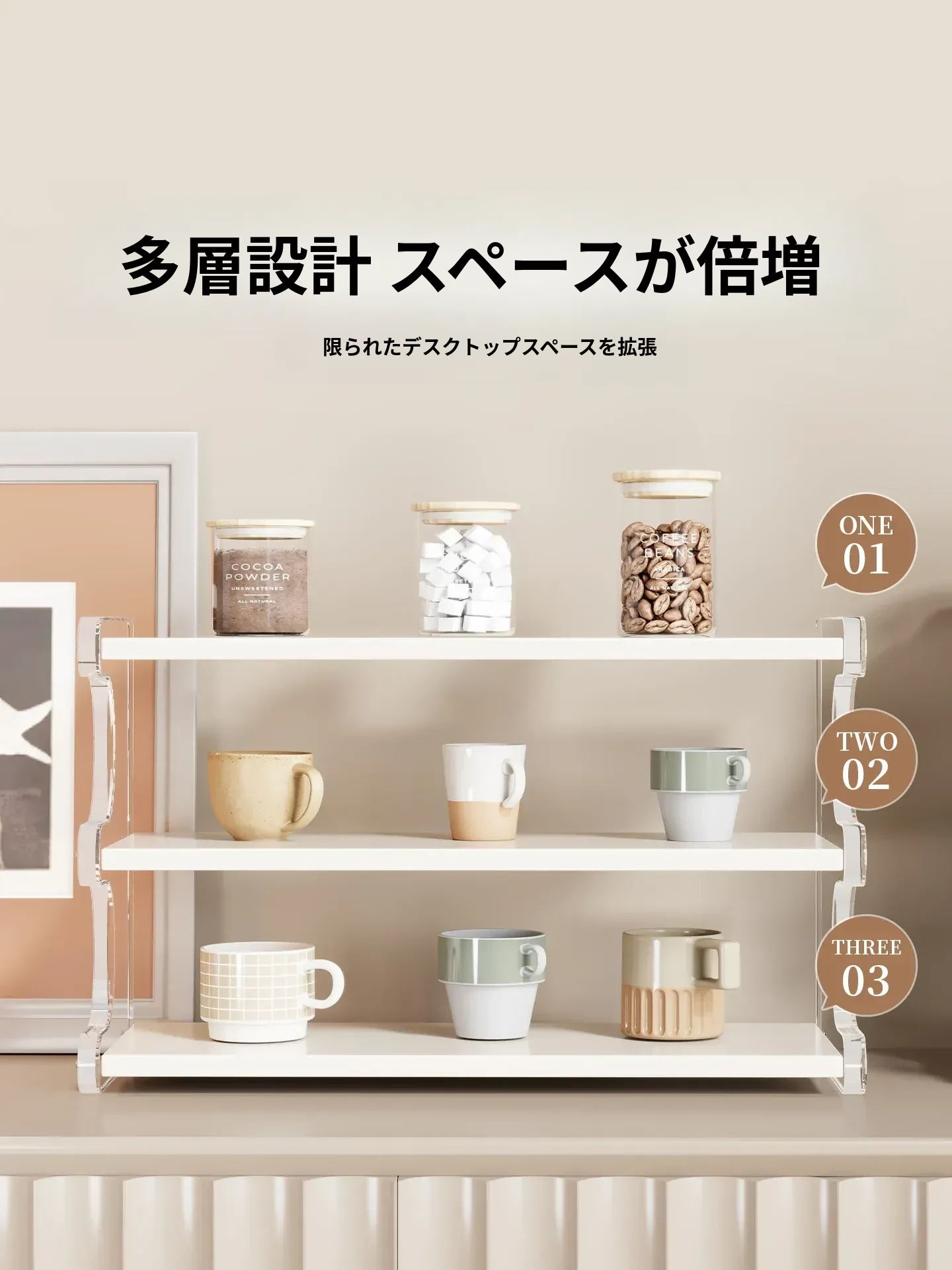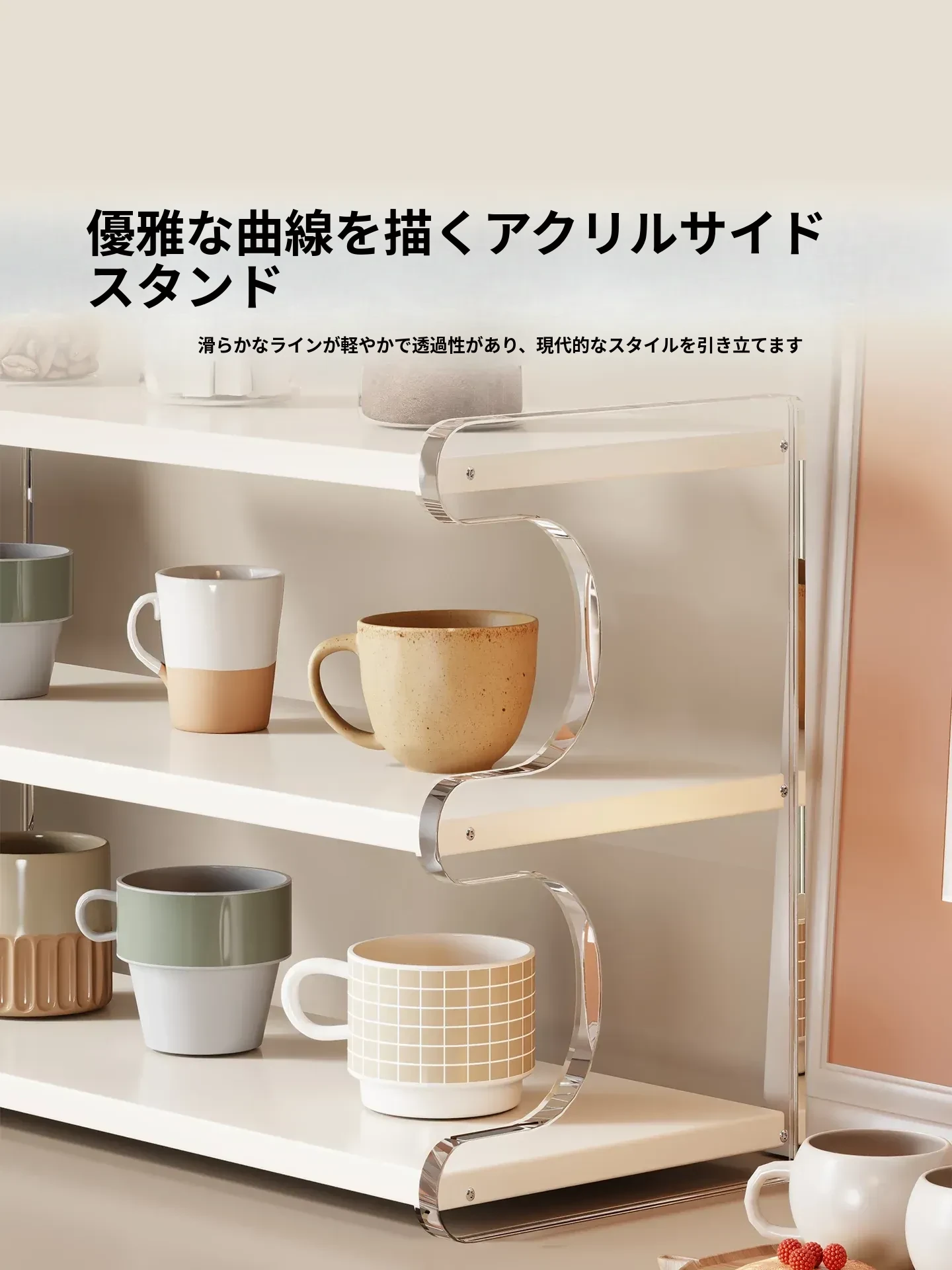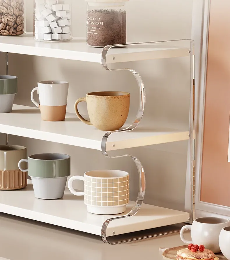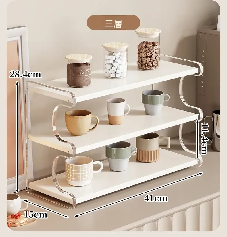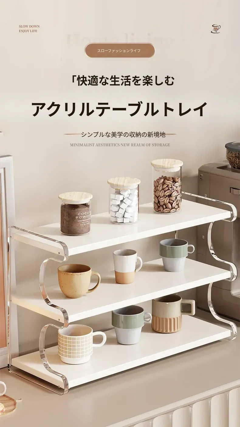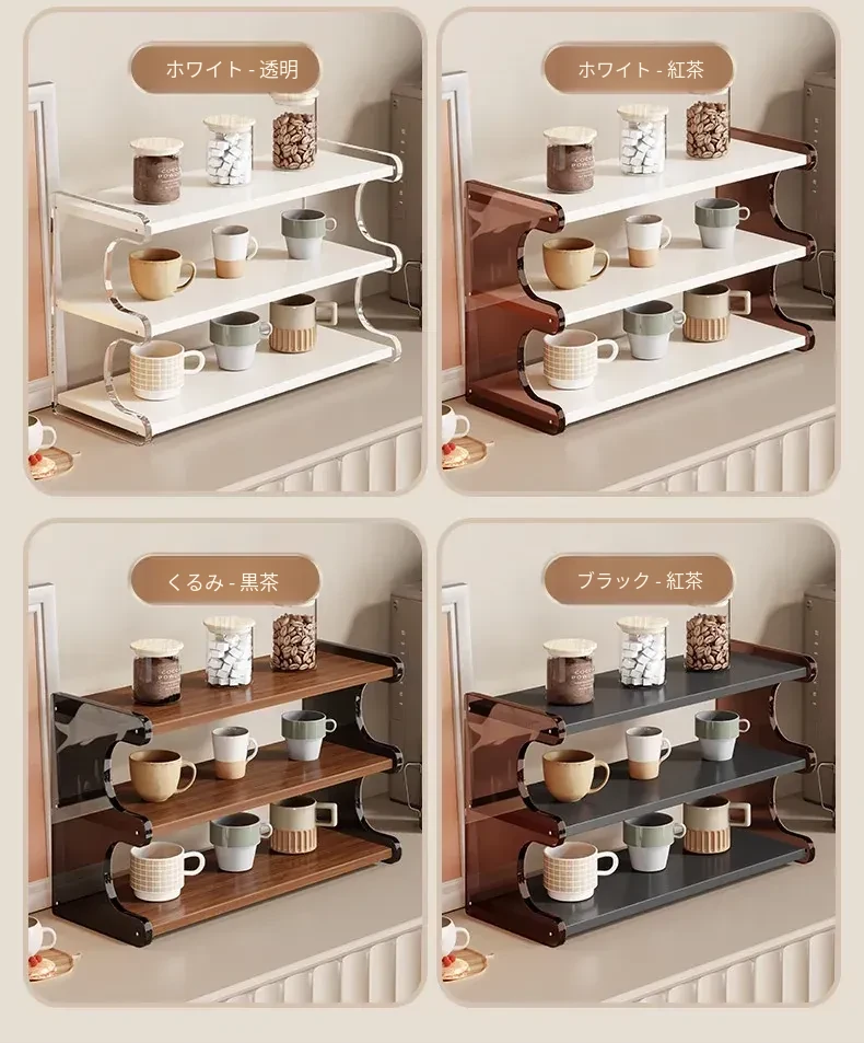 デスクトップアクリル収納ラック - テーブル上のカップやティーカップ、コーヒーカップをオシャレに整理!美しいデザインでスペースを有効活用し、あなたのインテリアを引き立てます。