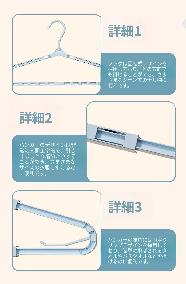 赤ちゃん専用の伸縮式ハンガー!新生児の衣類も簡単に干せる便利なアイテム!おしゃれで使いやすいベビー用品、衣類をしっかりサポートします。