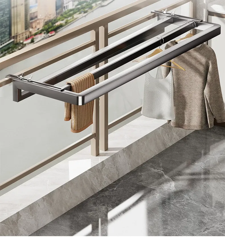 バルコニー用多機能衣類干しラック|調整可能な収納神器|暖房器具の上に取り付けられ、穴を開けずに簡単に使用可能!お家で手軽に衣類を乾かそう!