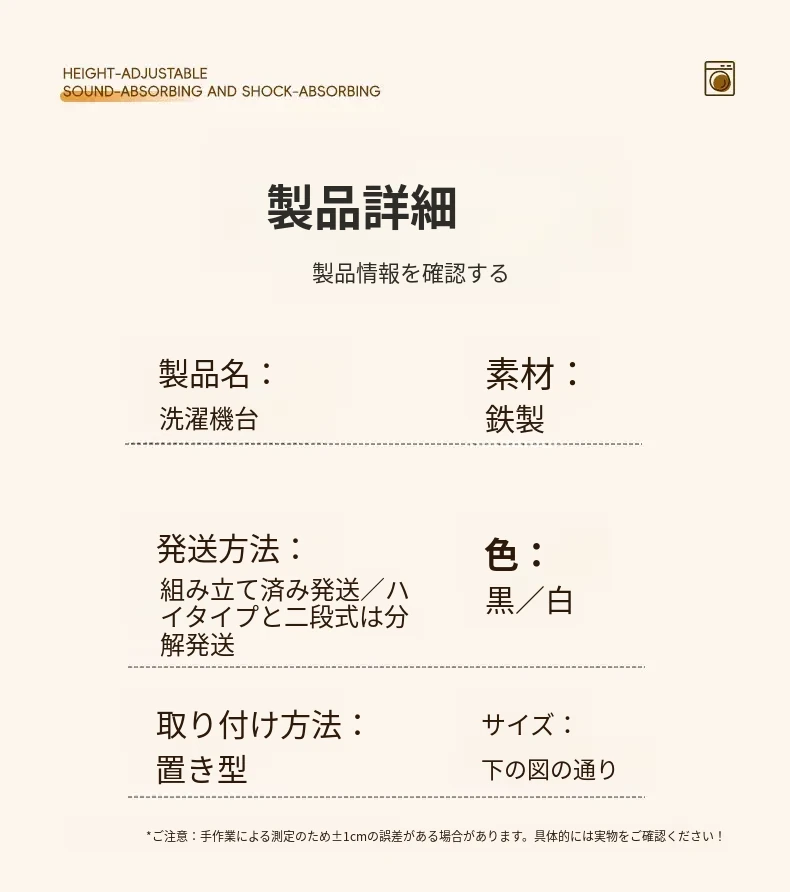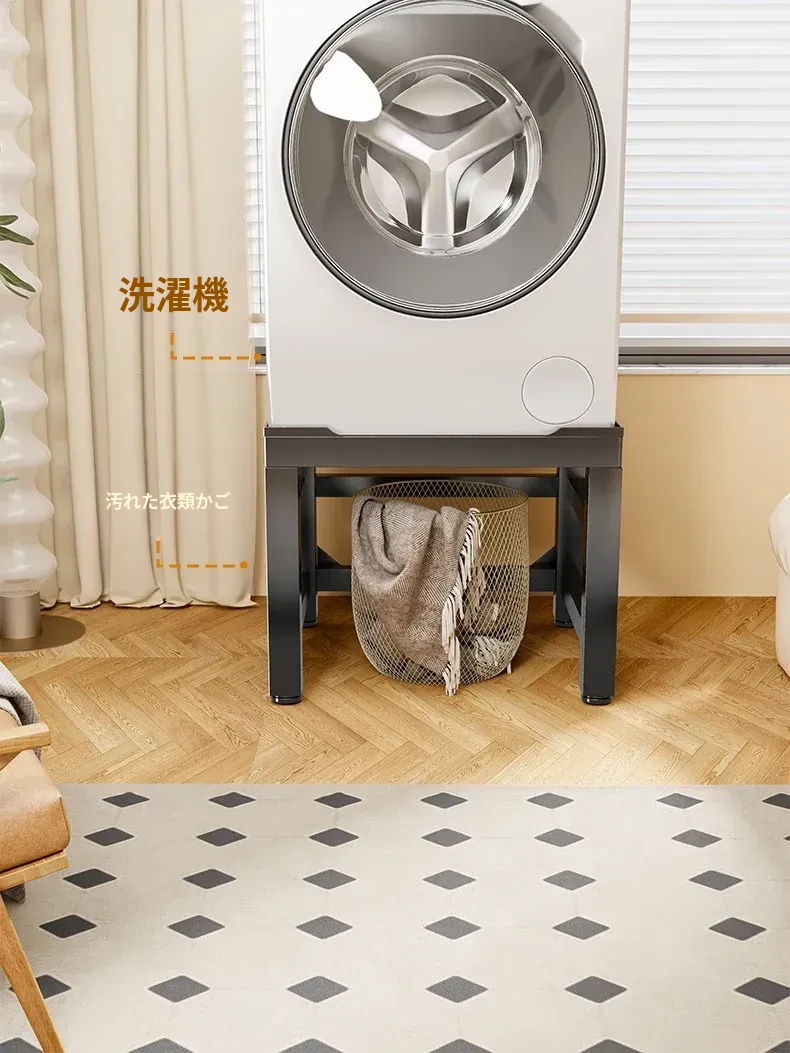 全自動洗濯機用高床台 - 安定感抜群!冷蔵庫も置ける厚型収納ラック、スペースを有効活用してお部屋をスッキリ整理!