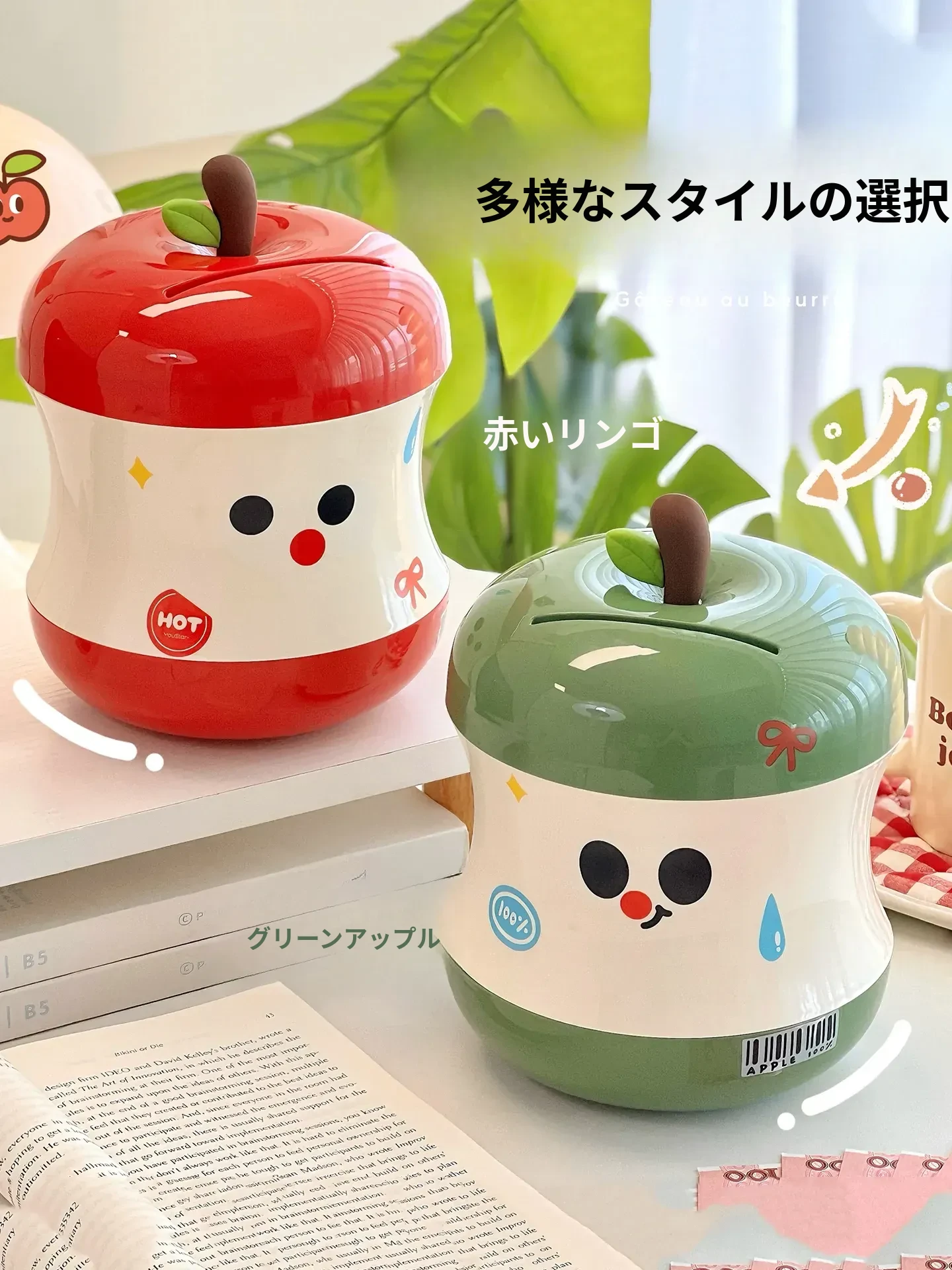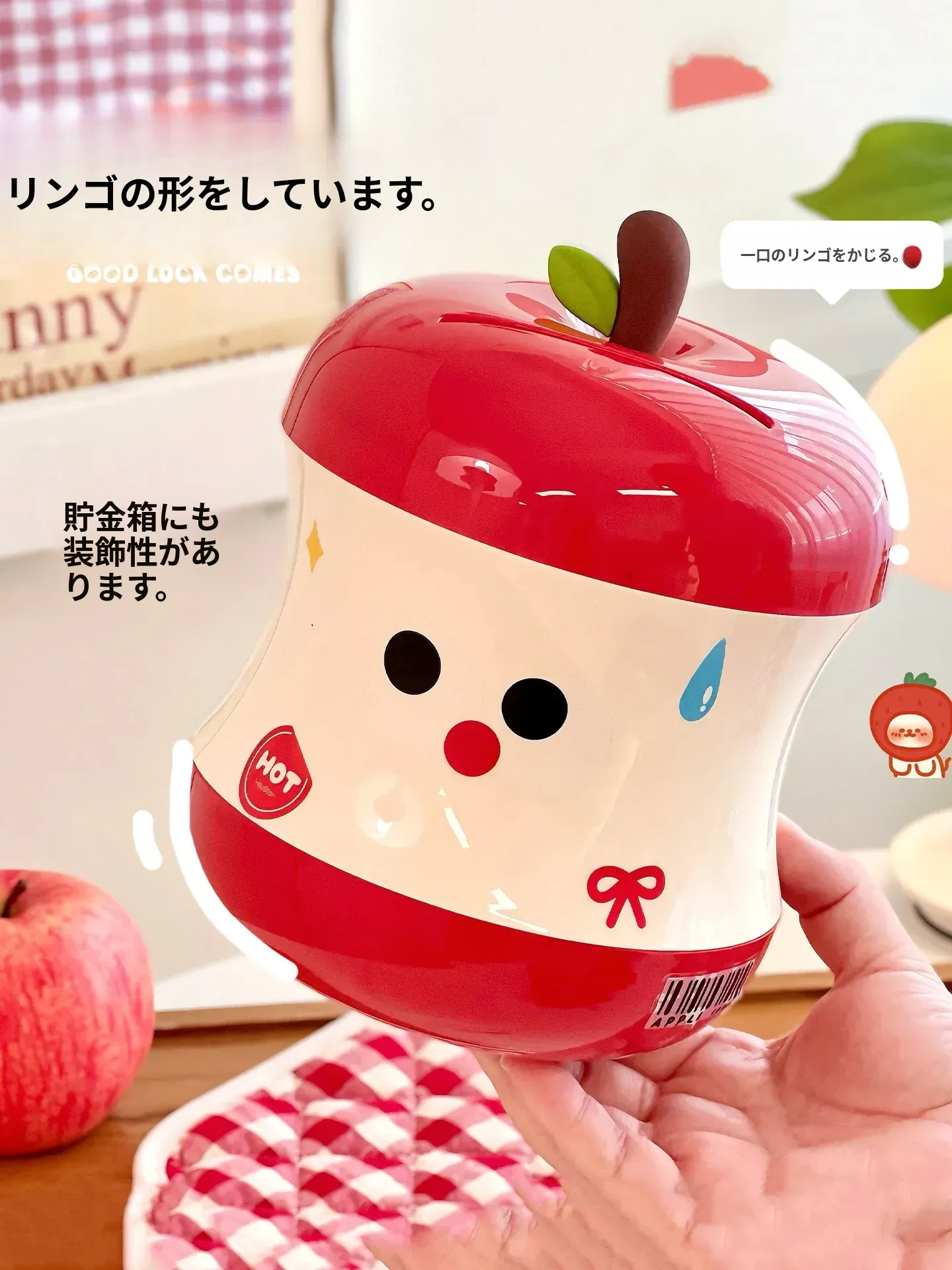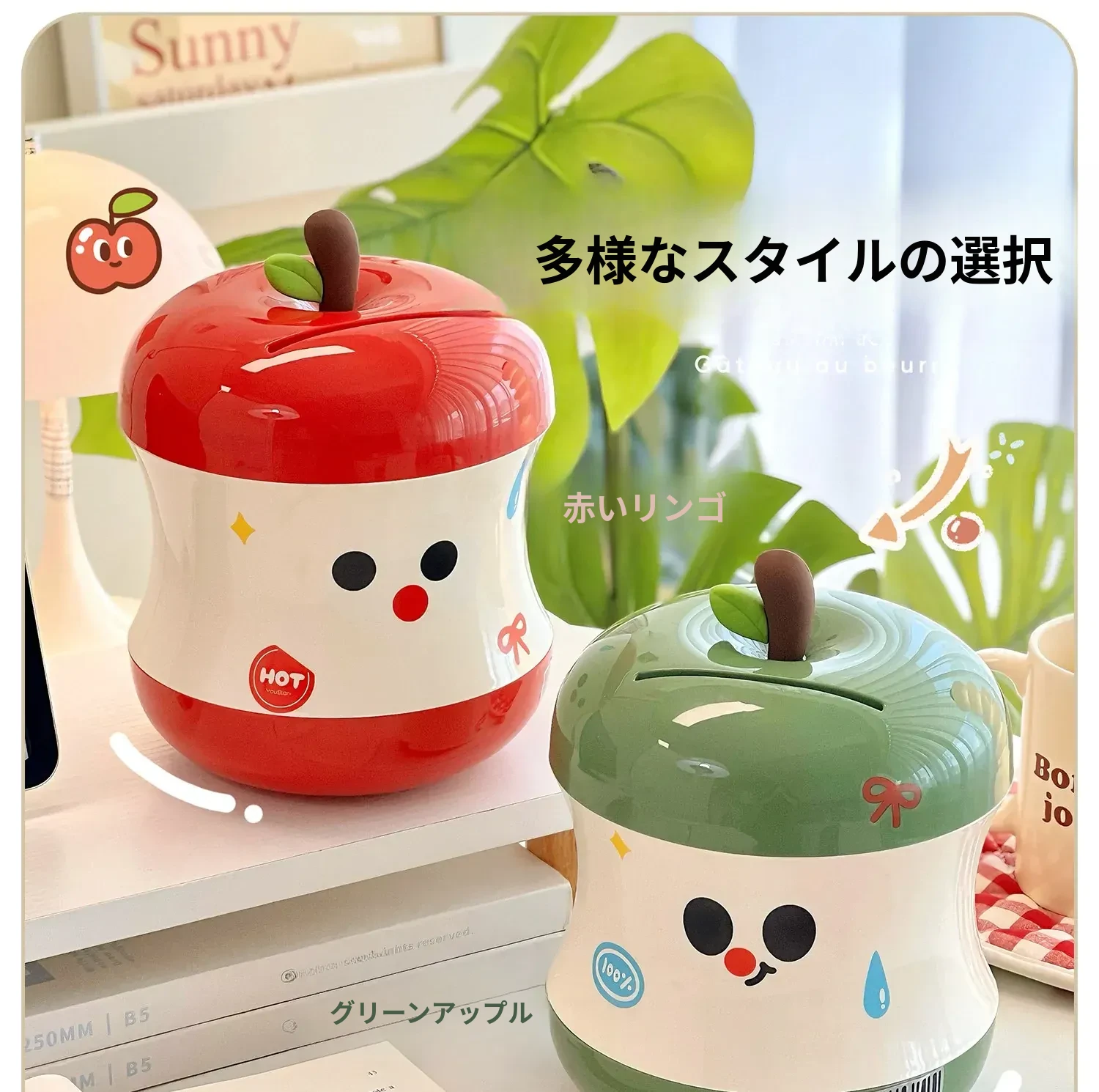 可愛らしいリンゴの貯金箱!女の子向けの誕生日プレゼントに最適なインテリア小物。コインを収納できる実用的なボックス、2025年新作でお部屋を華やかに演出します!