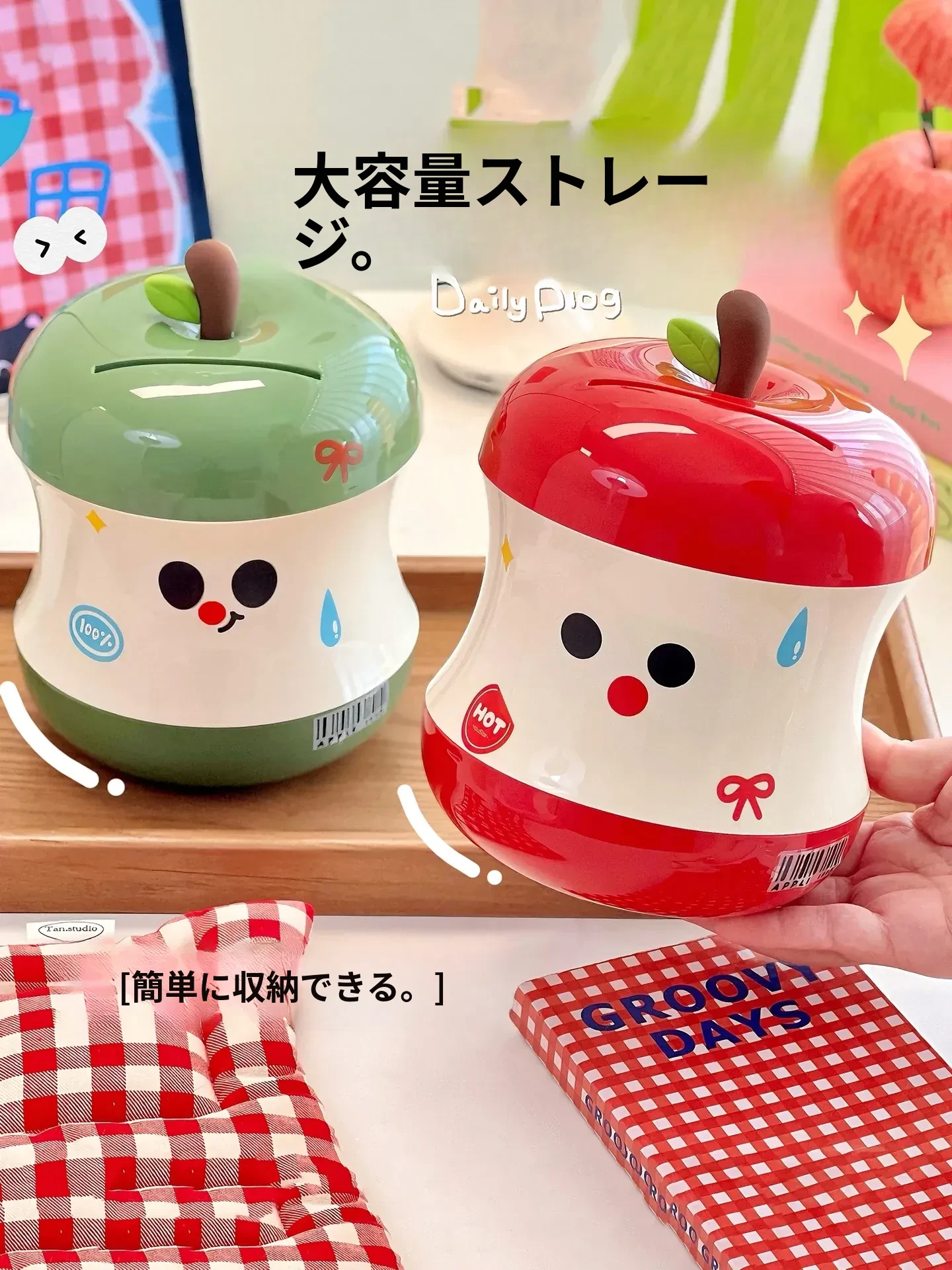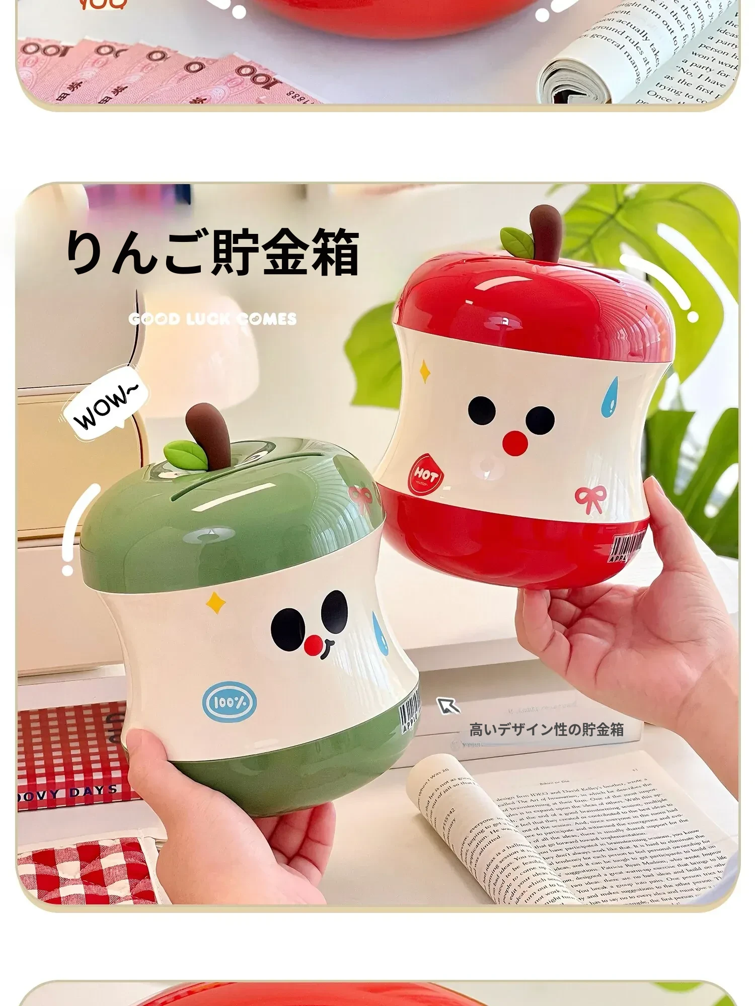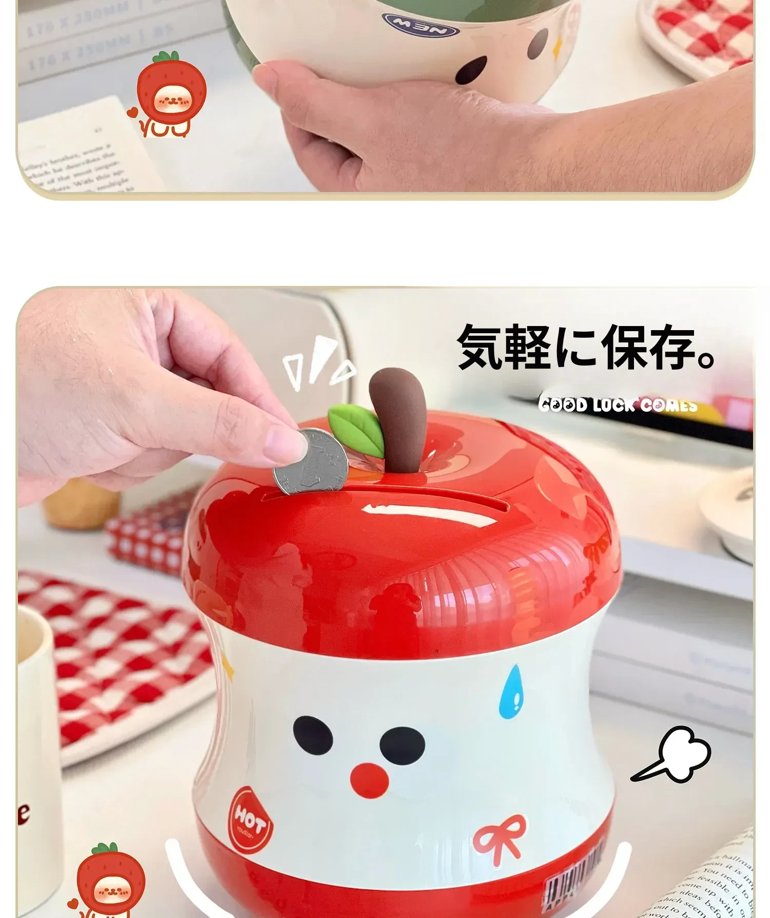 可愛らしいリンゴの貯金箱!女の子向けの誕生日プレゼントに最適なインテリア小物。コインを収納できる実用的なボックス、2025年新作でお部屋を華やかに演出します!