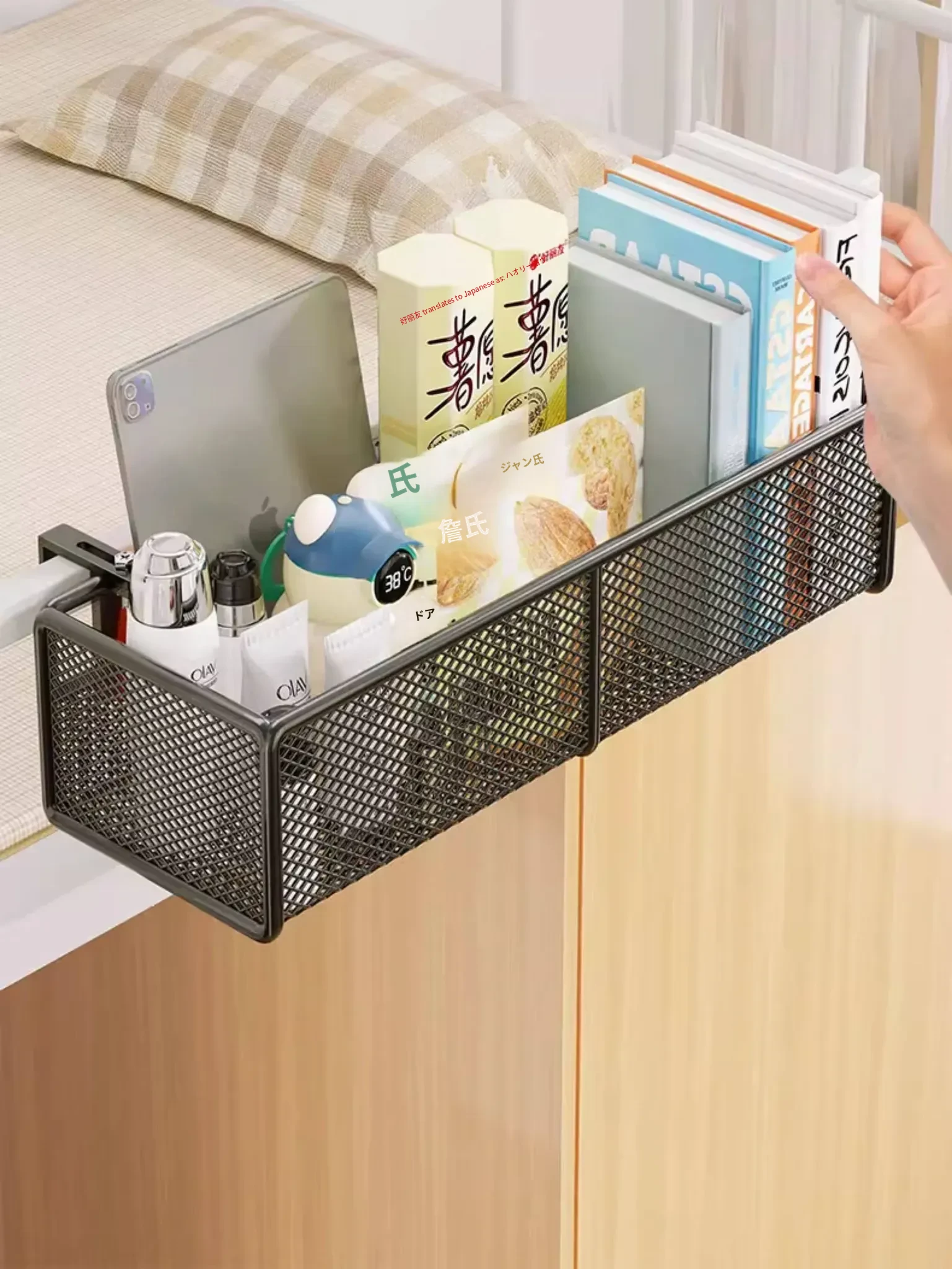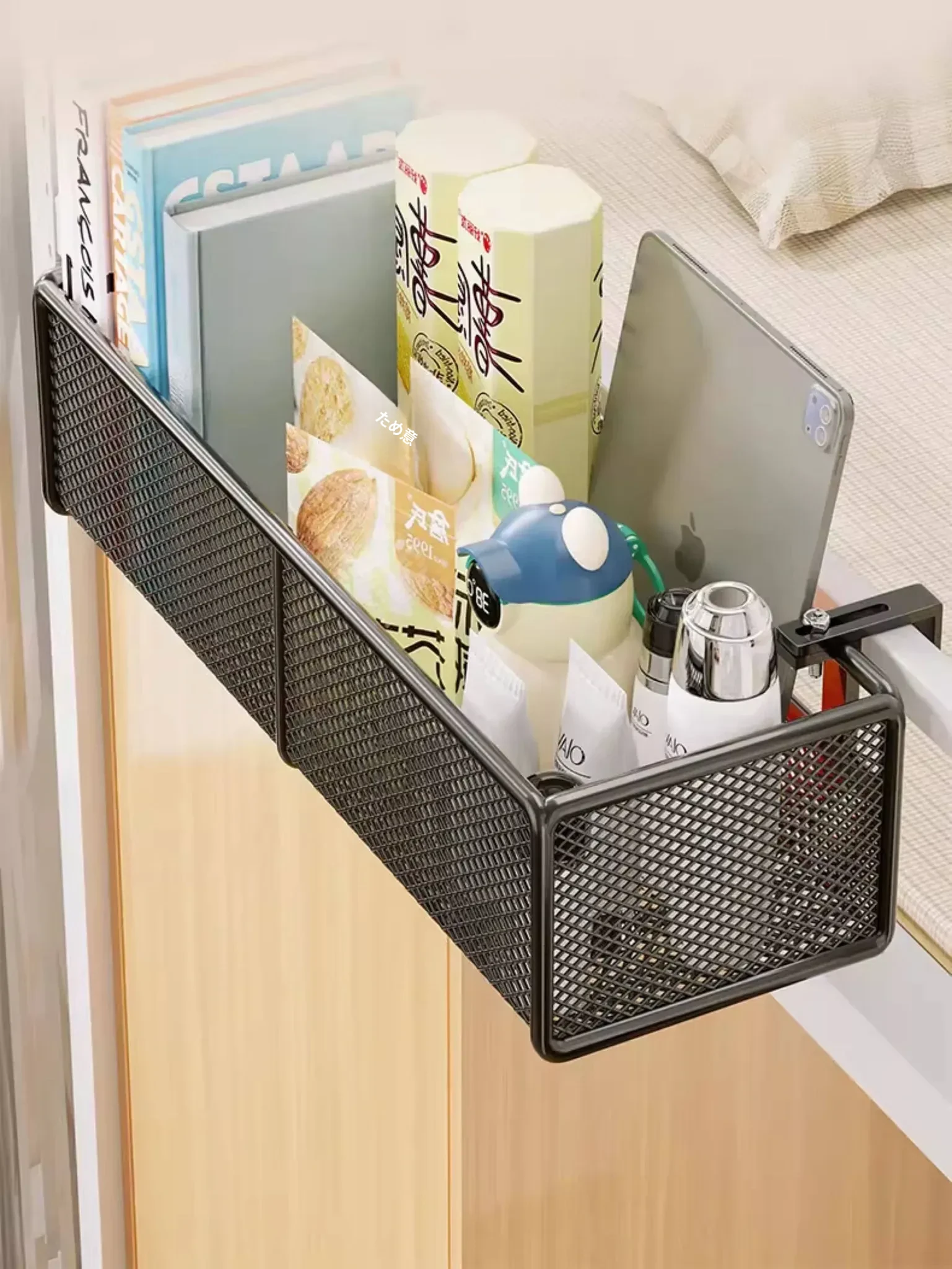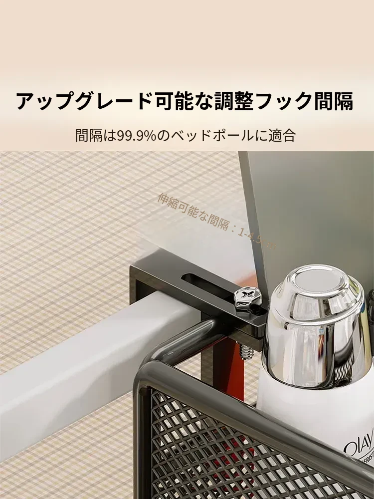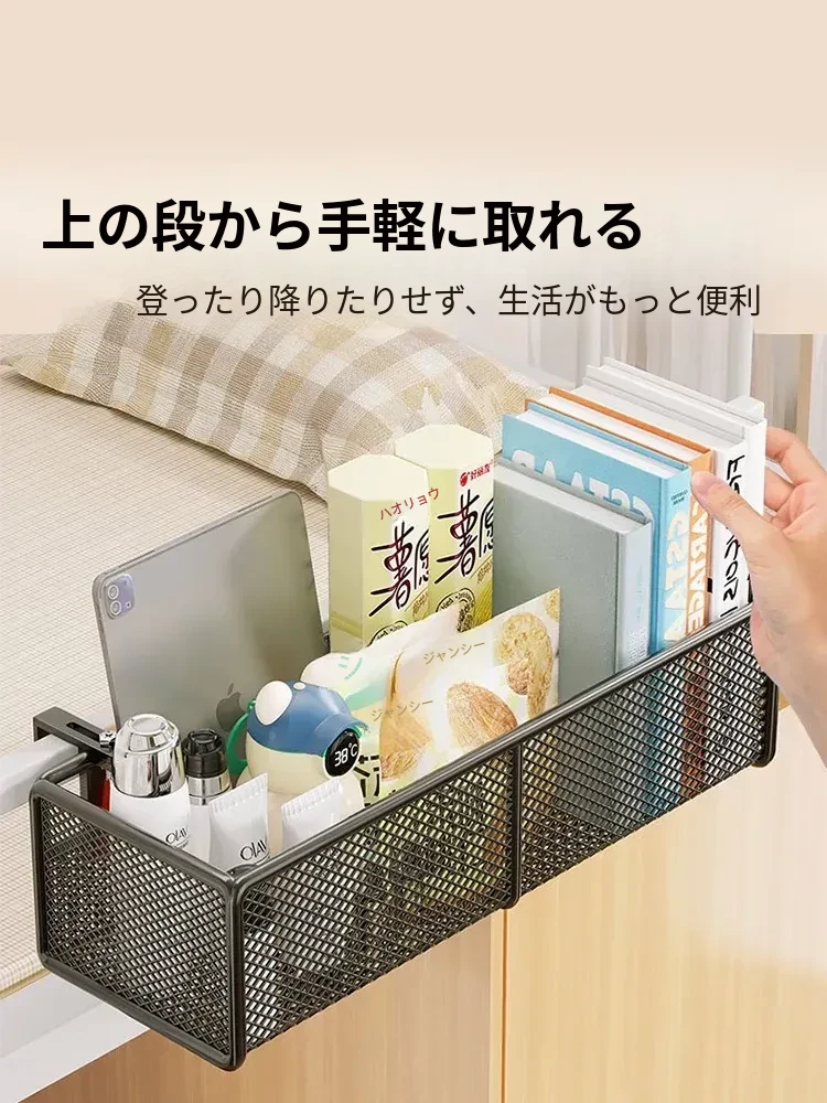 寮のベッドサイドに最適!大容量ハンギング収納バスケット - 上段ベッド用、赤ちゃんのためのヘッドボードオーガナイザー、穴なし簡単取り付け!お部屋をスッキリ整理整頓!