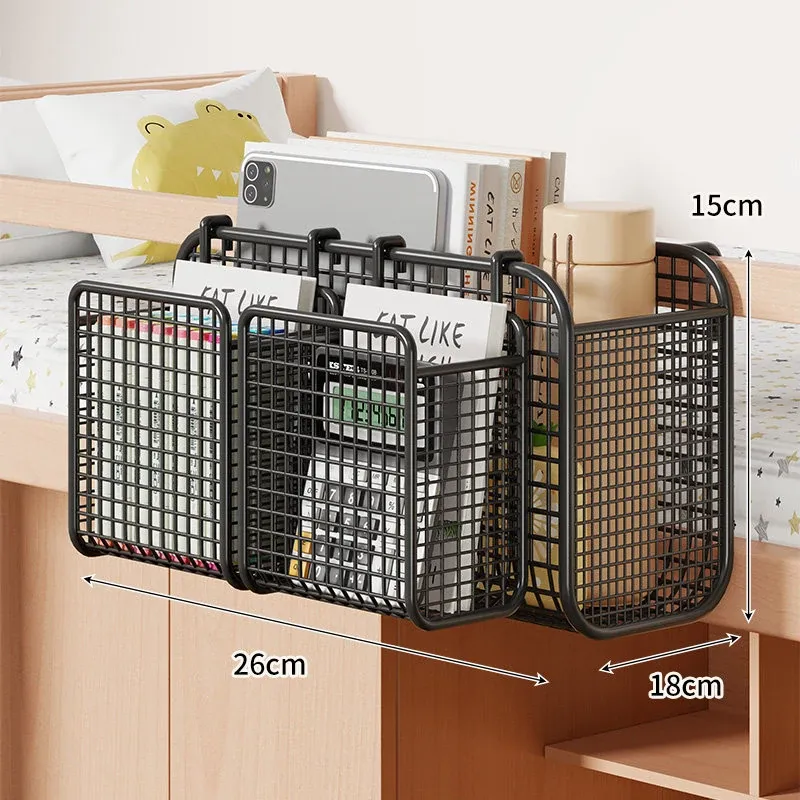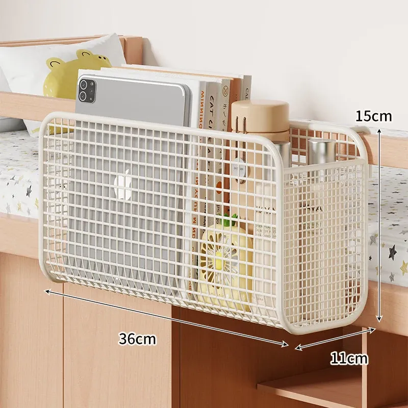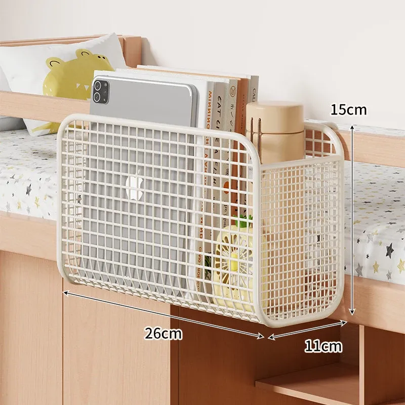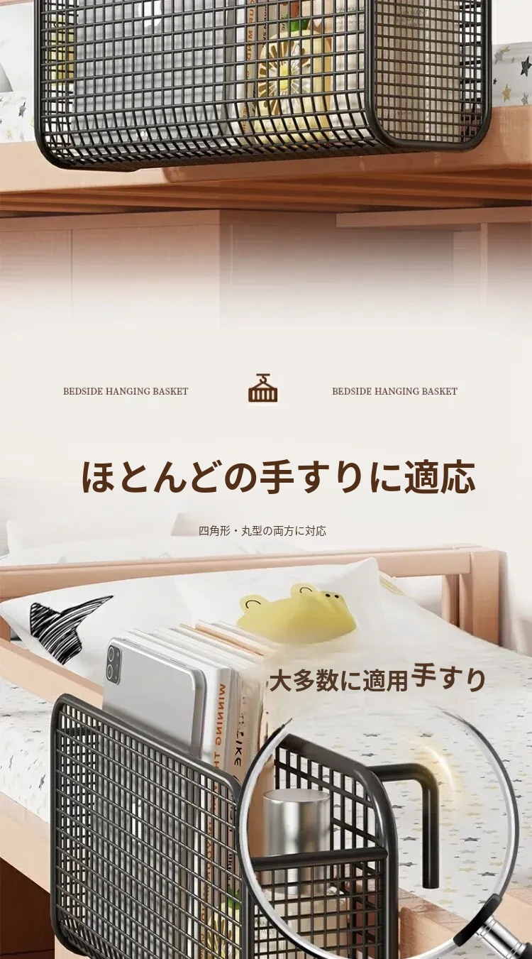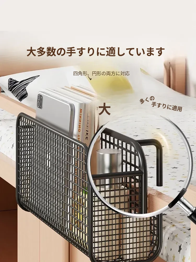 学生寮にぴったり!穴を開けずに簡単取り付け、多機能ハンギング収納バスケット。お菓子や本をスマートに収納できる、ベッドサイドの必需品です!