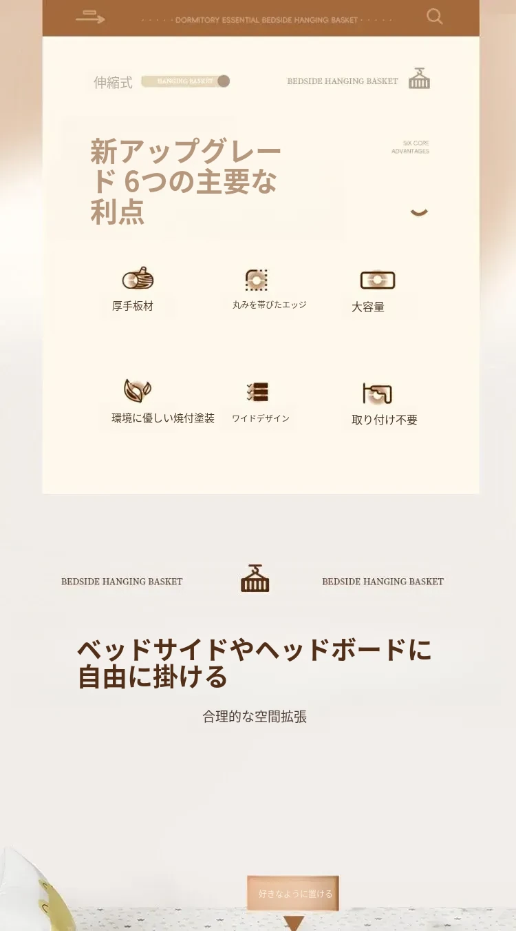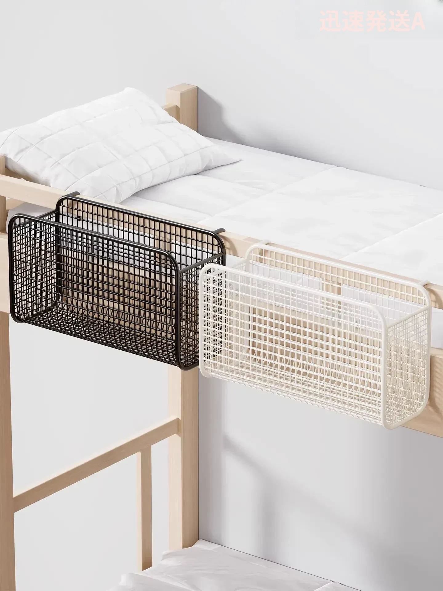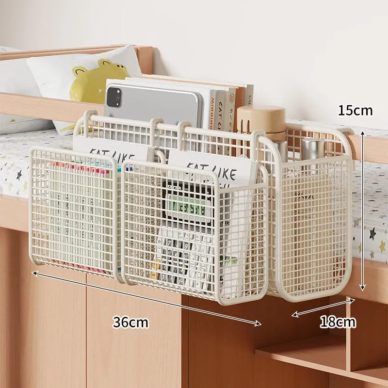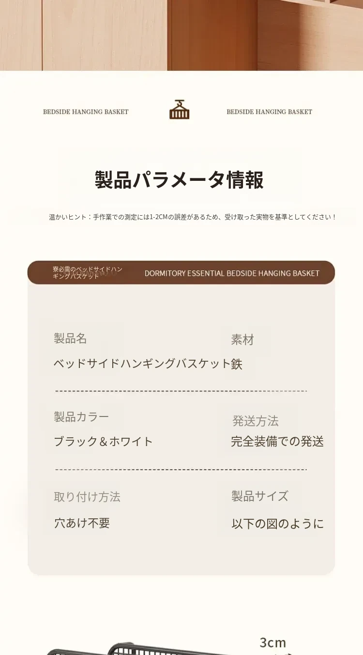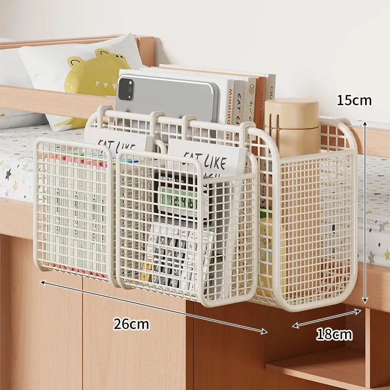 学生寮にぴったり!穴を開けずに簡単取り付け、多機能ハンギング収納バスケット。お菓子や本をスマートに収納できる、ベッドサイドの必需品です!