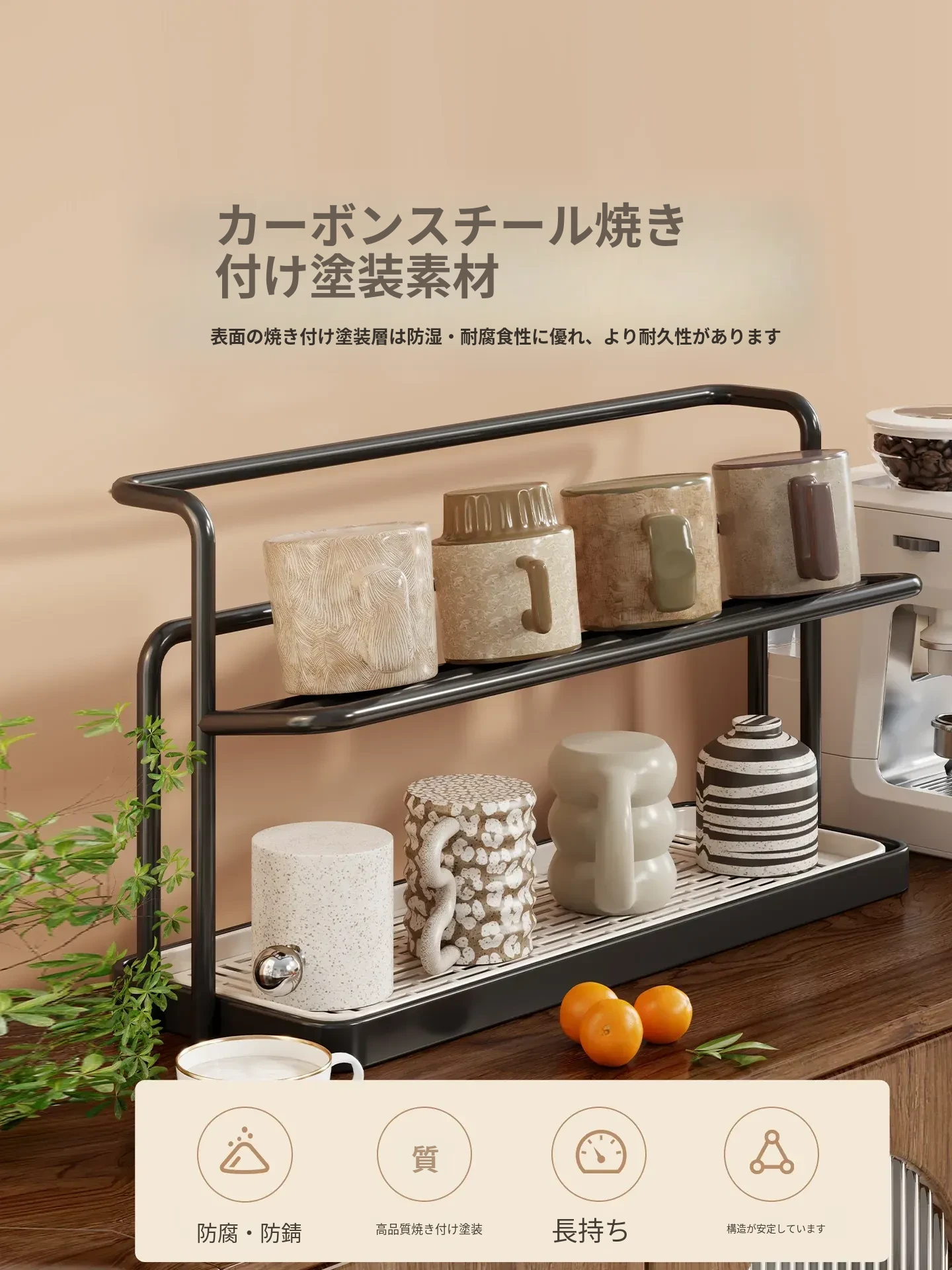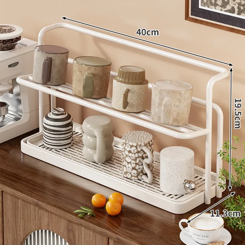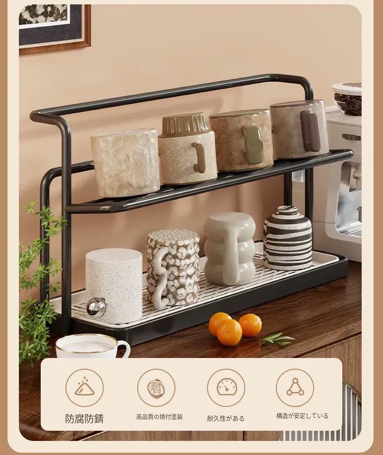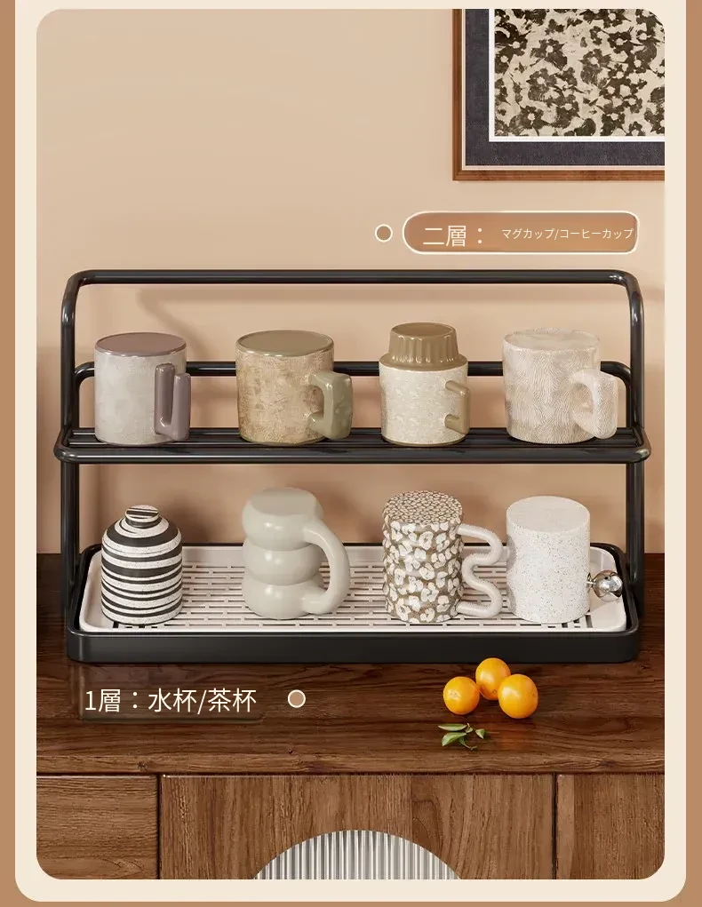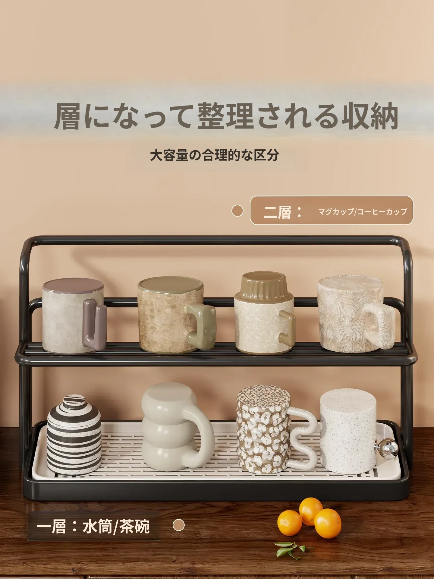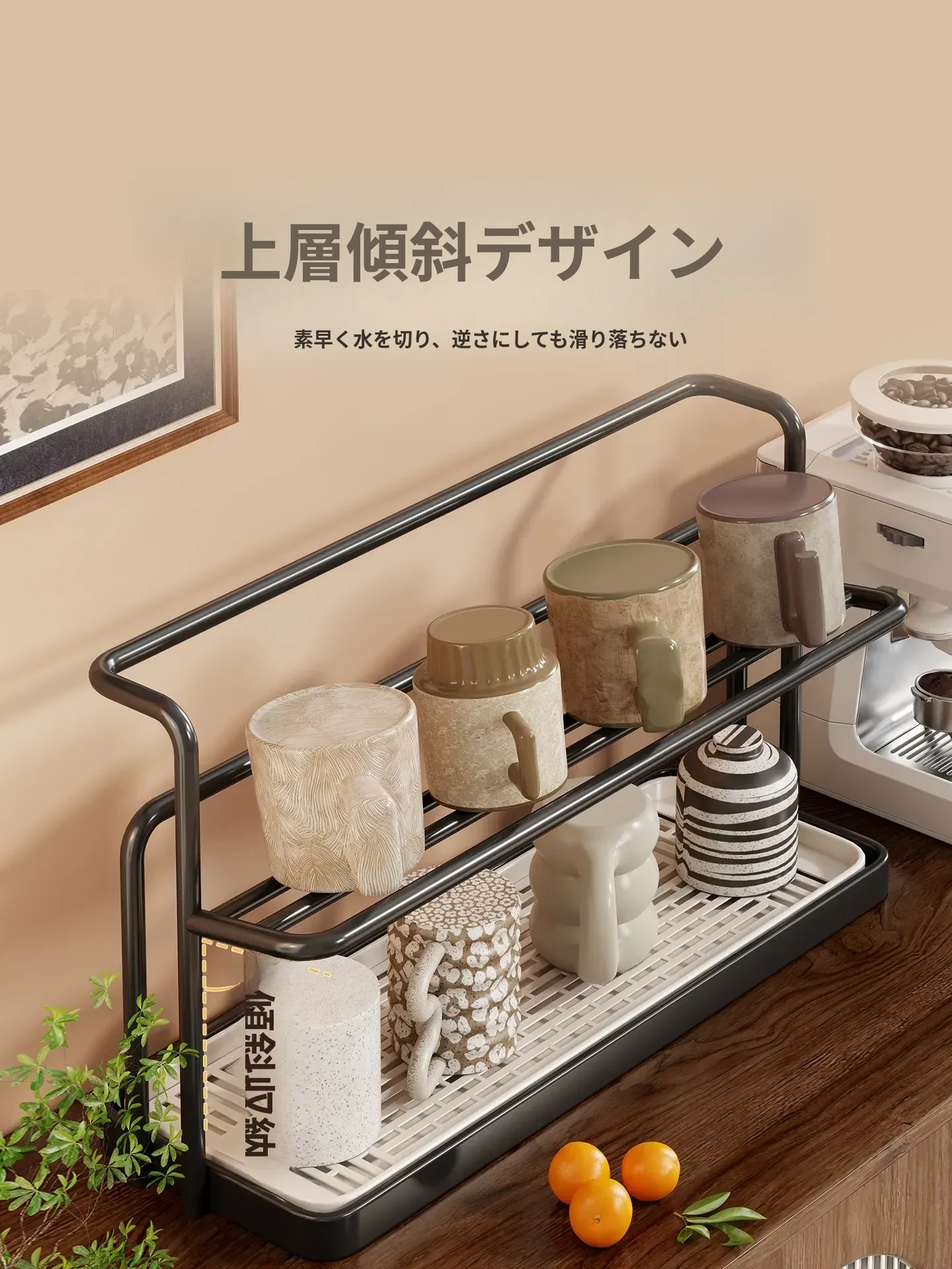 二重構造のカップスタンド - 水切り機能付き!テーブル上での水杯収納に最適な分層トレイ。整理整頓を助け、すっきりとした食卓を実現!デザイン性と実用性を兼ね備えたアイテム。
