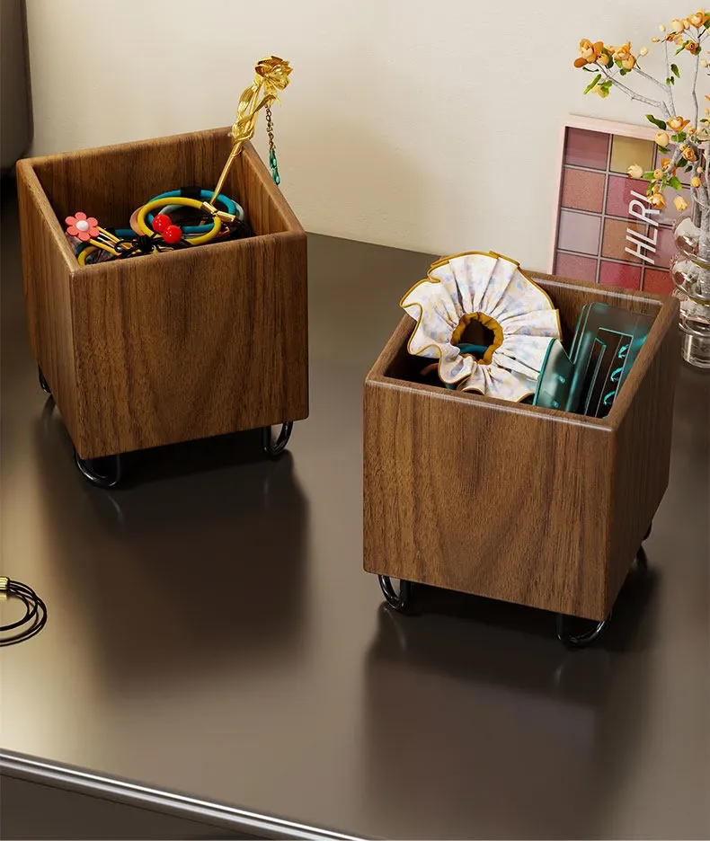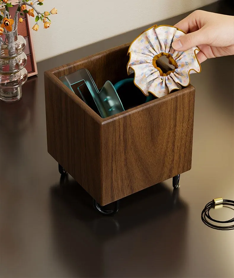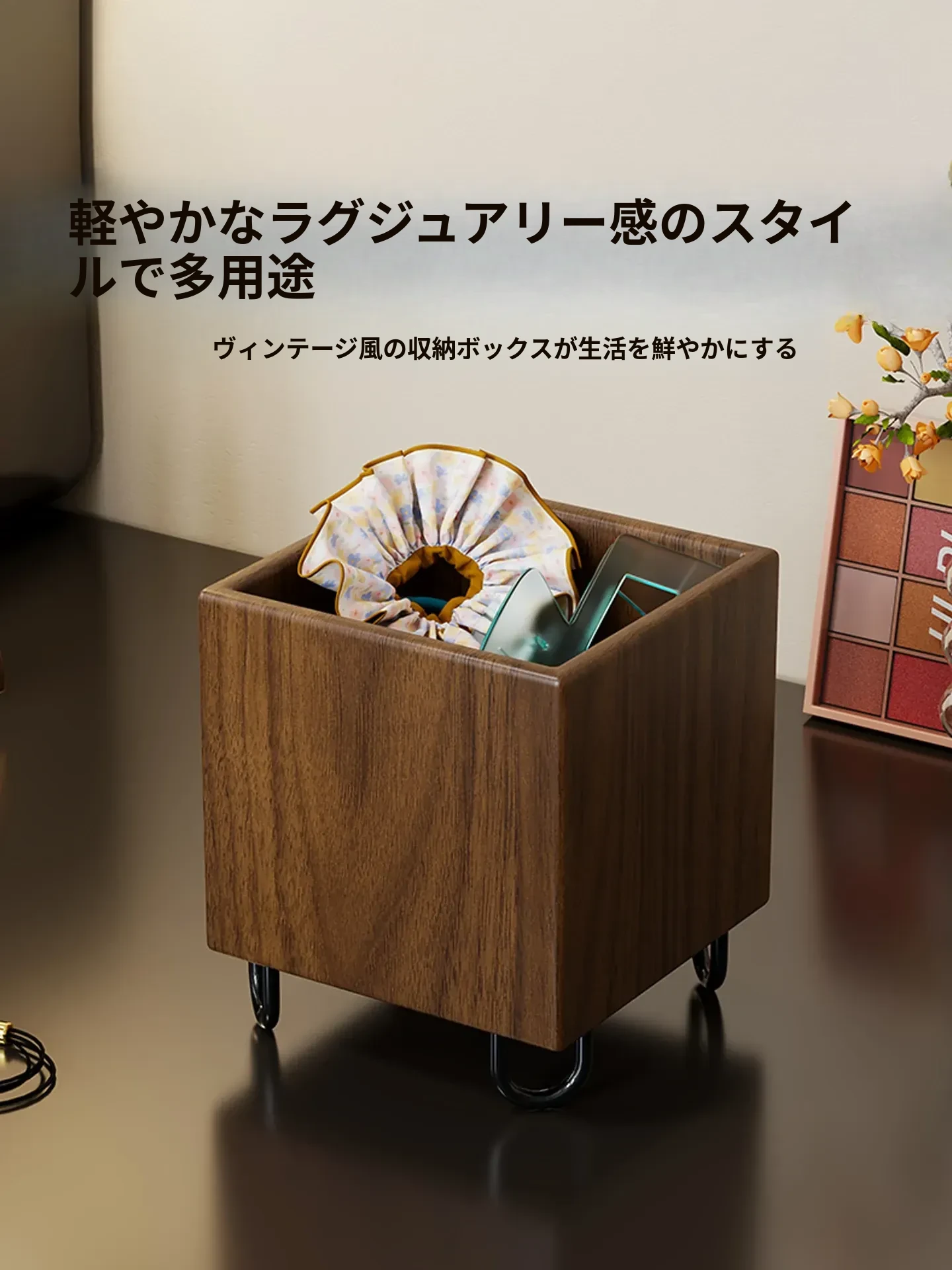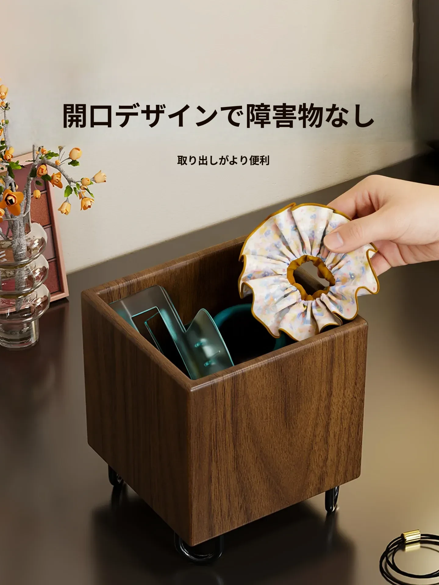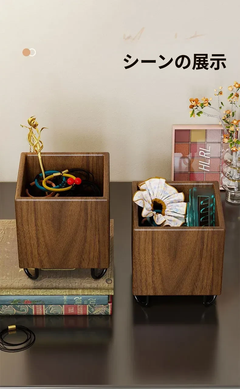 高級感溢れる実木製ヘアゴム収納ボックス|デスクトップ用ヘアクリップ&アクセサリー整理に最適|洗練されたメイクアップ台の必需品!