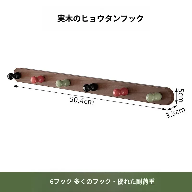 6フック-無垢材のひょうたん型フック