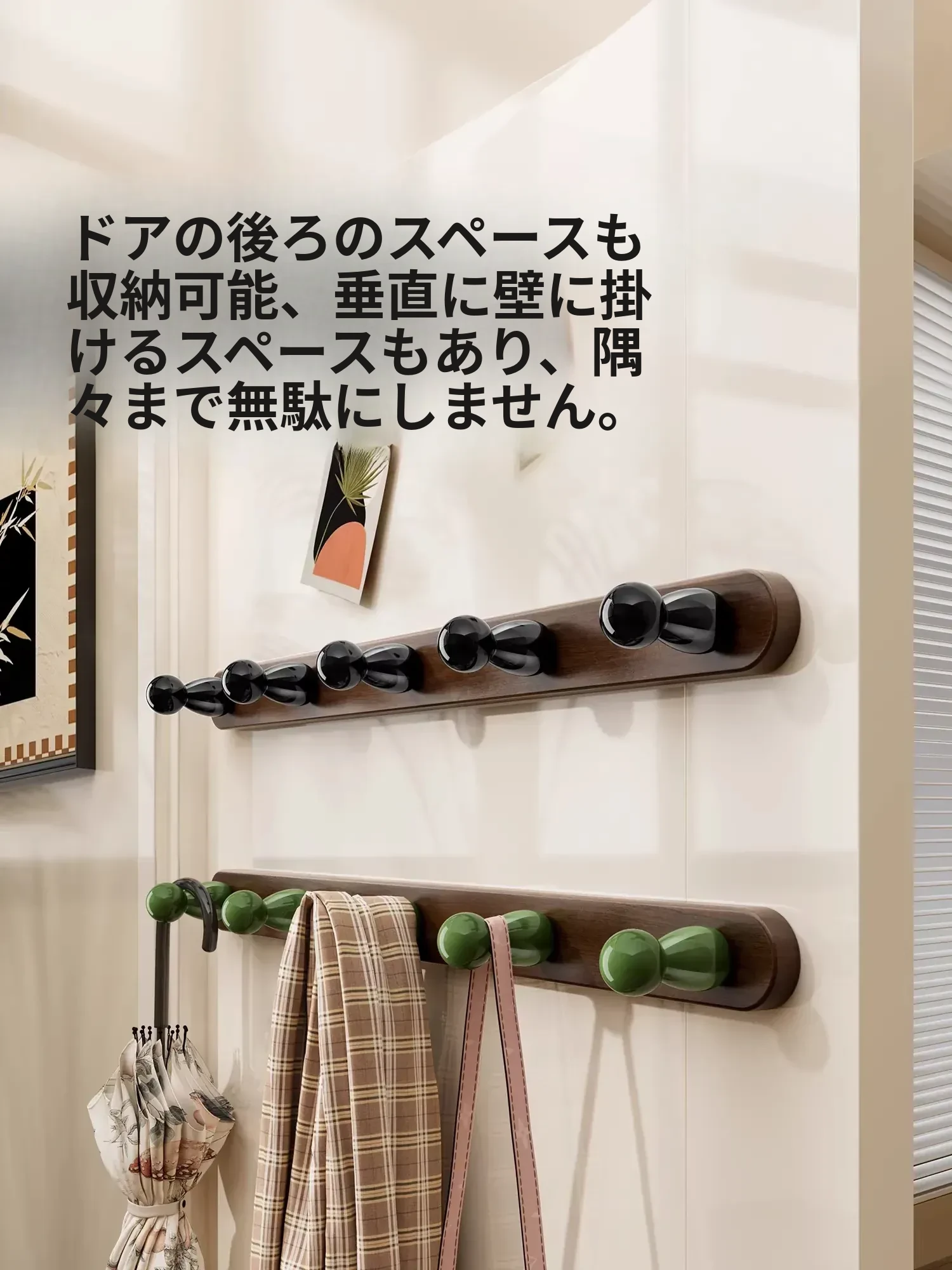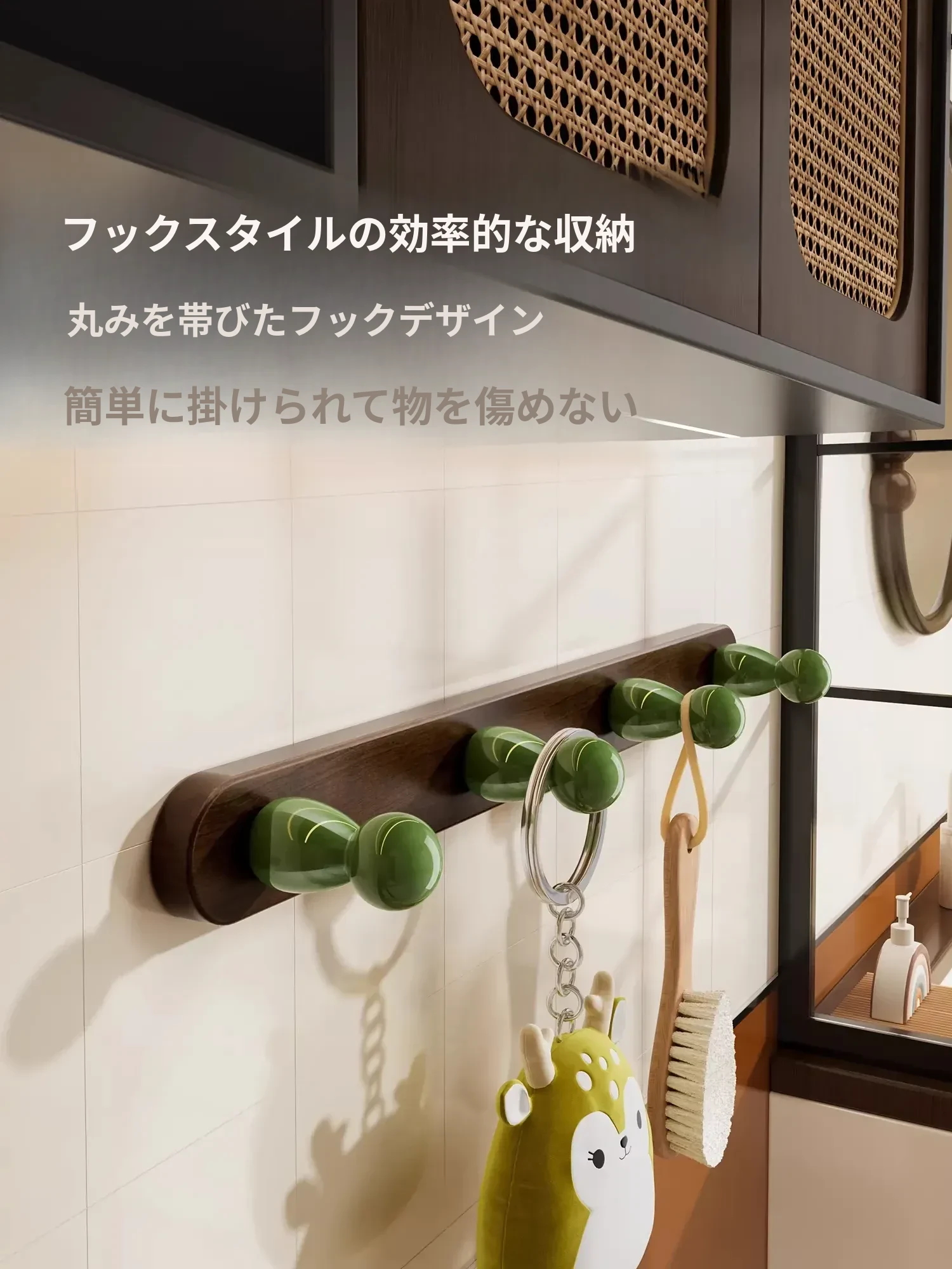 5フック-無垢材のひょうたん型フック