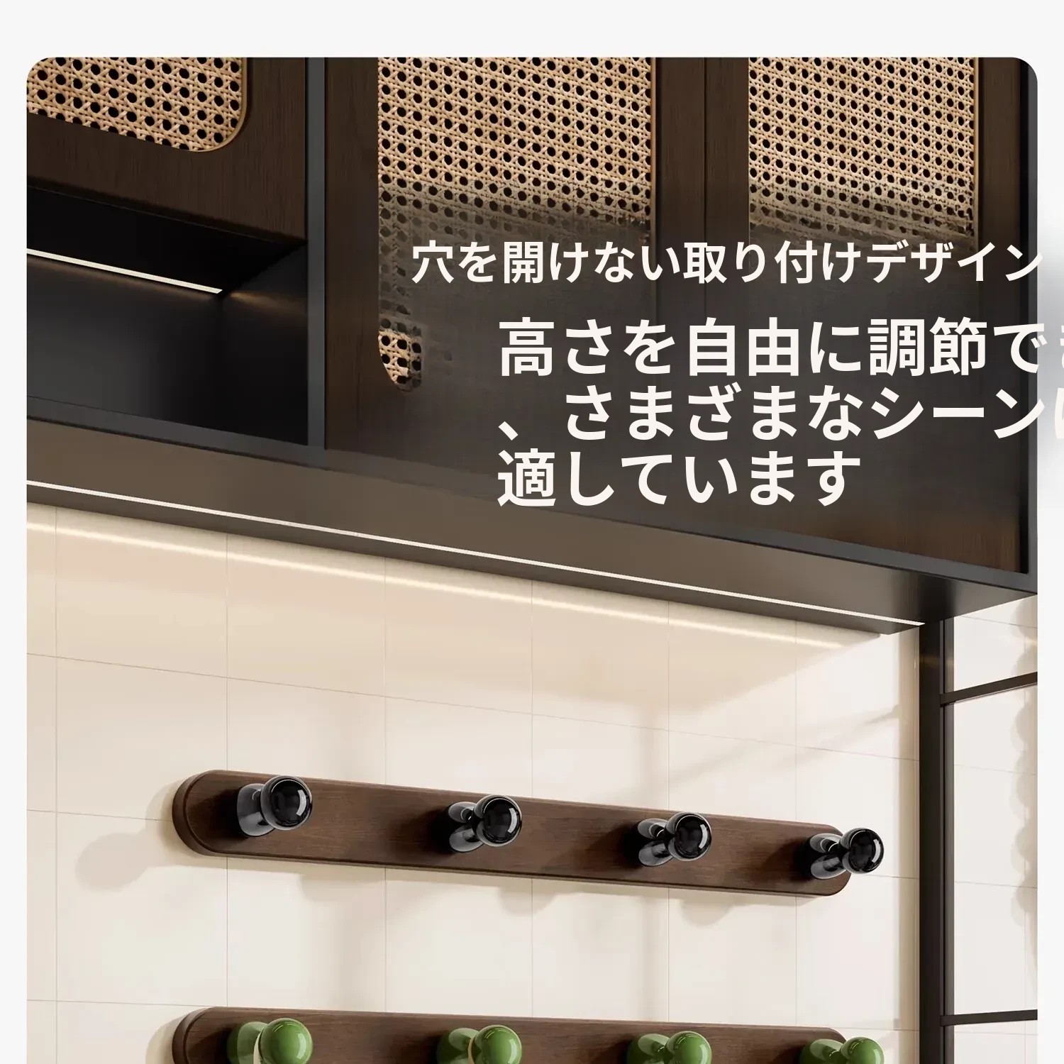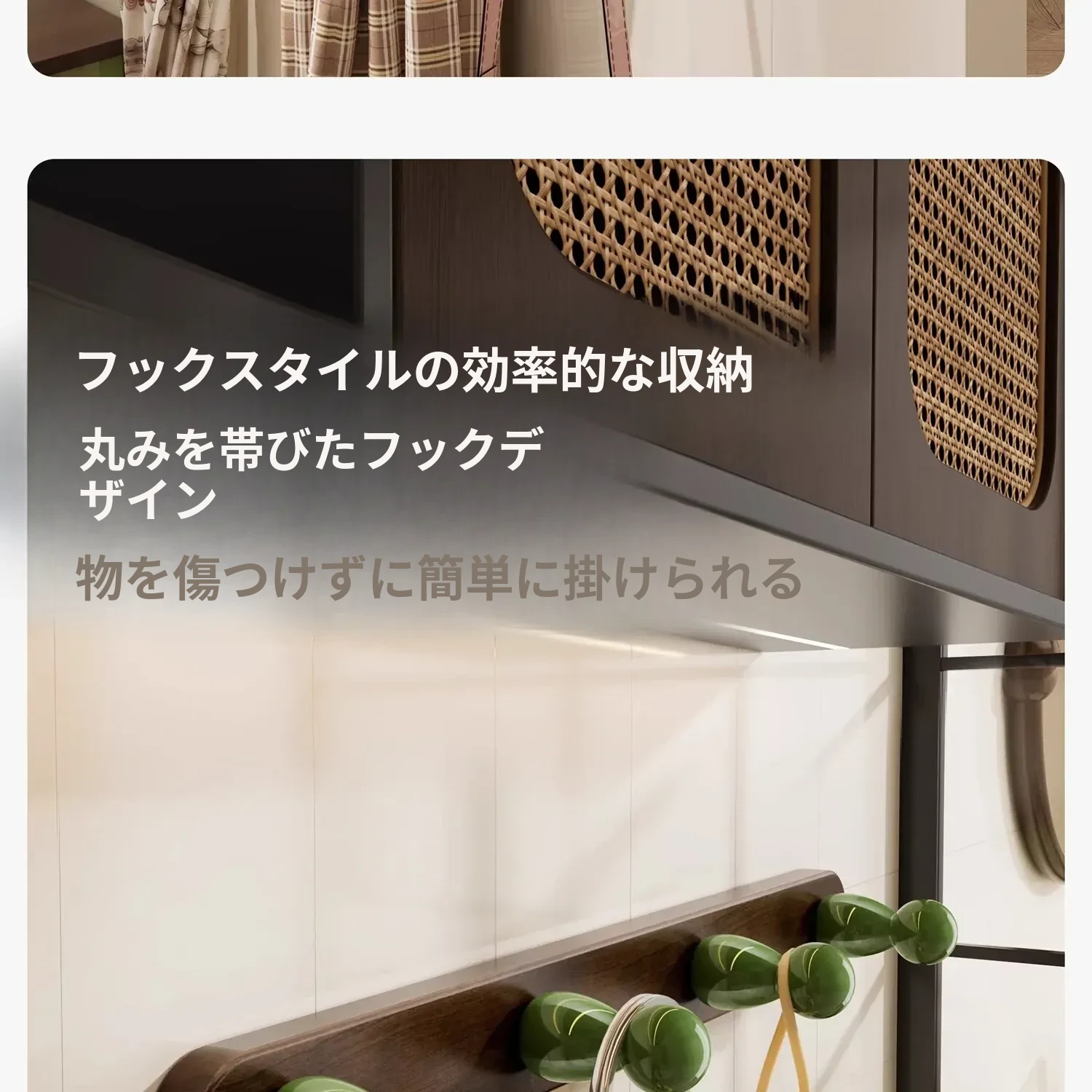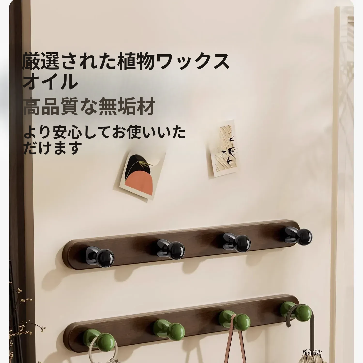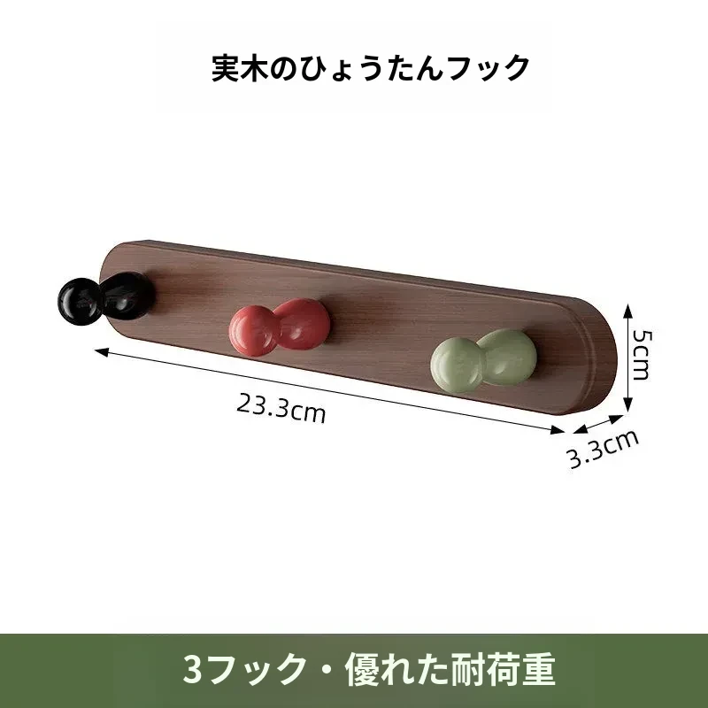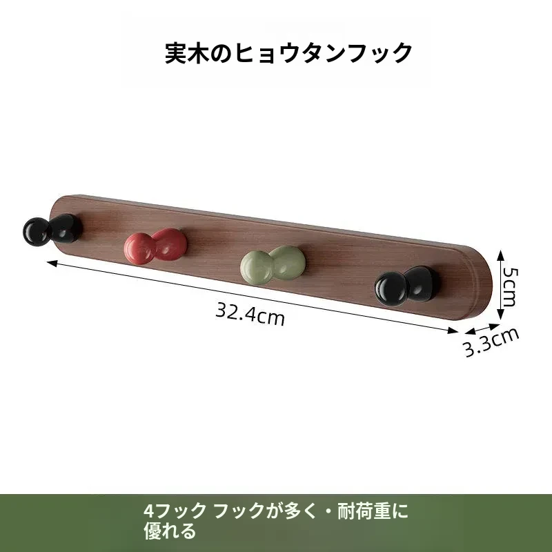 4フック-無垢材のひょうたん型フック