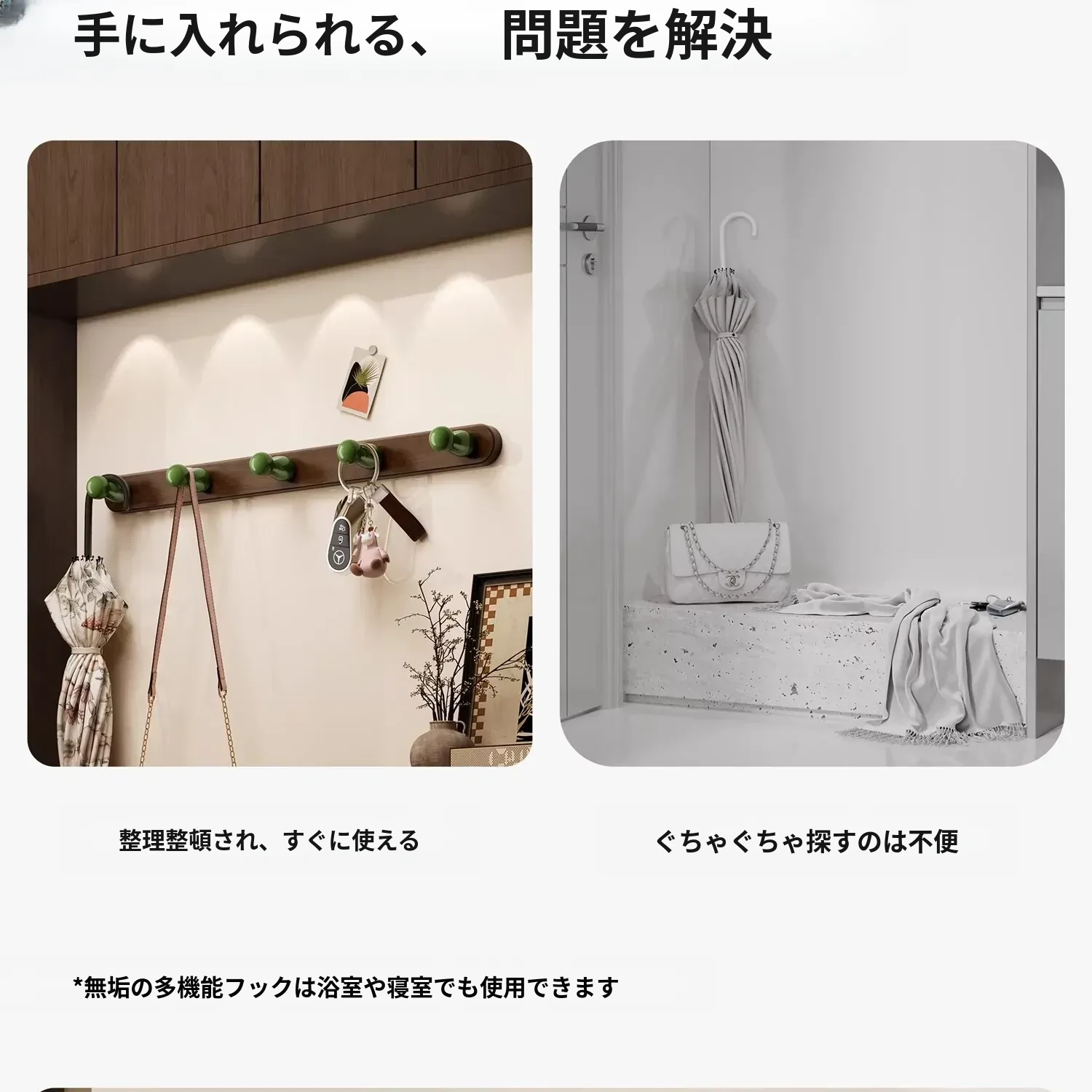 壁掛けフック バスルーム用衣類フック ドア裏に取り付けるだけで簡単! 穴を開けずに強力に支える粘着フック 鍵や帽子の収納に最適な衣類ハンガー!