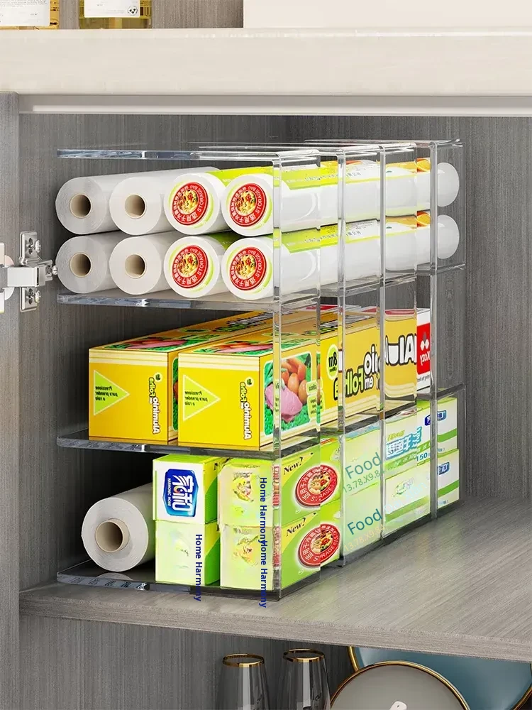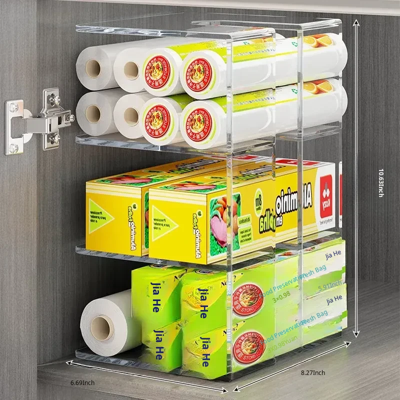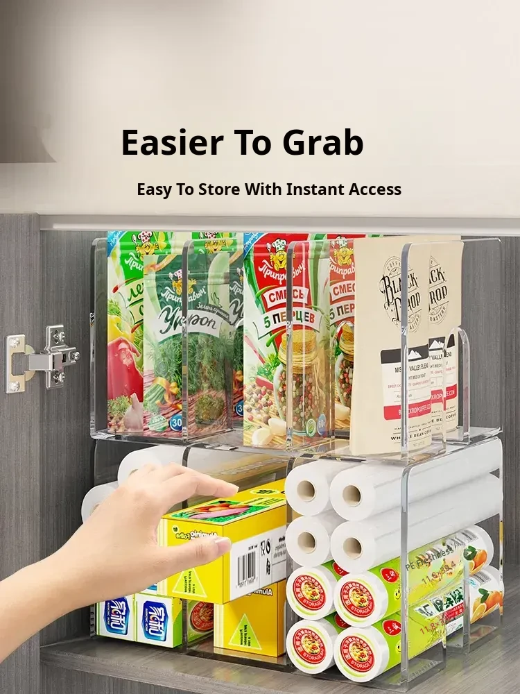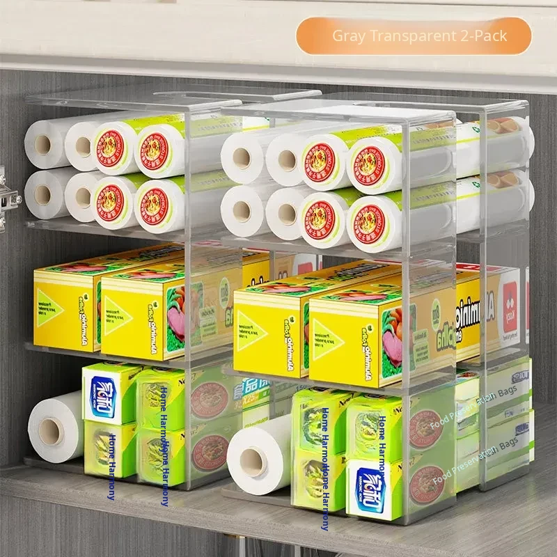 Kitchen Storage Organizer for Plastic Wrap and Food Bags - Drawer-style Organizer for Freshness, Perfect for Cabinets and Spice Storage Solutions
