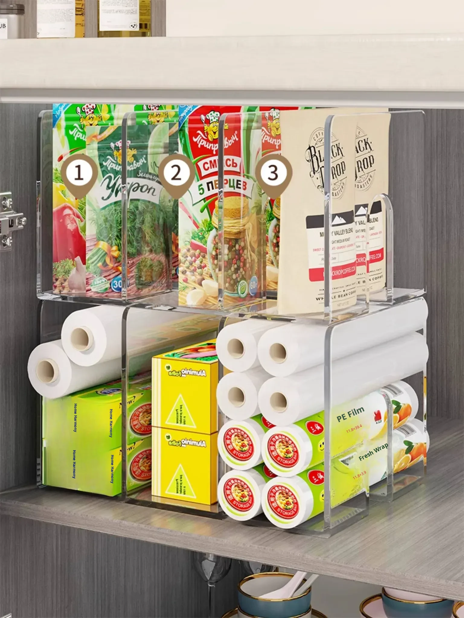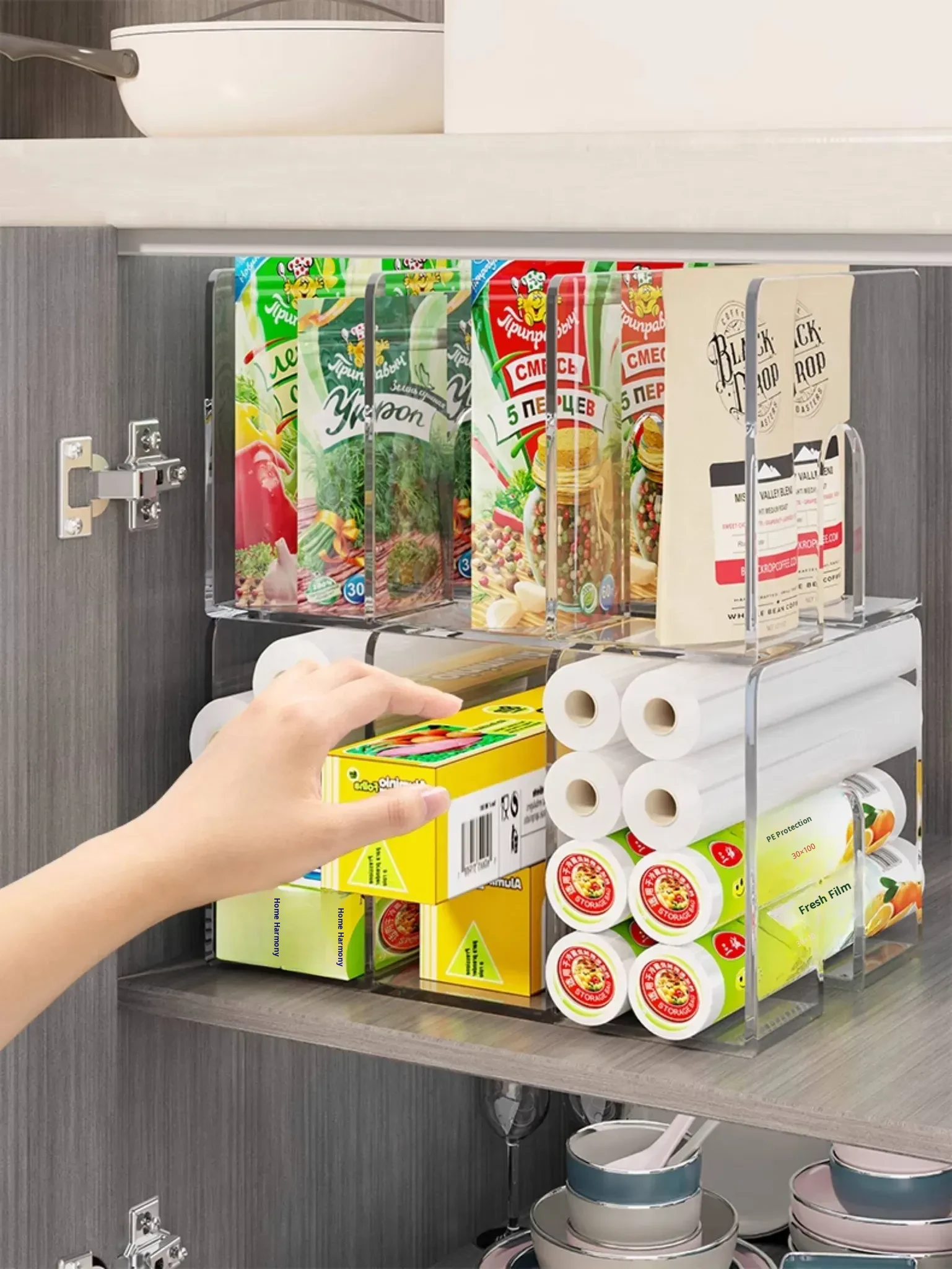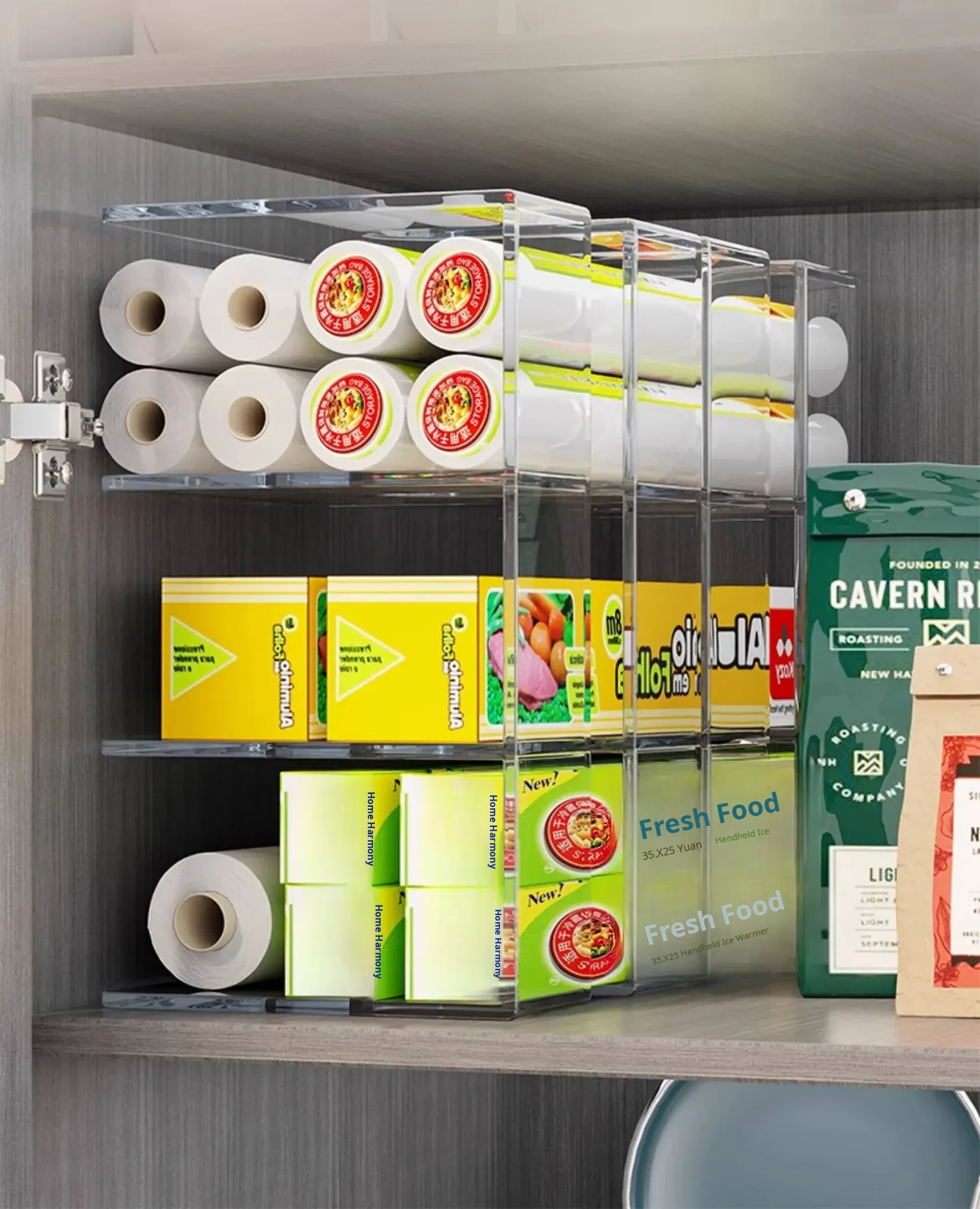 Kitchen Storage Organizer for Plastic Wrap and Food Bags - Drawer-style Organizer for Freshness, Perfect for Cabinets and Spice Storage Solutions