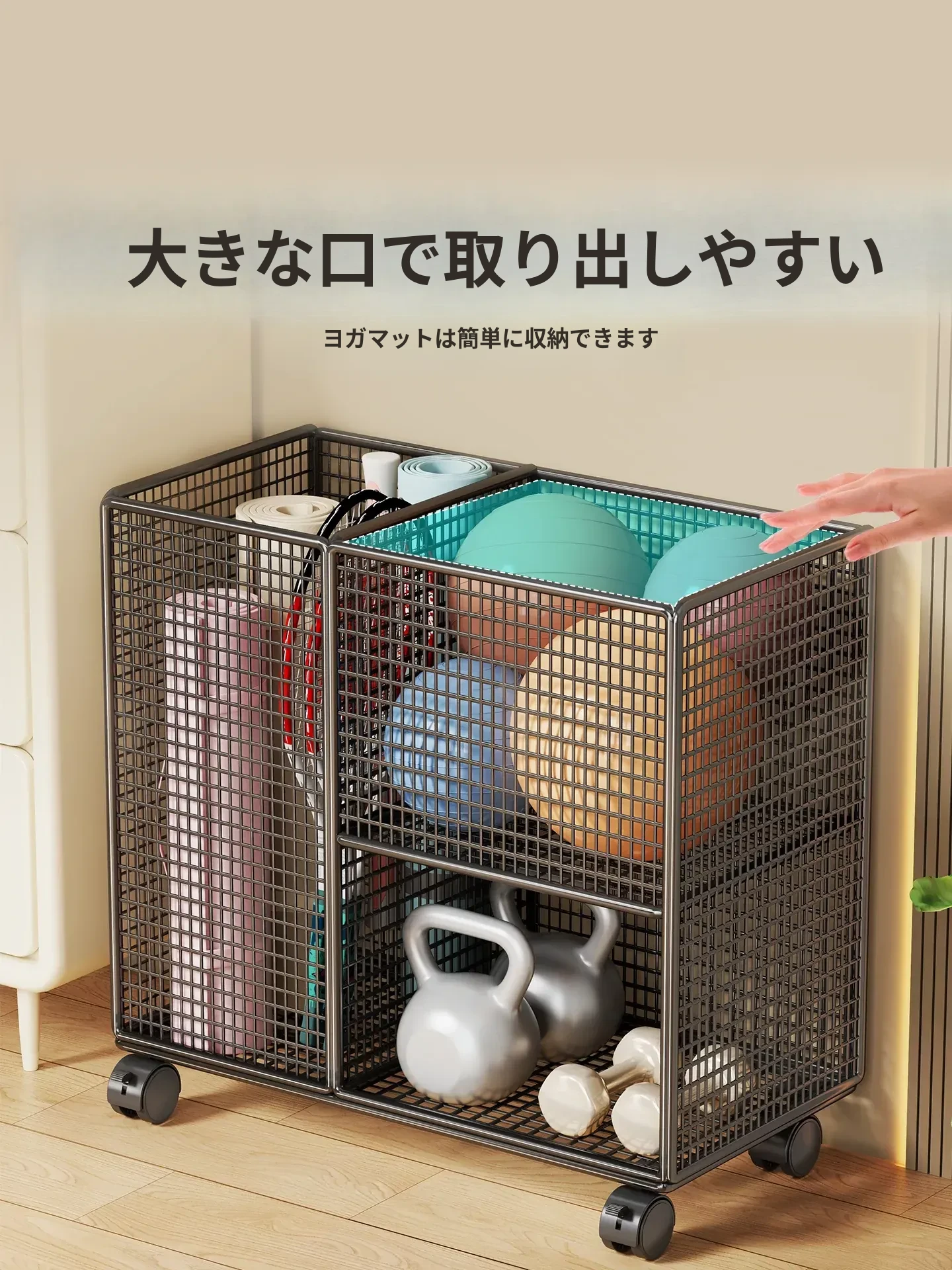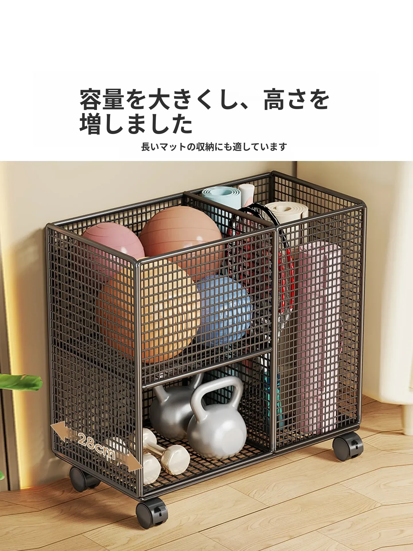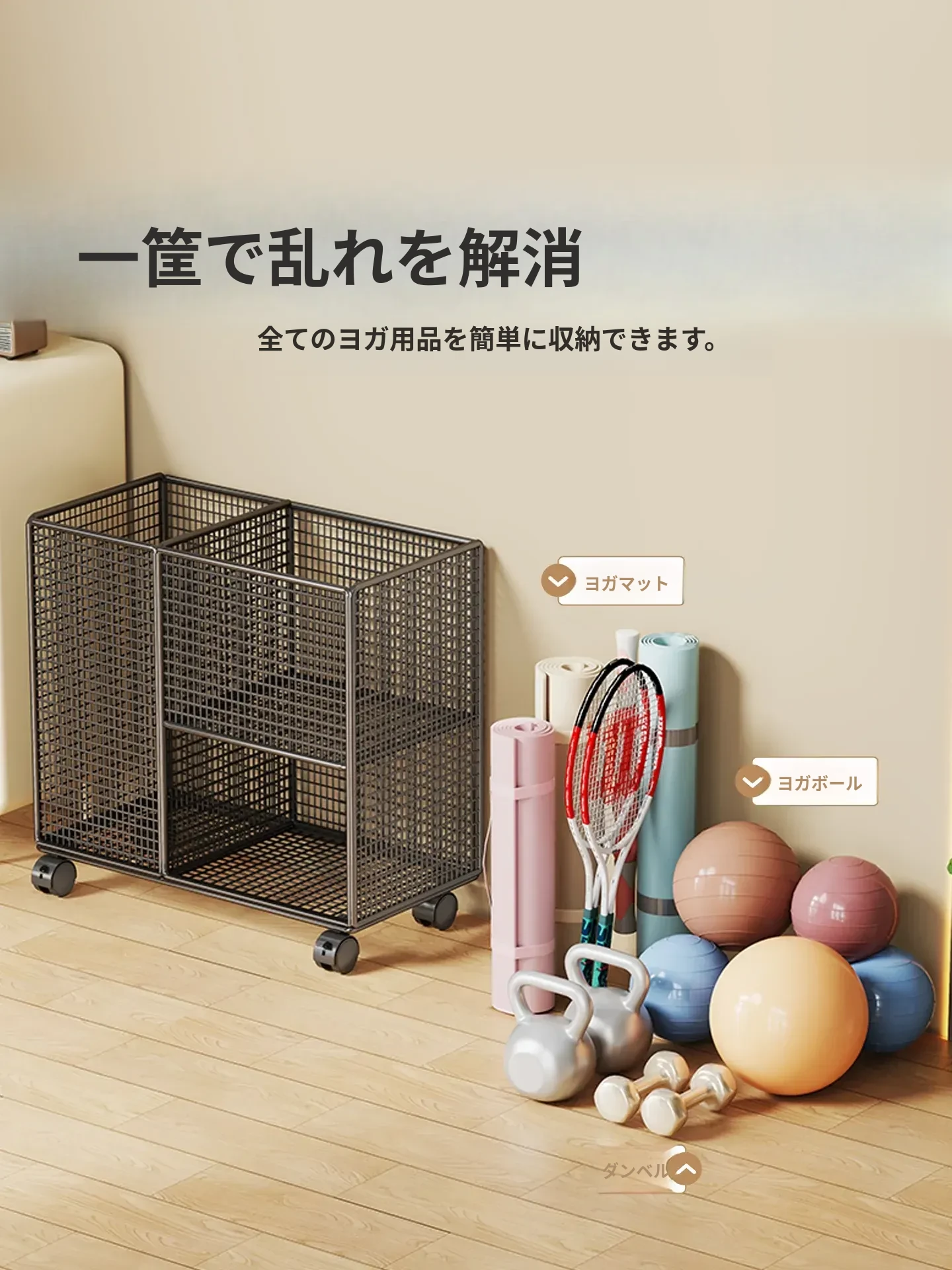 ヨガマット収納ボックス 大容量・キャスター付き 移動可能なフィットネス器具ラック スポーツ用品整理棚 - お部屋をスッキリ整理!