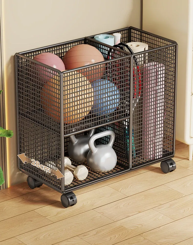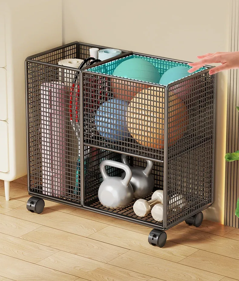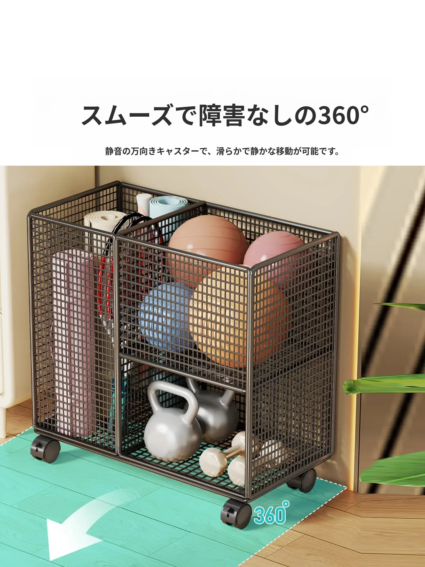 ヨガマット収納ボックス 大容量・キャスター付き 移動可能なフィットネス器具ラック スポーツ用品整理棚 - お部屋をスッキリ整理!