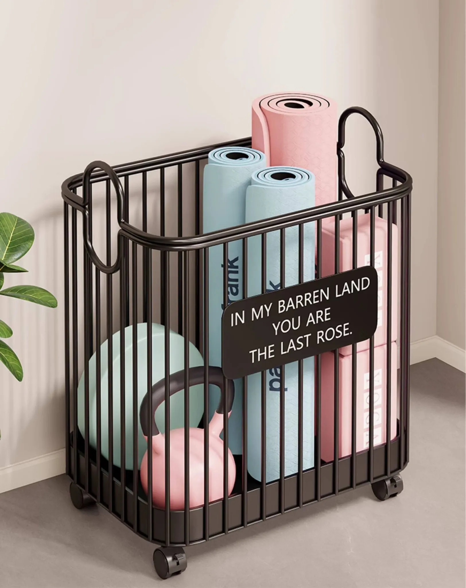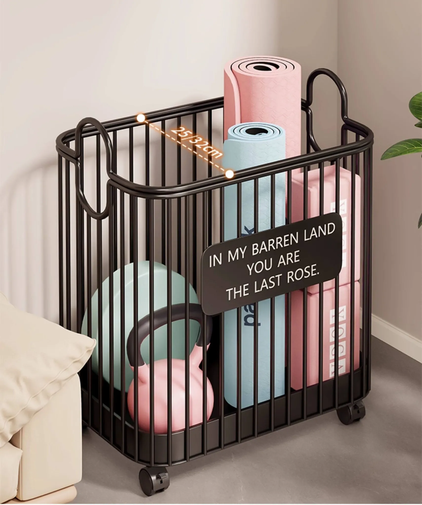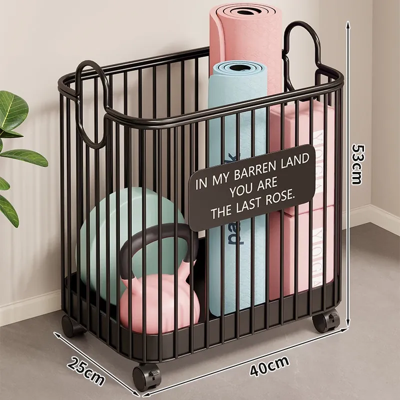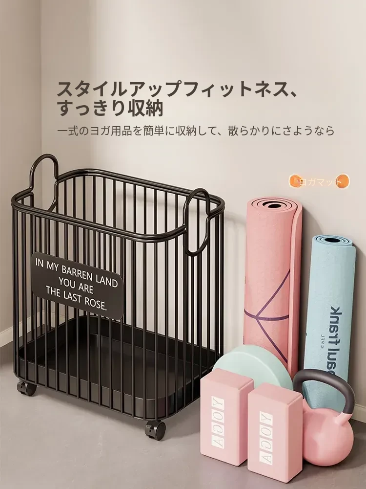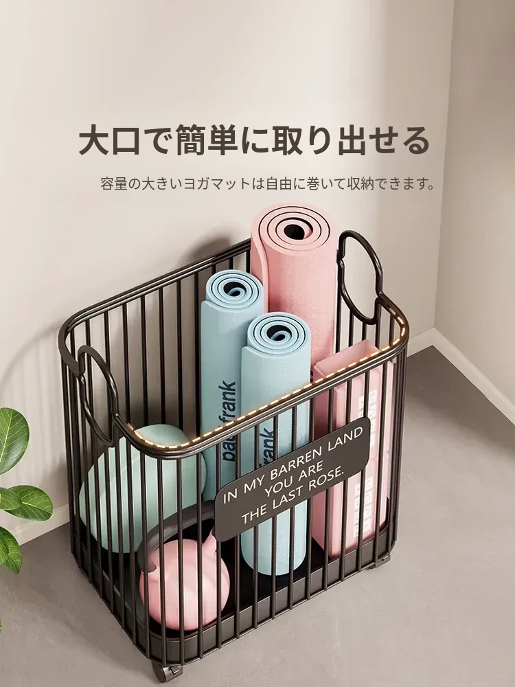 ヨガマット収納バスケット - 家庭用、キャスター付きで移動ラクラク!大容量のスポーツ・フィットネス器具収納に最適な魔法の収納アイテム。バスケットボールやその他の用品もスッキリ整理!