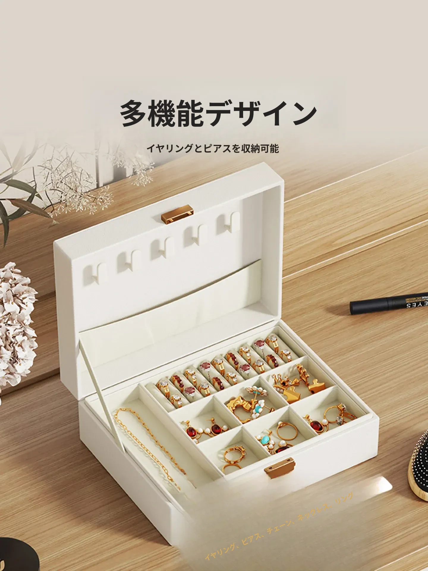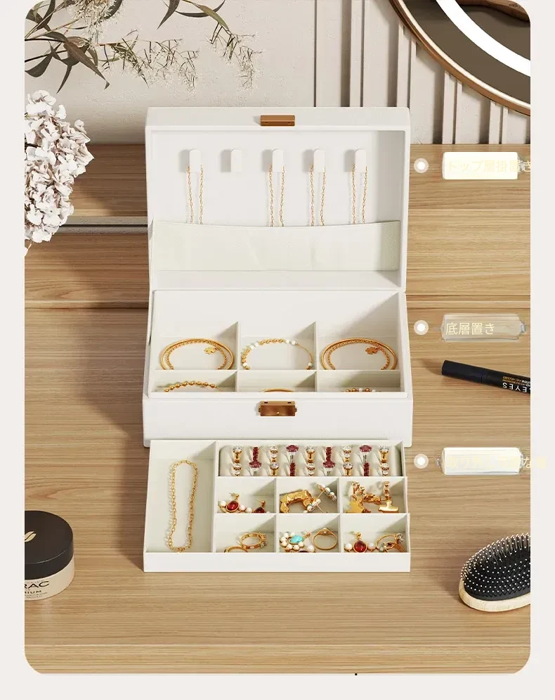 豪華で洗練されたジュエリーボックス – 大容量のイヤリング、ピアス、ネックレス、リング、ゴールドアクセサリーをしっかり収納!美しさと機能性を兼ね備えた宝物箱で、大切なアクセサリーをスタイリッシュに守ります。