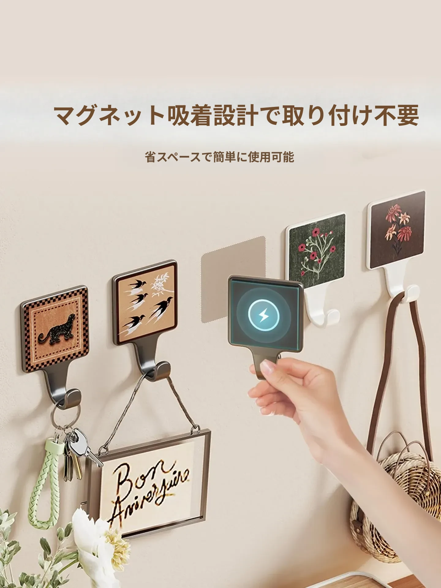 強力マグネットフック 磁吸式で簡単取り付け!穴あけ不要のドア用フックで、鍵や小物をしっかり収納。キッチンや冷蔵庫にもピッタリな便利な壁掛けアイテム!