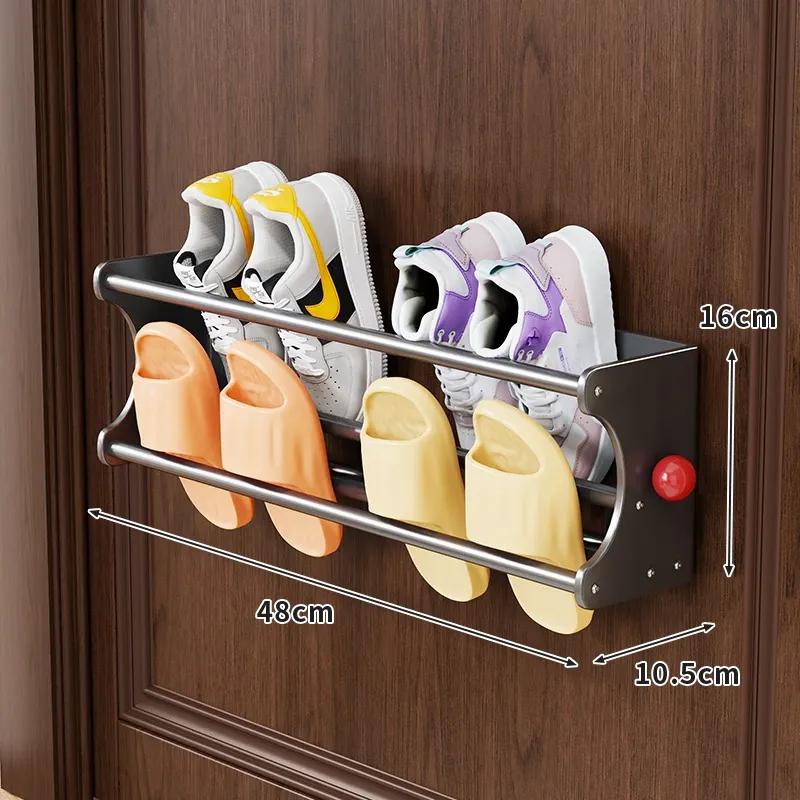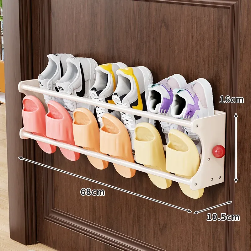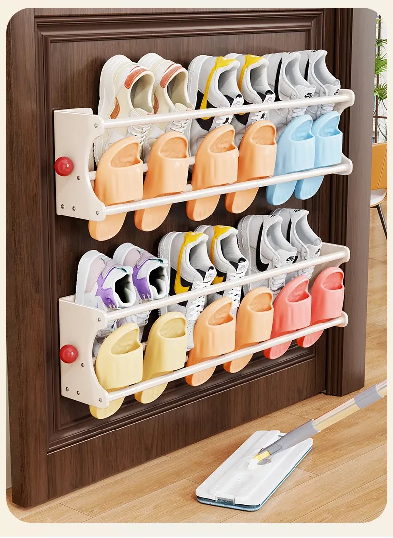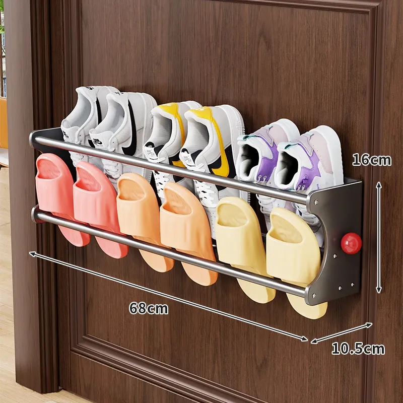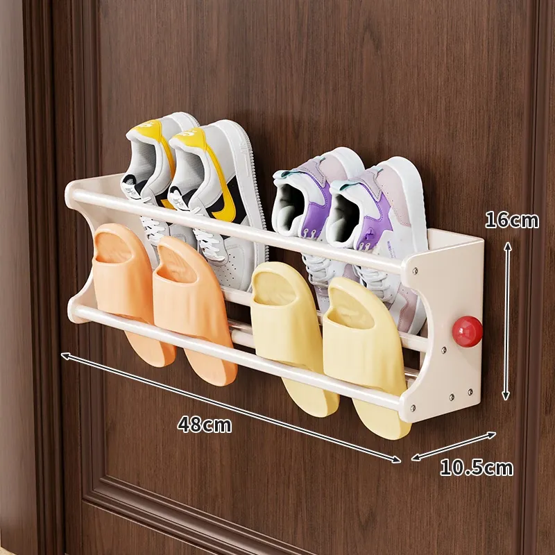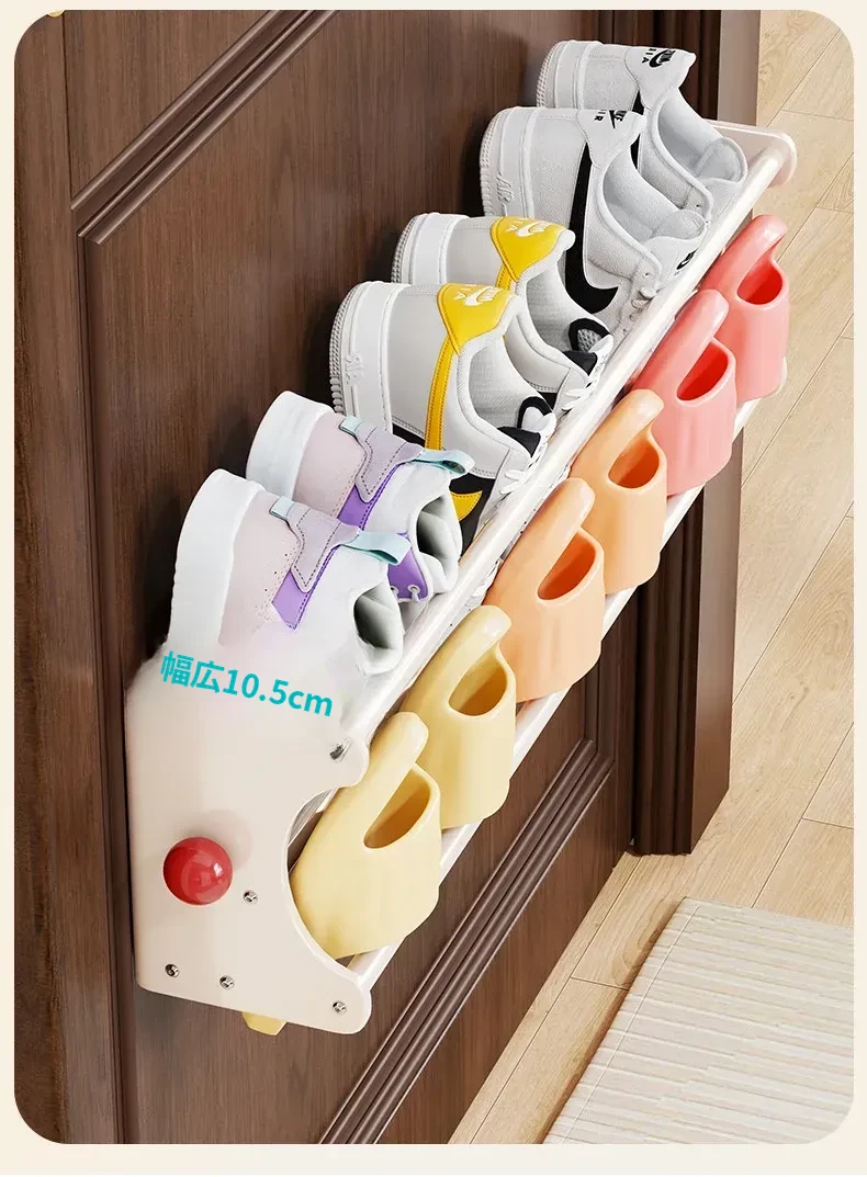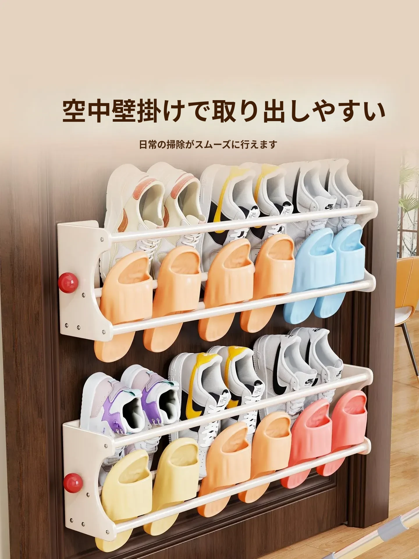 マグネット式シューラック 省スペーストイレ用スリッパ置き場 防水&通気性抜群の2段シューズハンガー 壁掛けで玄関やドア裏に最適 家庭用靴収納に最適!おしゃれで実用的な収納ソリューション!