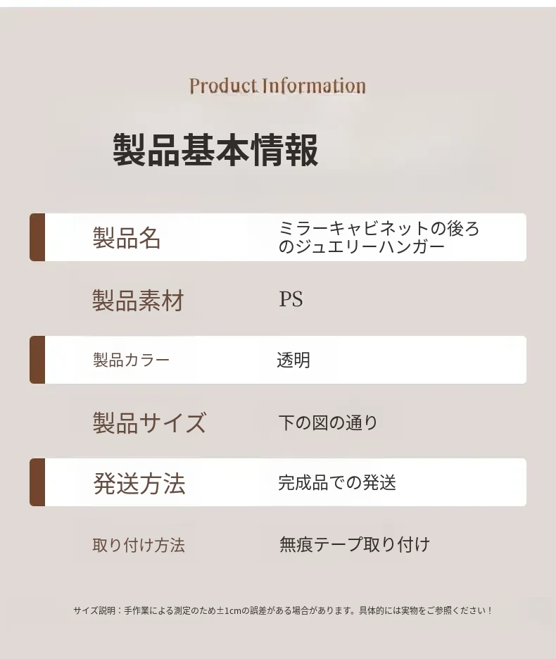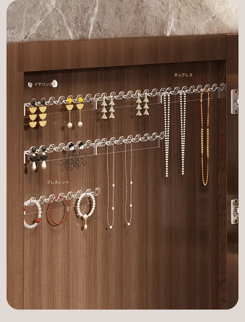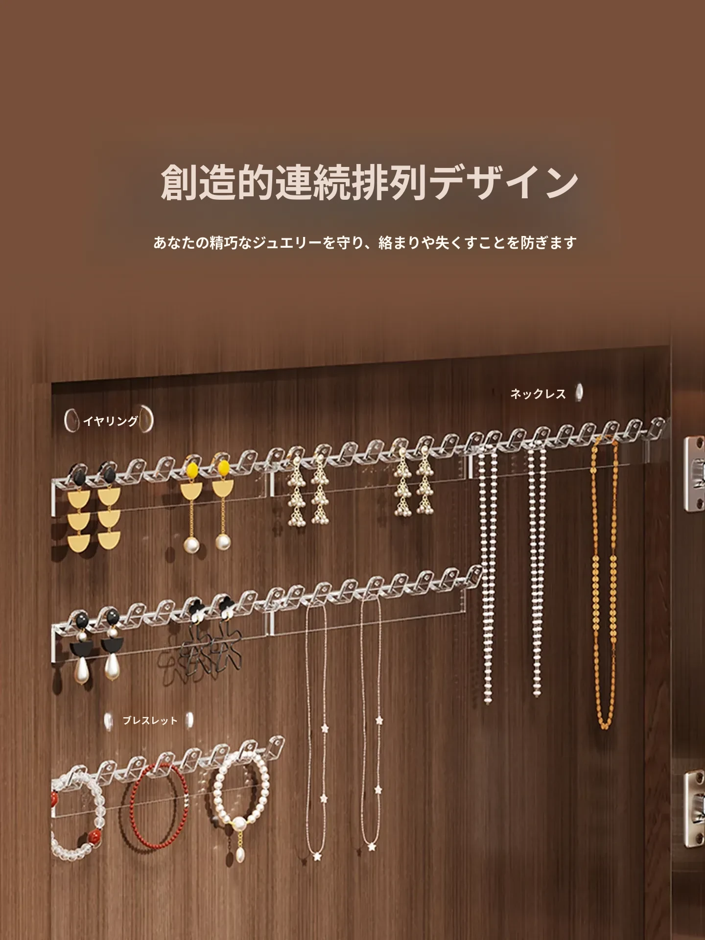 鏡扉裏のネックレスハンガー 多フック ブレスレット・アンクレット収納ラック ジュエリーディスプレイフック 美しく整理整頓されたアクセサリー収納で、あなたの大切なジュエリーを華やかに演出!
