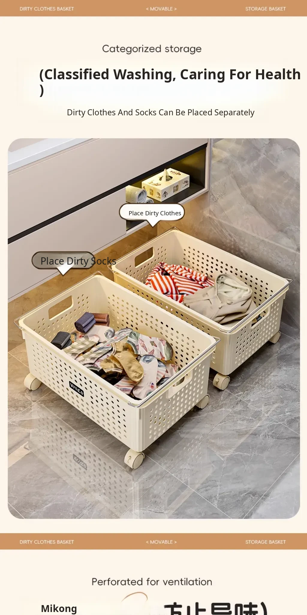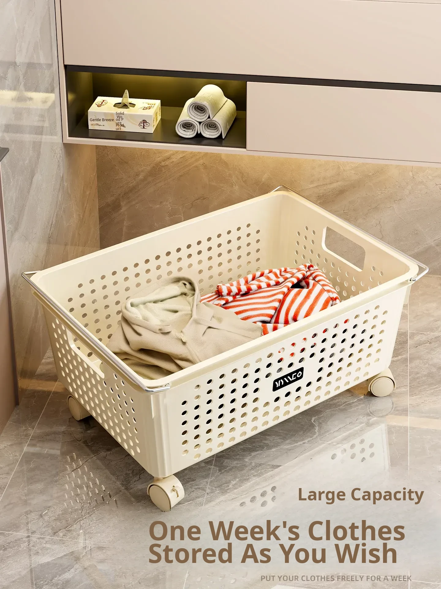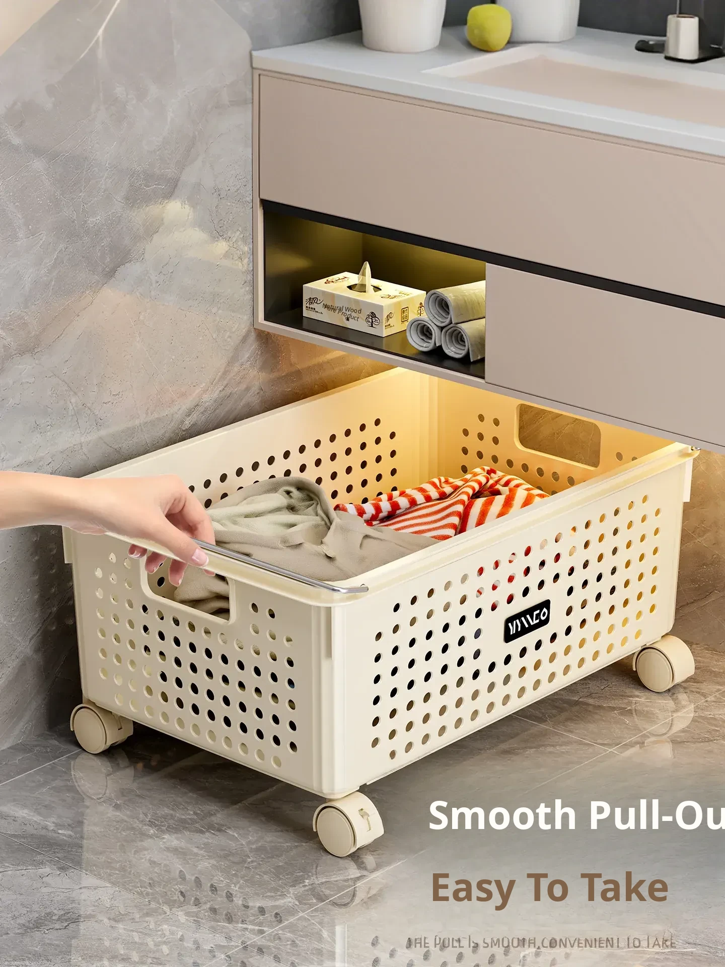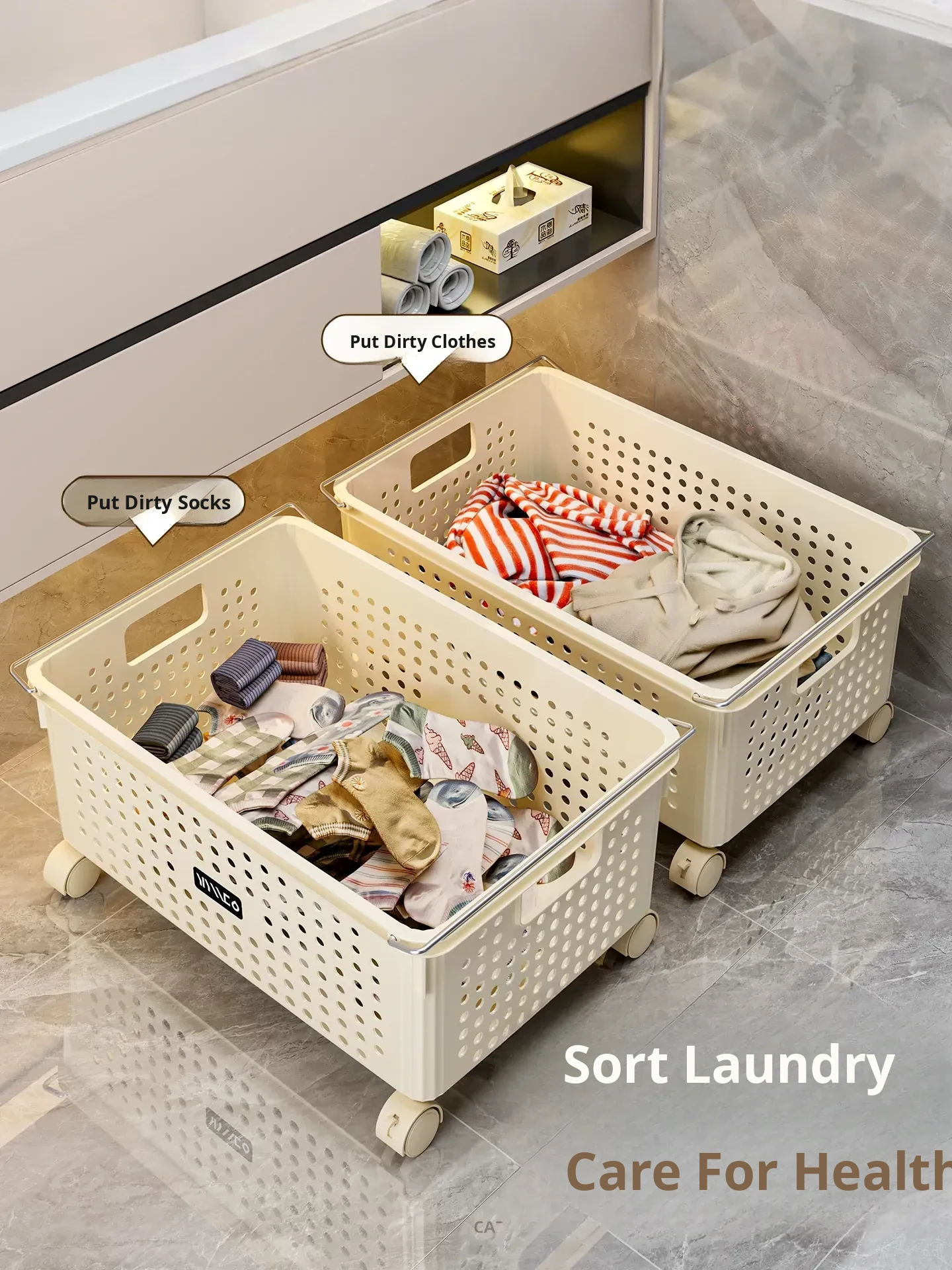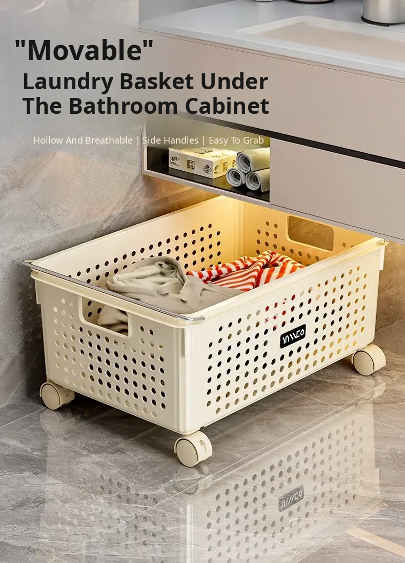 Mobile Laundry Basket with Wheels - Stylish Bathroom Cabinet Hamper for Easy Clothes Storage and Organization - Perfect for Laundry Rooms and Bathrooms