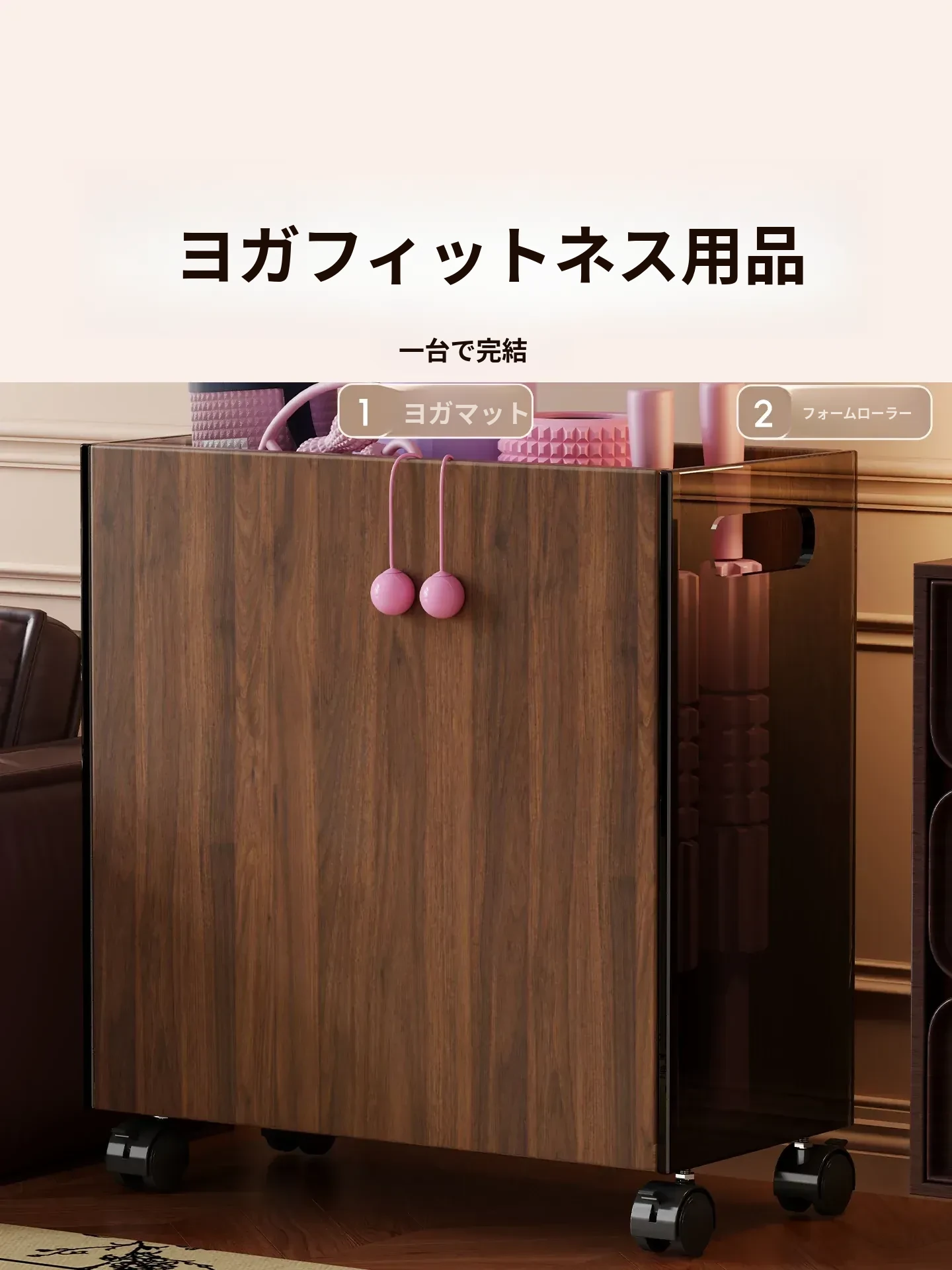 ヨガマット収納バスケット|家庭用フィットネスツールに最適なアクリル収納神器|多機能なジム器具ラックでスッキリ整理!