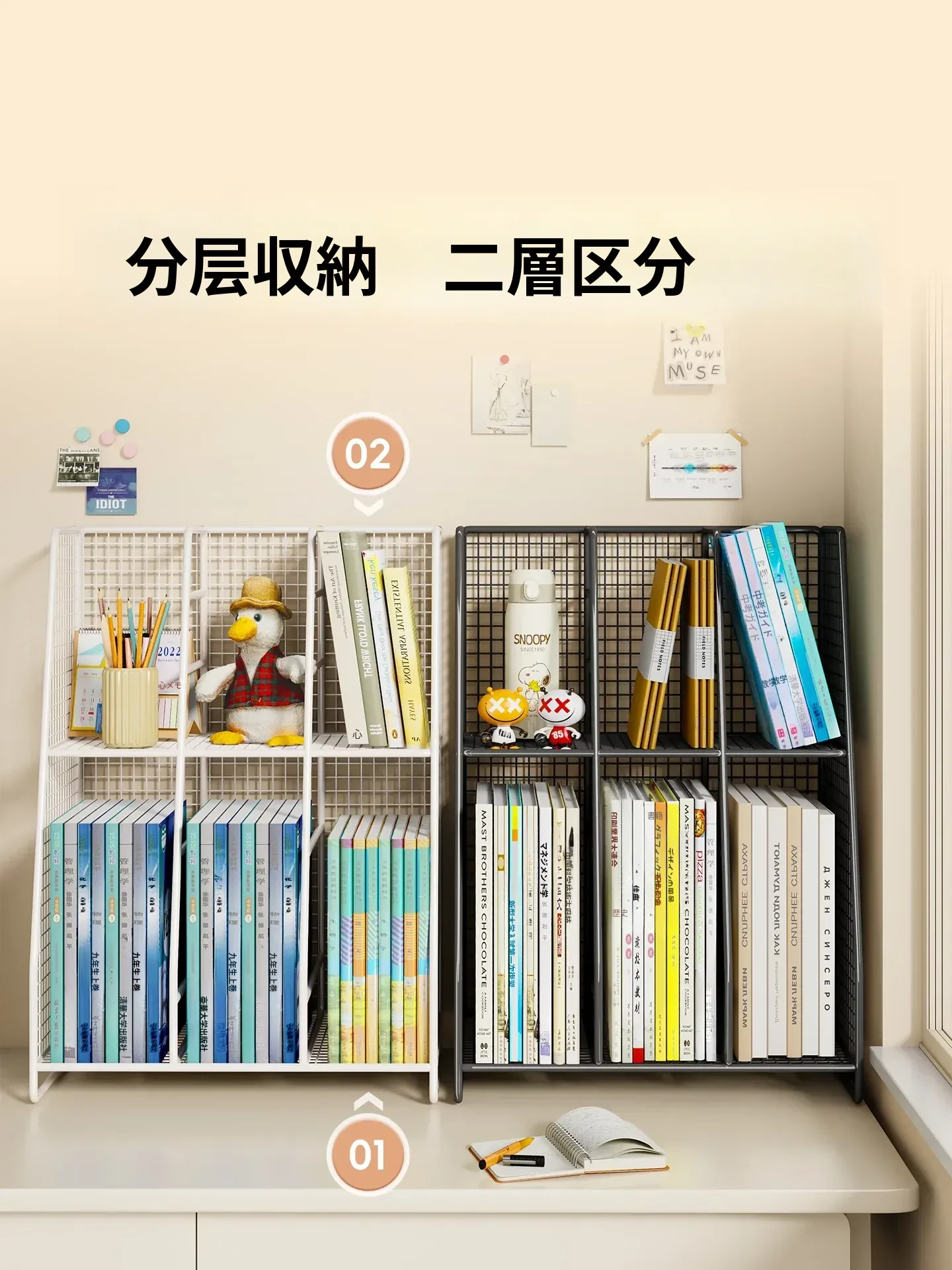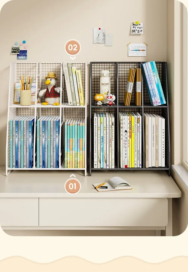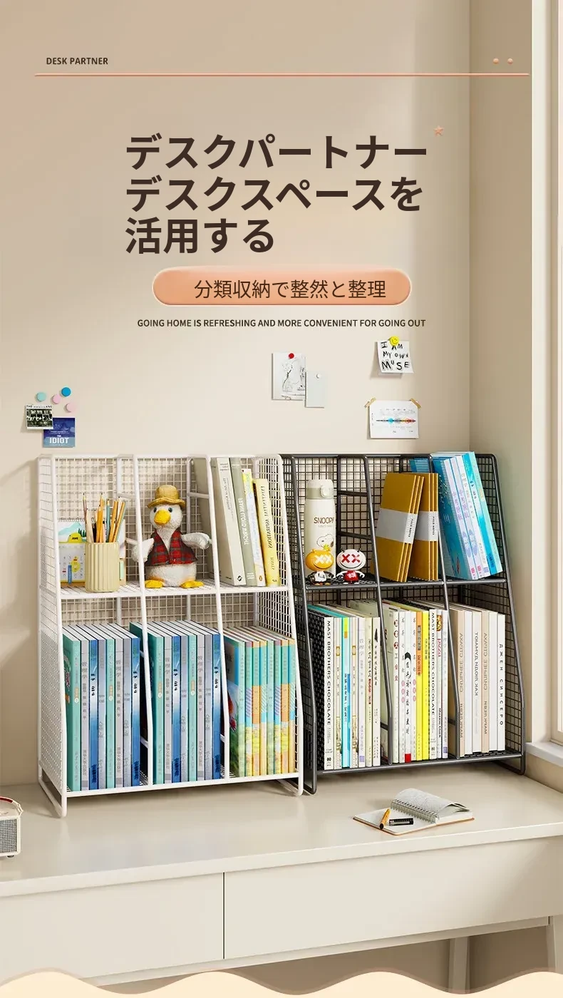 多機能学科分類デスクシェルフ!シンプルでおしゃれな書籍スタンド、学生のための多層収納ラック。整理整頓が簡単!デスク周りをスッキリさせよう!