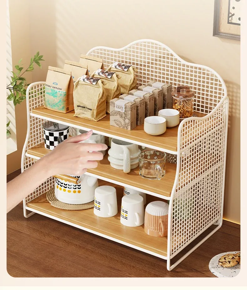 多機能デスク収納ラック - キッチンやリビングに最適なスナック整理棚!ティーバッグや水筒もすっきり収納できる、スペースを有効活用する便利アイテム!