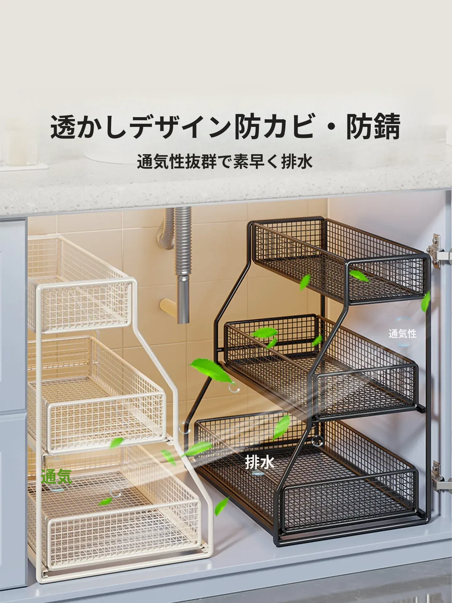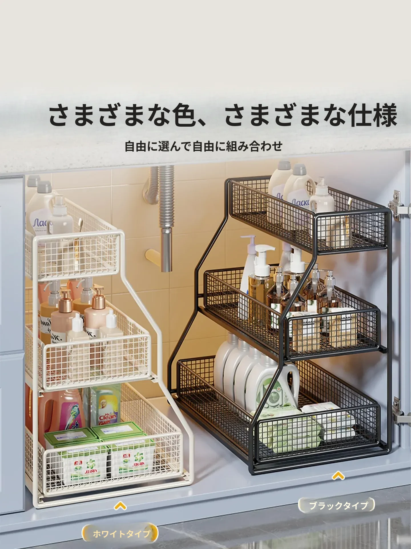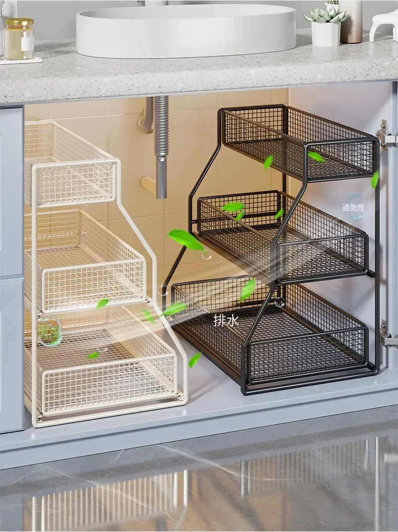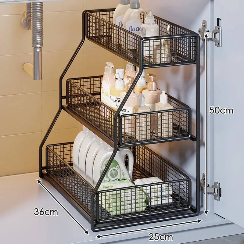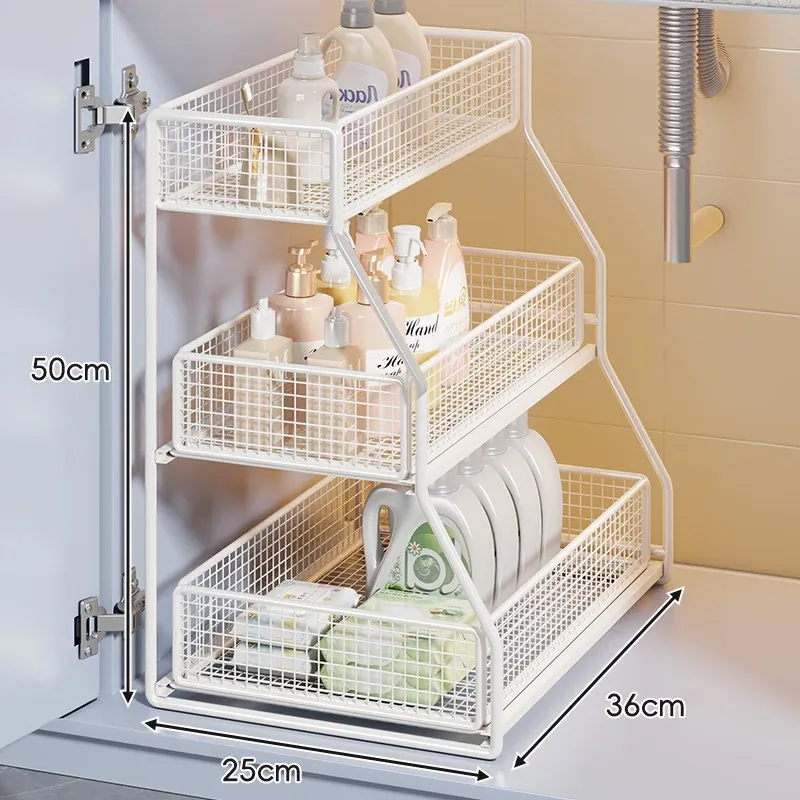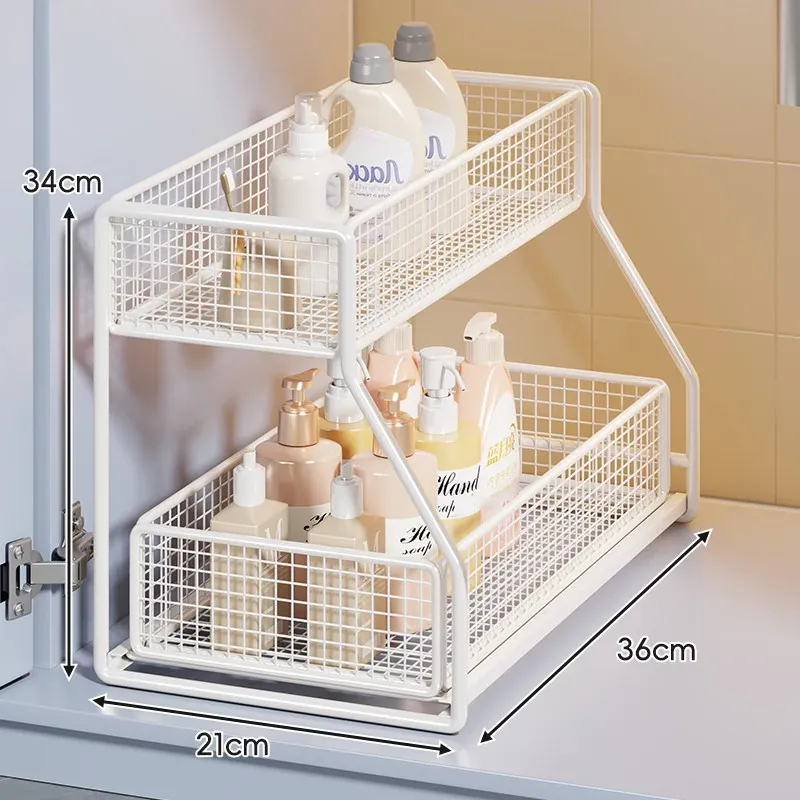 引き出し式収納ラック - 洗面台や浴室に最適な多機能バスケット!洗剤や小物の整理整頓にぴったり。省スペースでスッキリ収納でき、使いやすさ抜群のアイテムです!