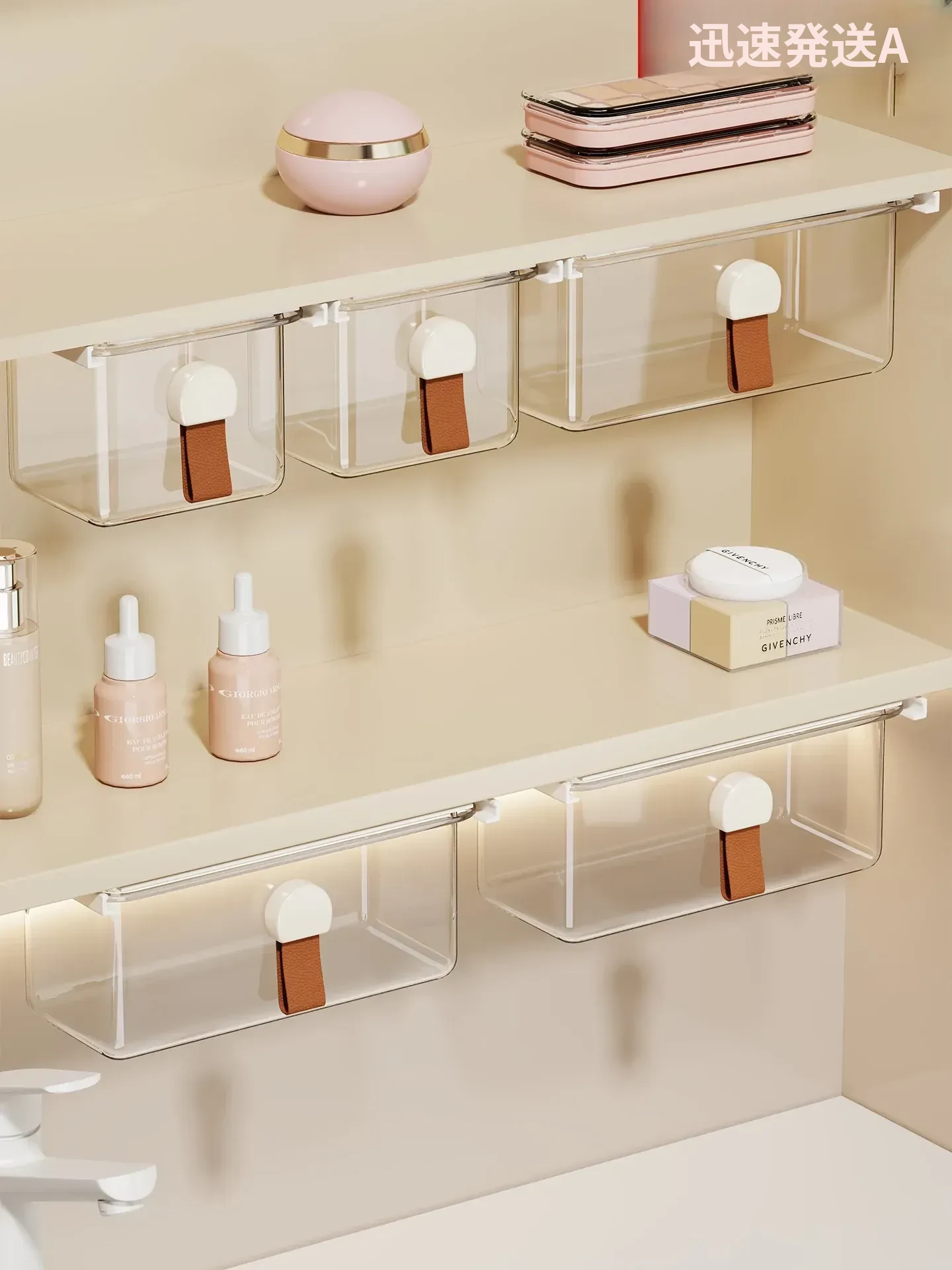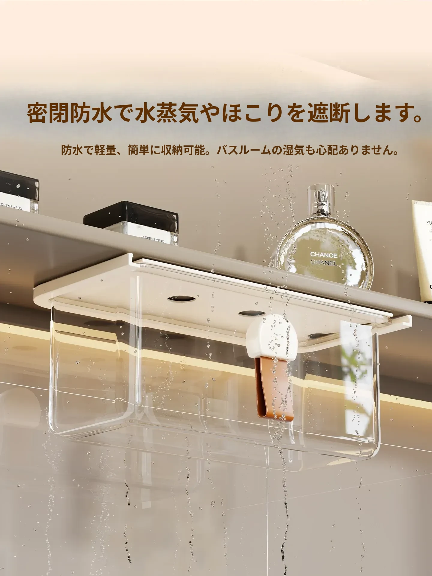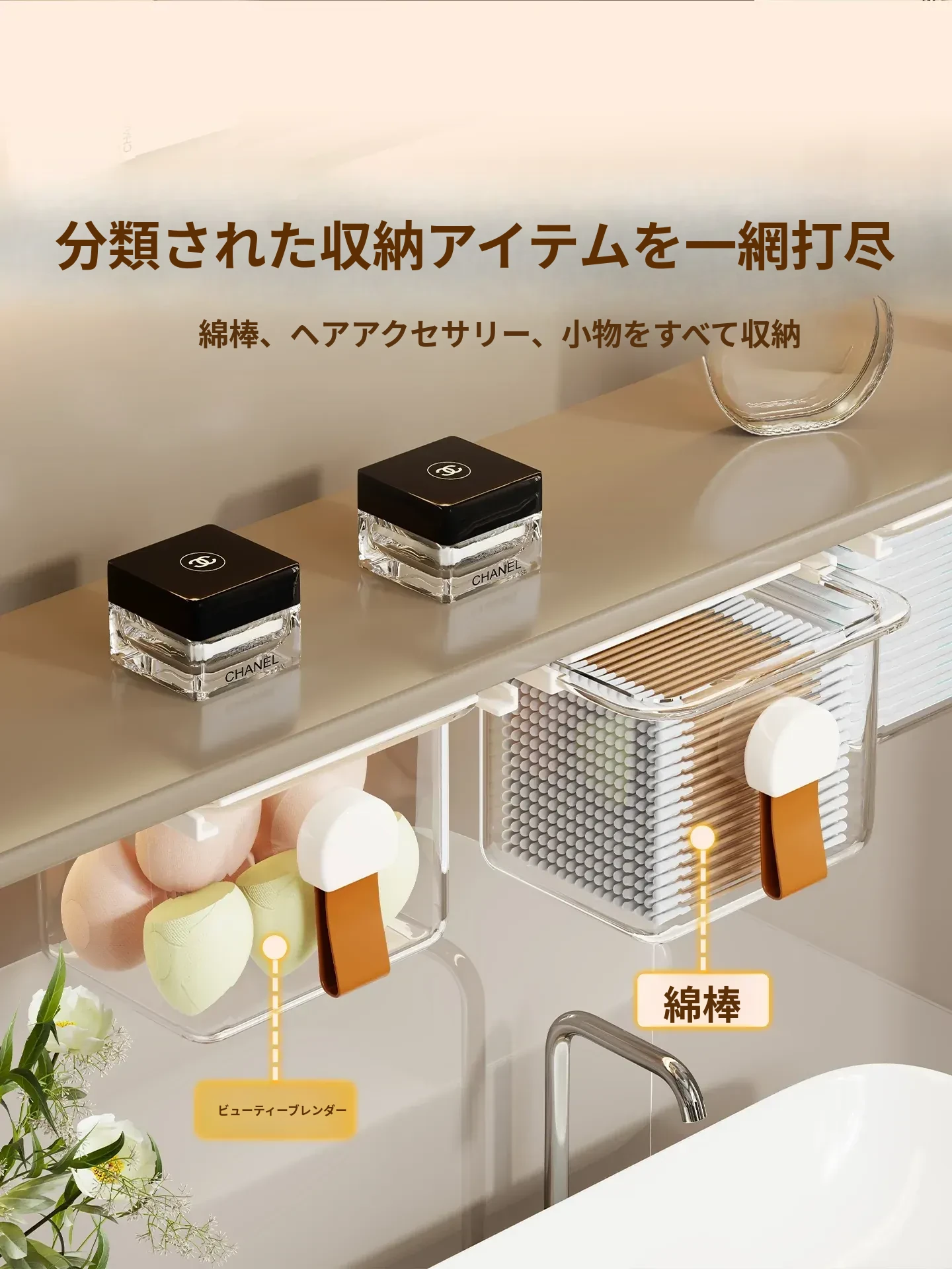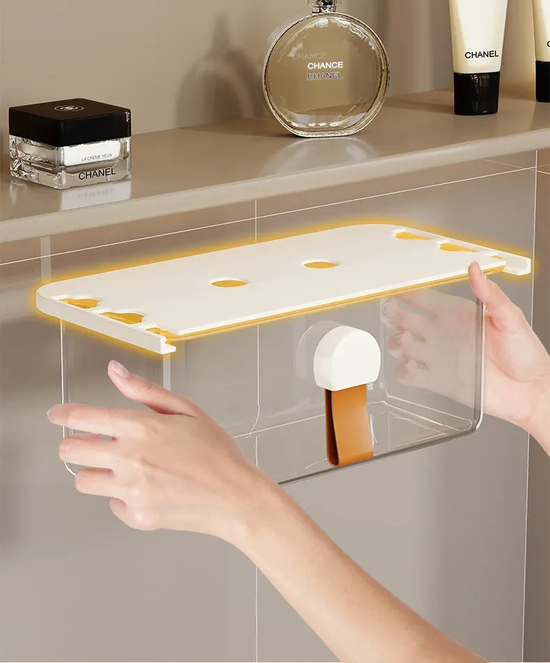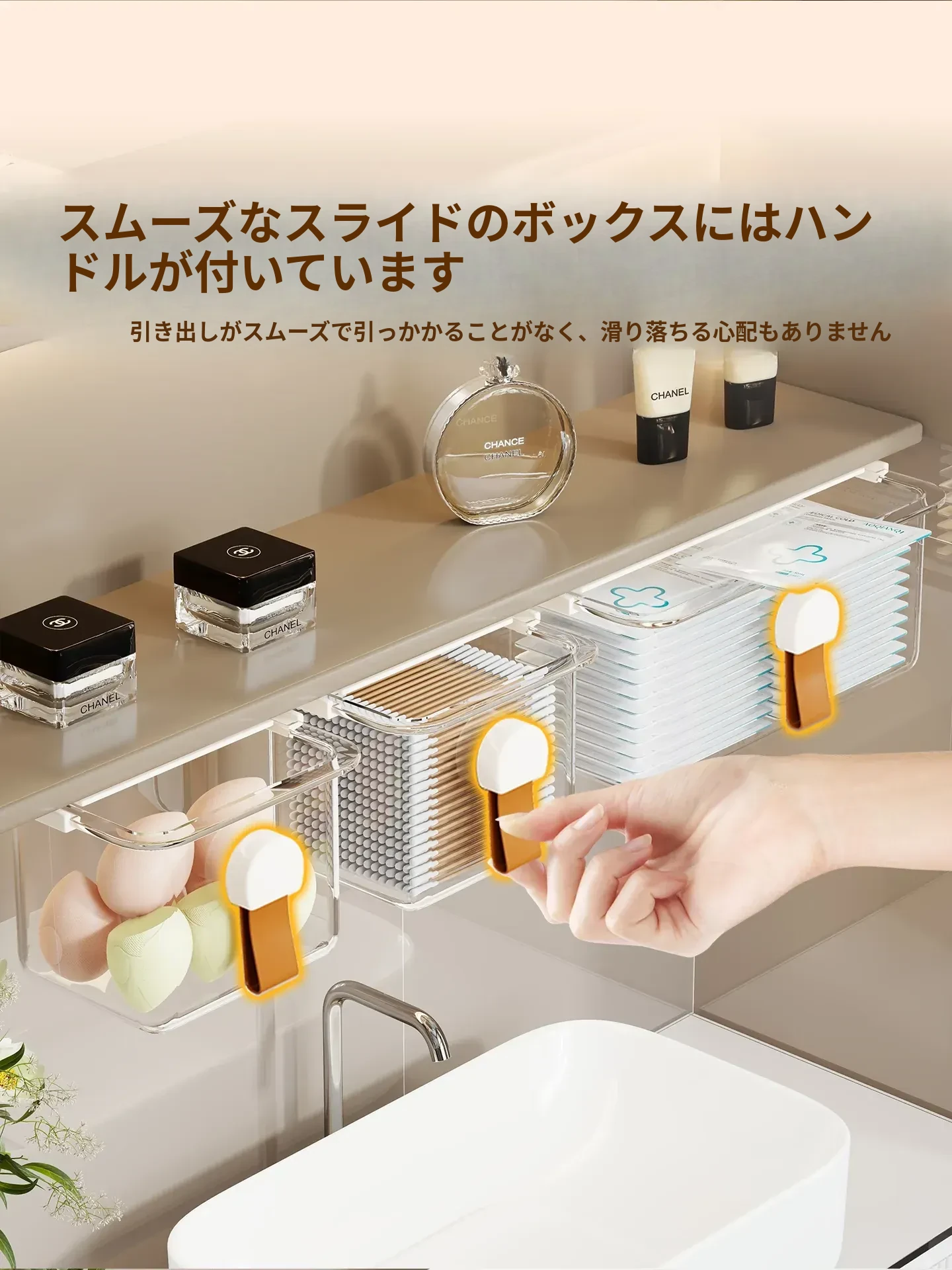 洗面台の多機能収納ボックス - メイク落としコットンやリップスティック、綿棒をすっきり整理!透明なデザインで、使いやすさ抜群の収納神器!