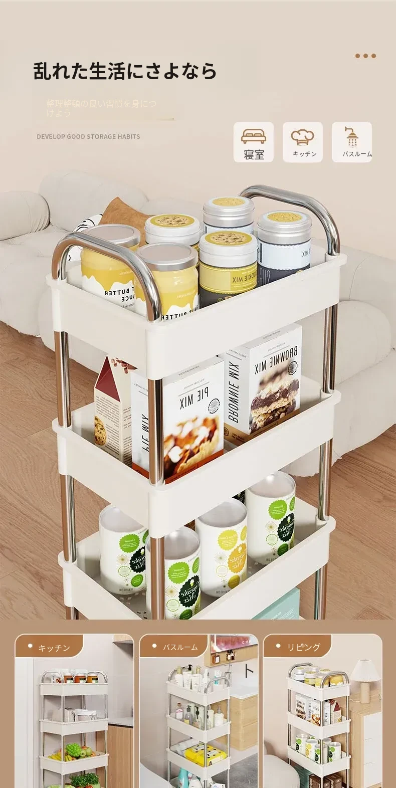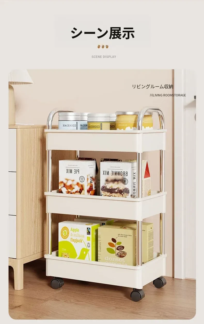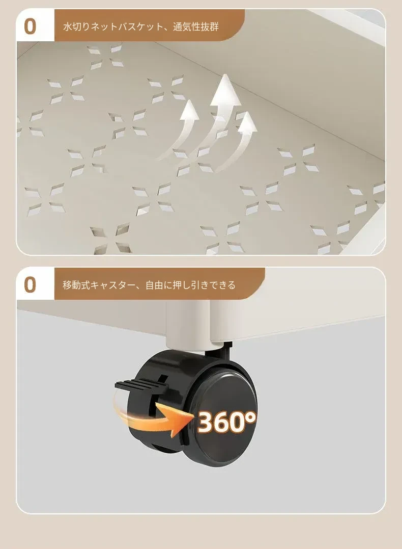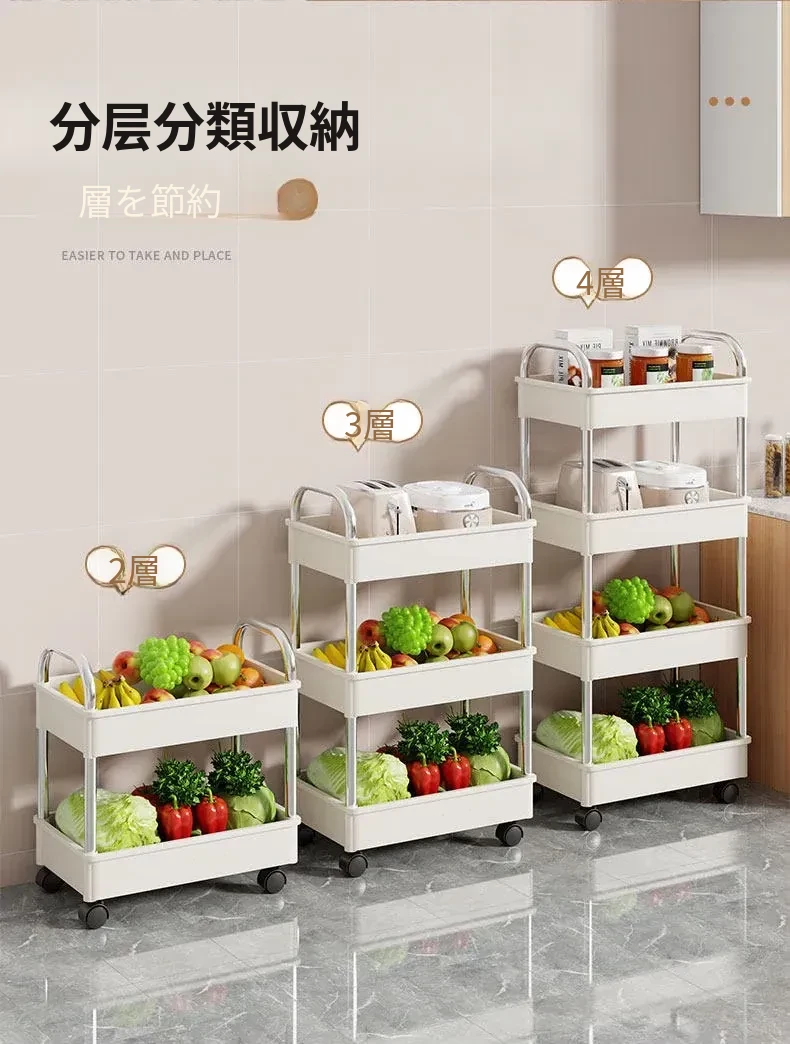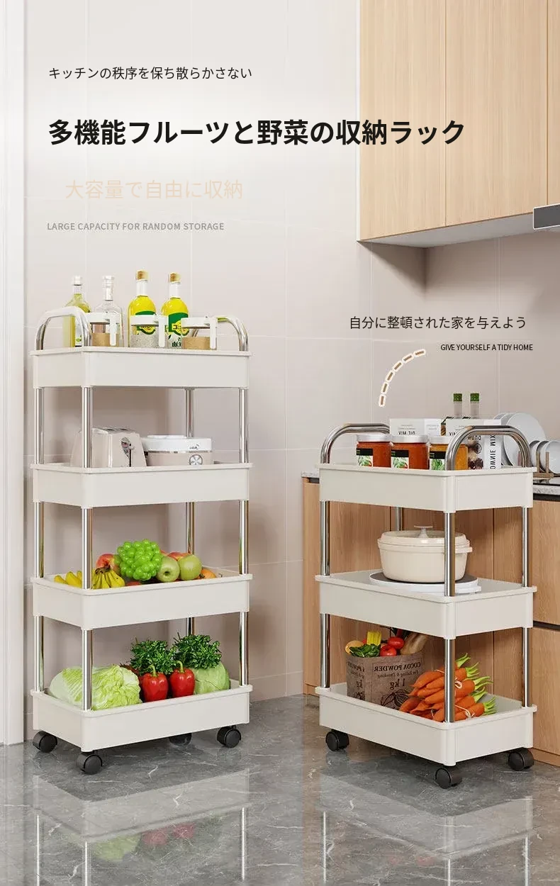 キッチン収納ラック 移動式マルチレイヤーカート 家庭用 多機能フルーツ&野菜バスケット収納棚 省スペースで便利!おしゃれなデザインでキッチンを彩ります。