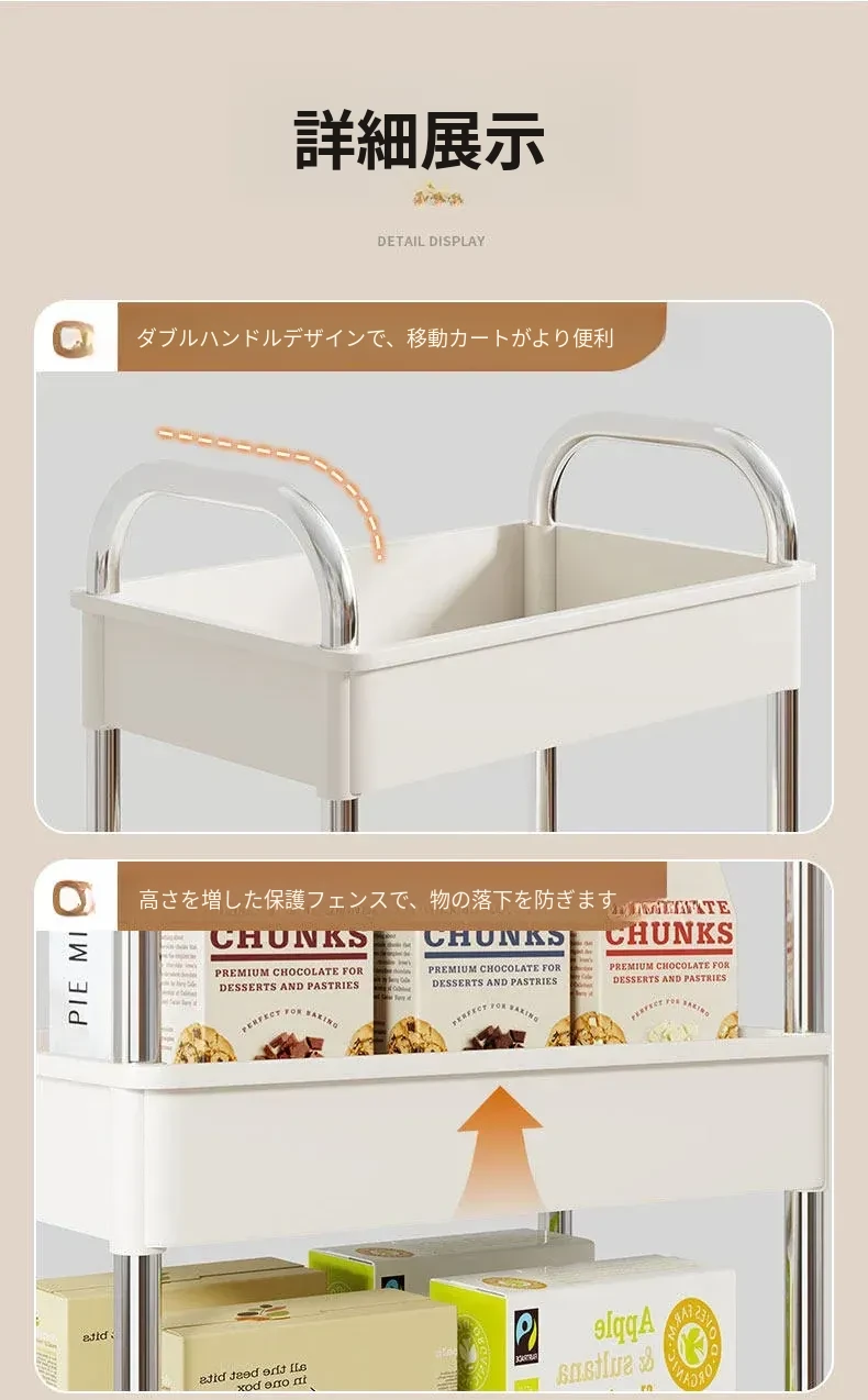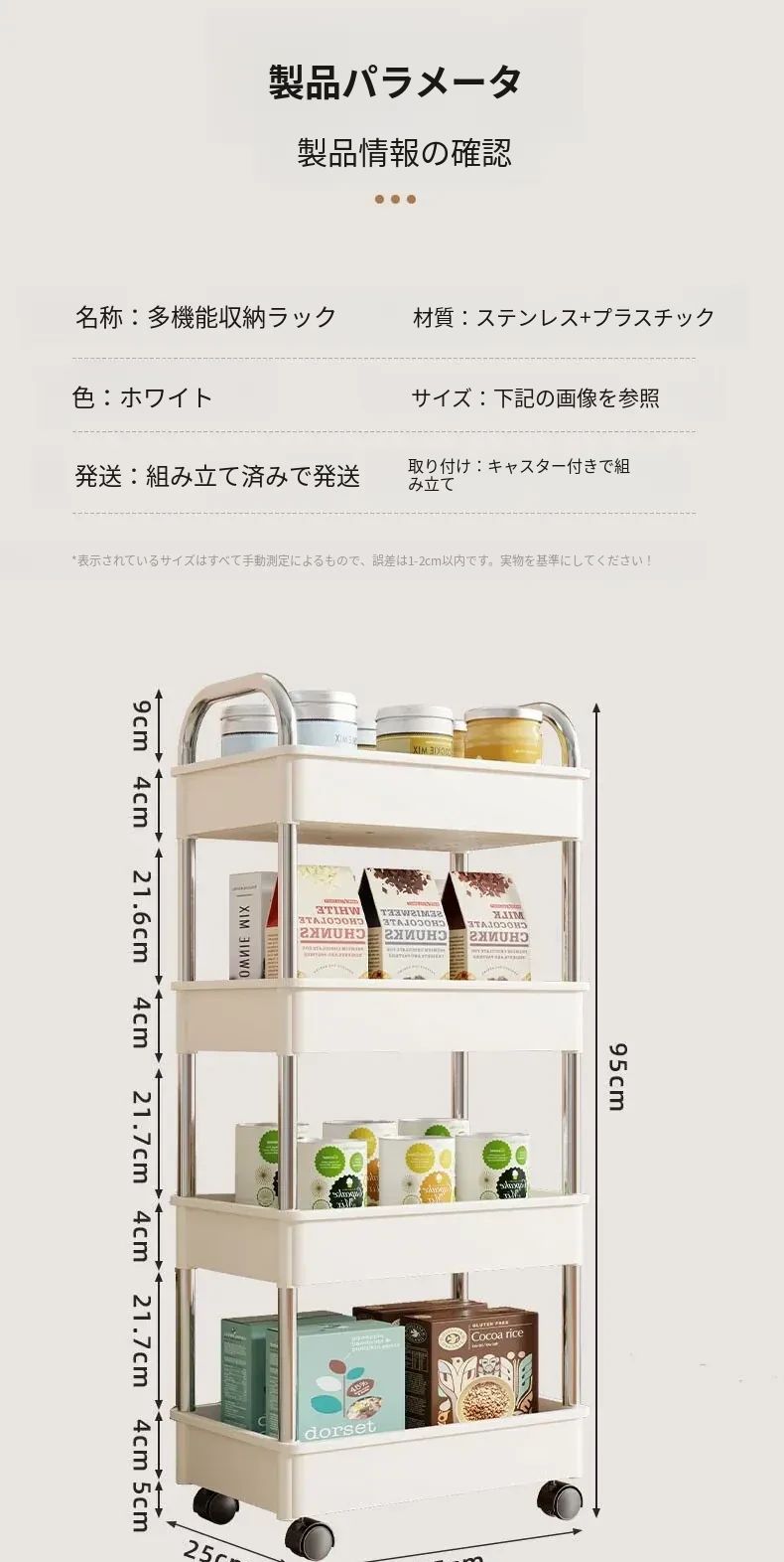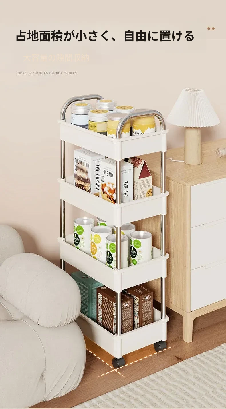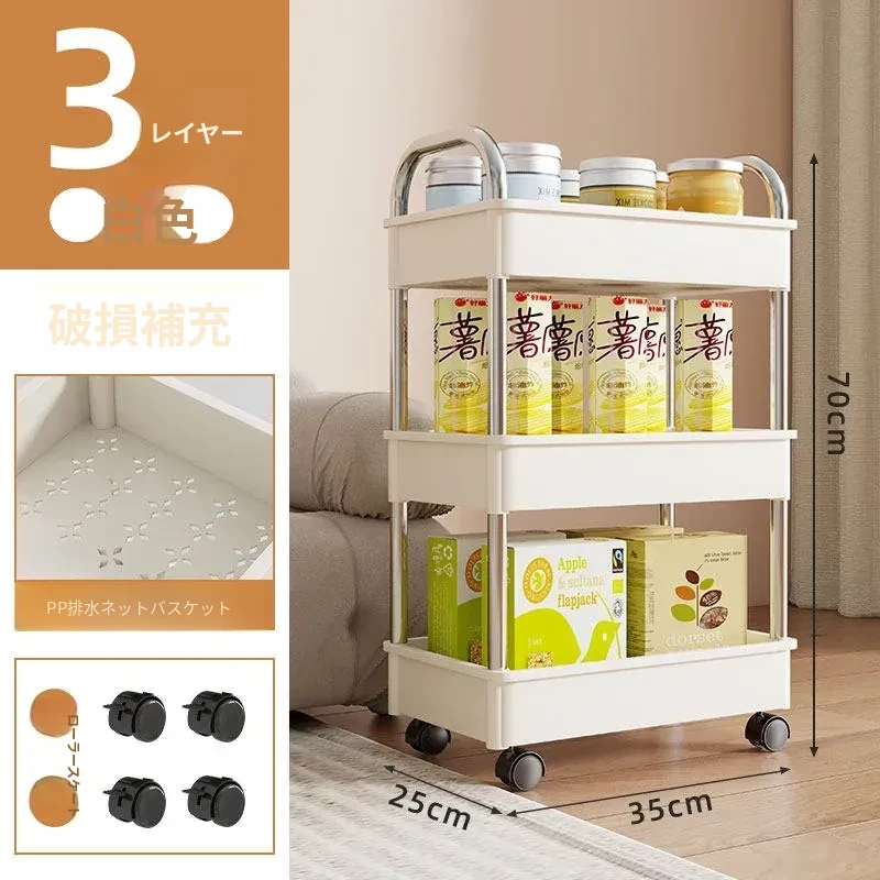 キッチン収納ラック 移動式マルチレイヤーカート 家庭用 多機能フルーツ&野菜バスケット収納棚 省スペースで便利!おしゃれなデザインでキッチンを彩ります。