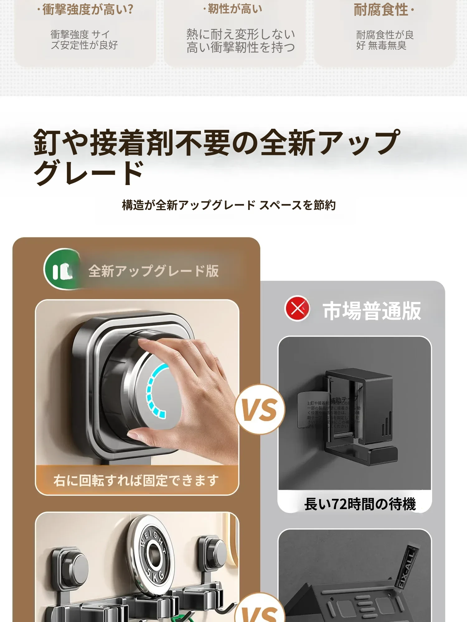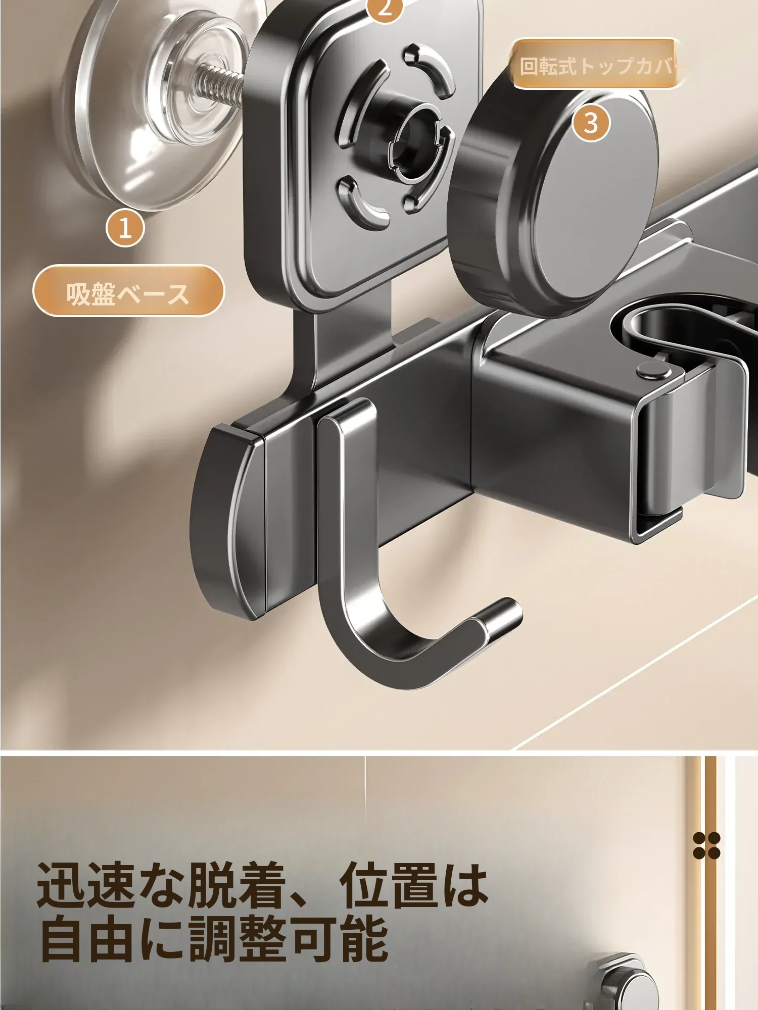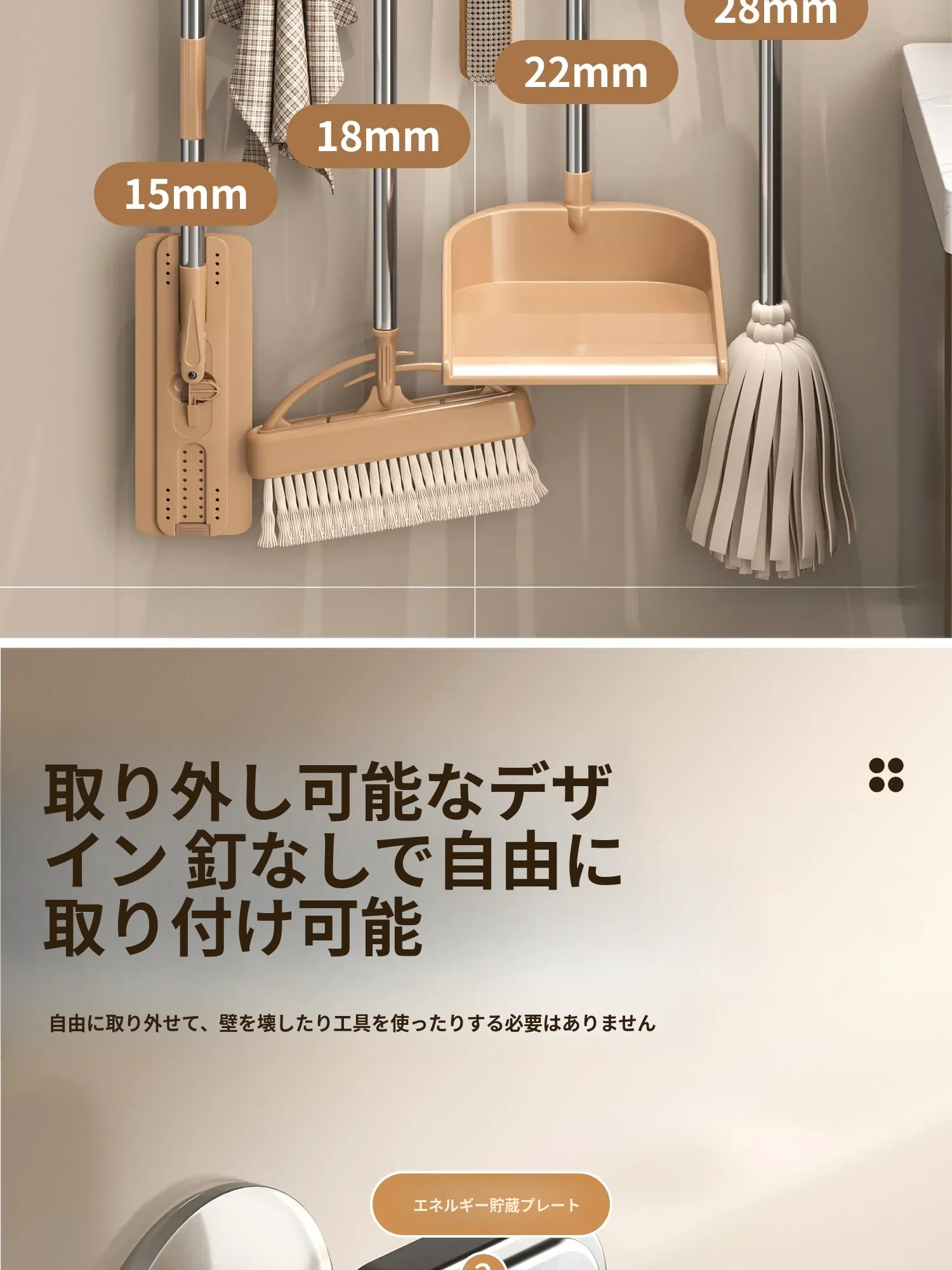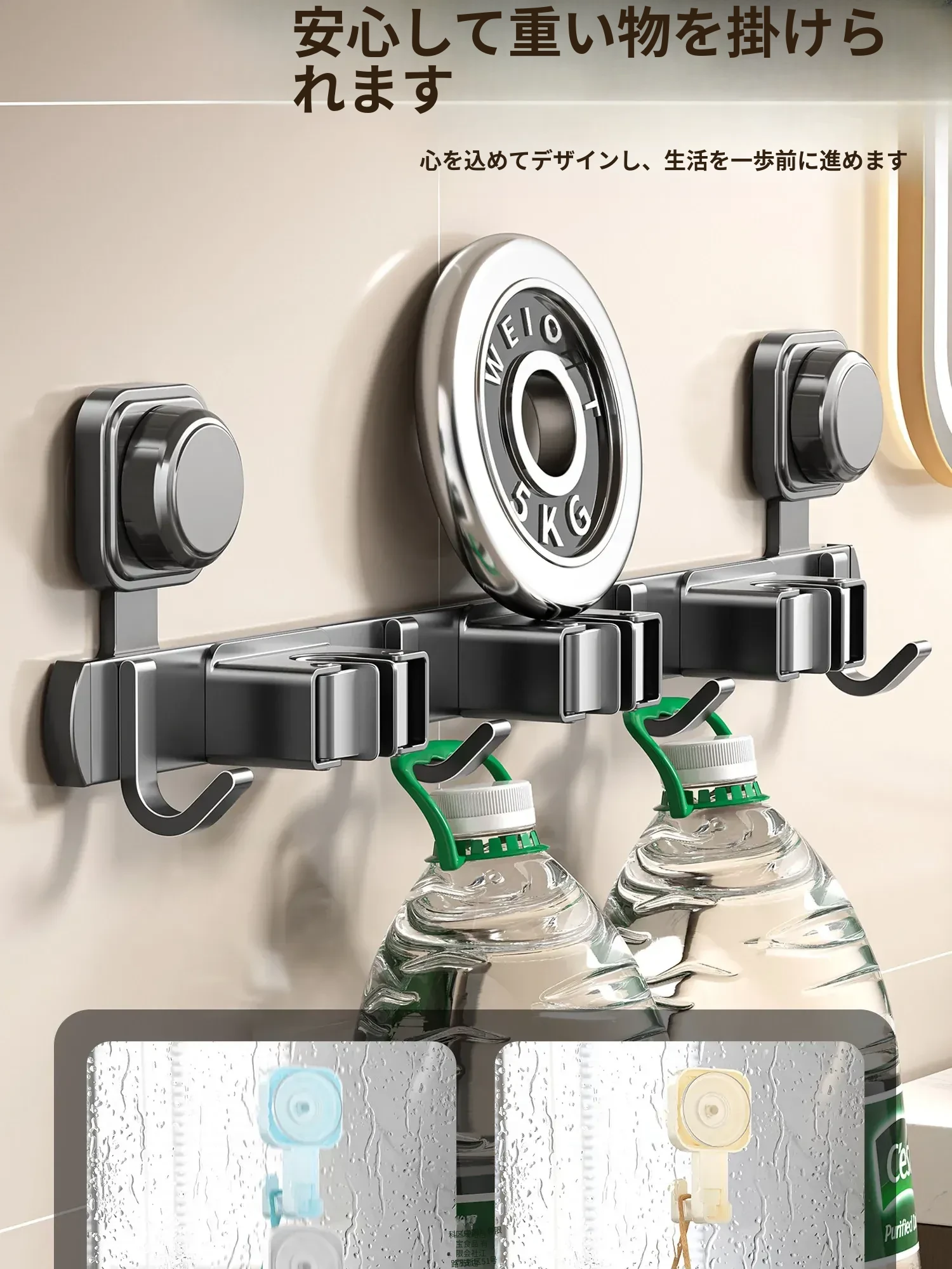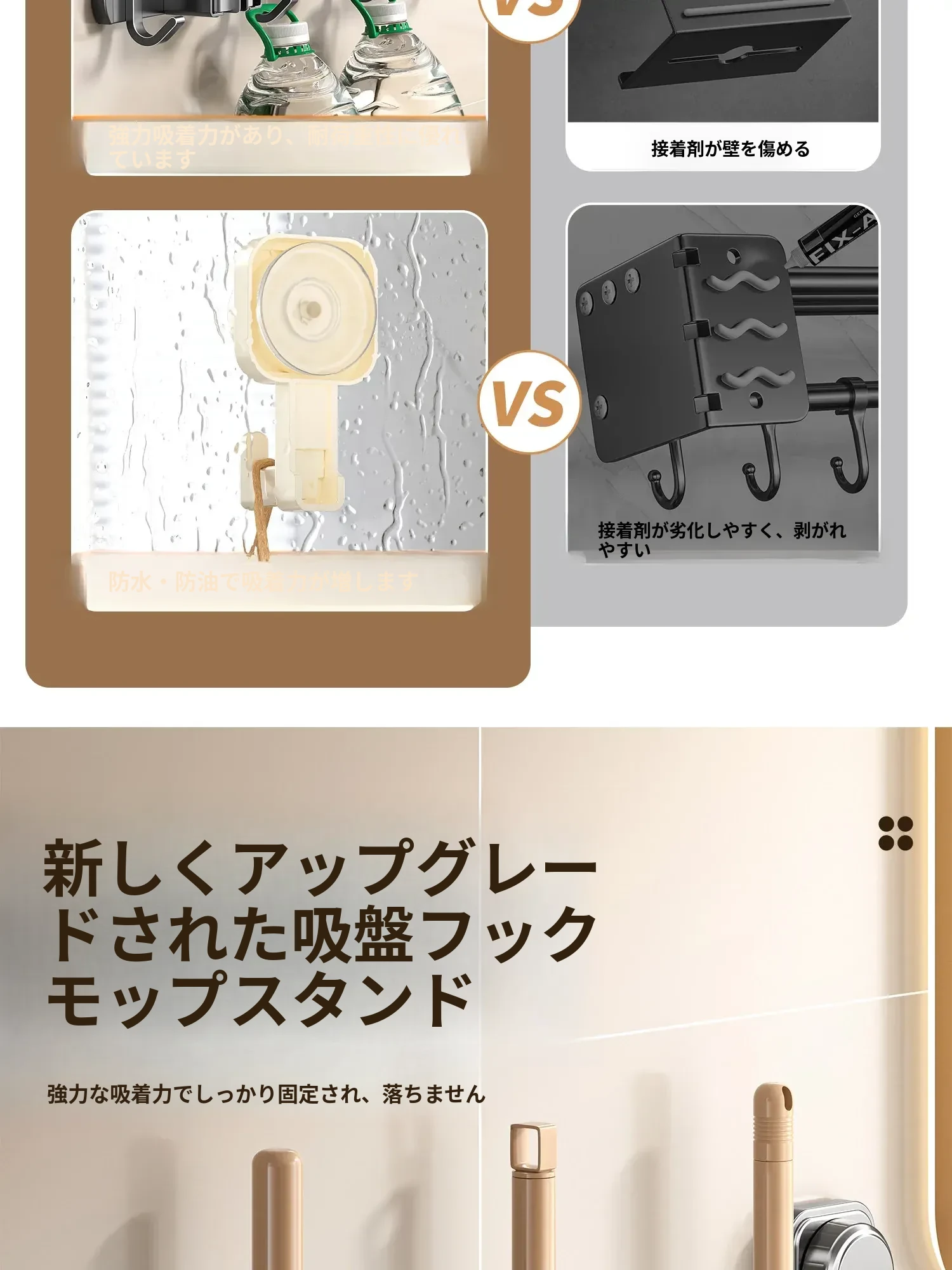 穴あけ不要!強力吸着のモップ壁掛けホルダー - トイレの壁にスマートに収納、モップやほうきをしっかり固定する便利なアイテム!整理整頓を簡単に実現!