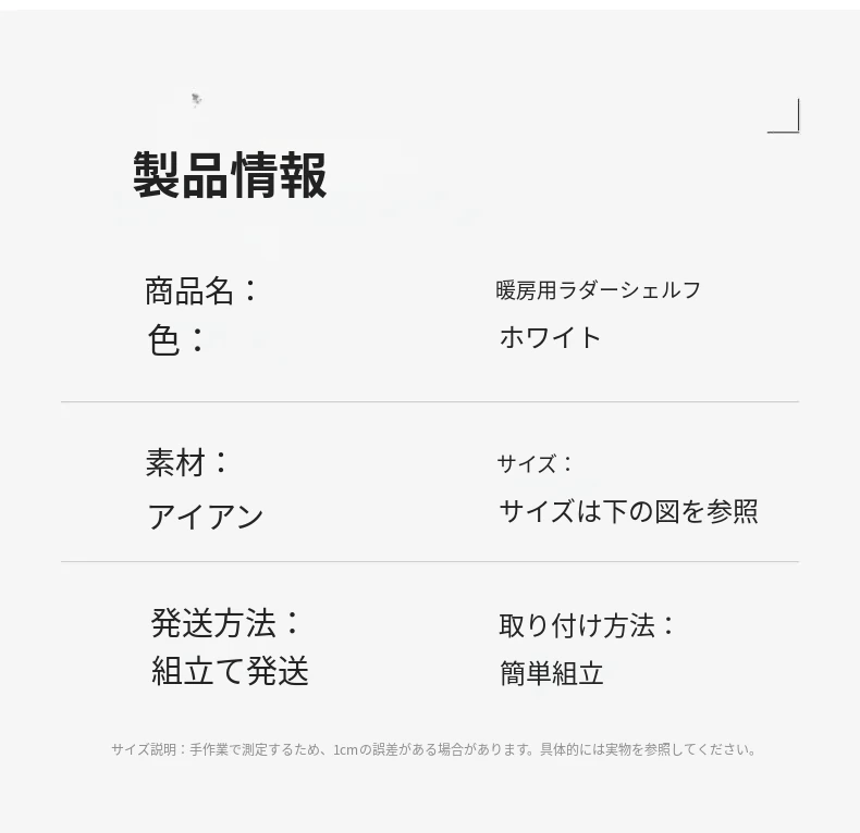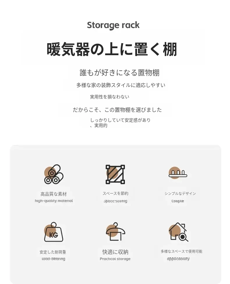 暖房用の便利な収納ラック!穴を開けずに取り付け可能な長方形の棚で、家中の整理整頓をサポートします。暖房器具の上にぴったりフィットし、スペースを有効活用。収納力抜群のマルチファンクションアイテム!