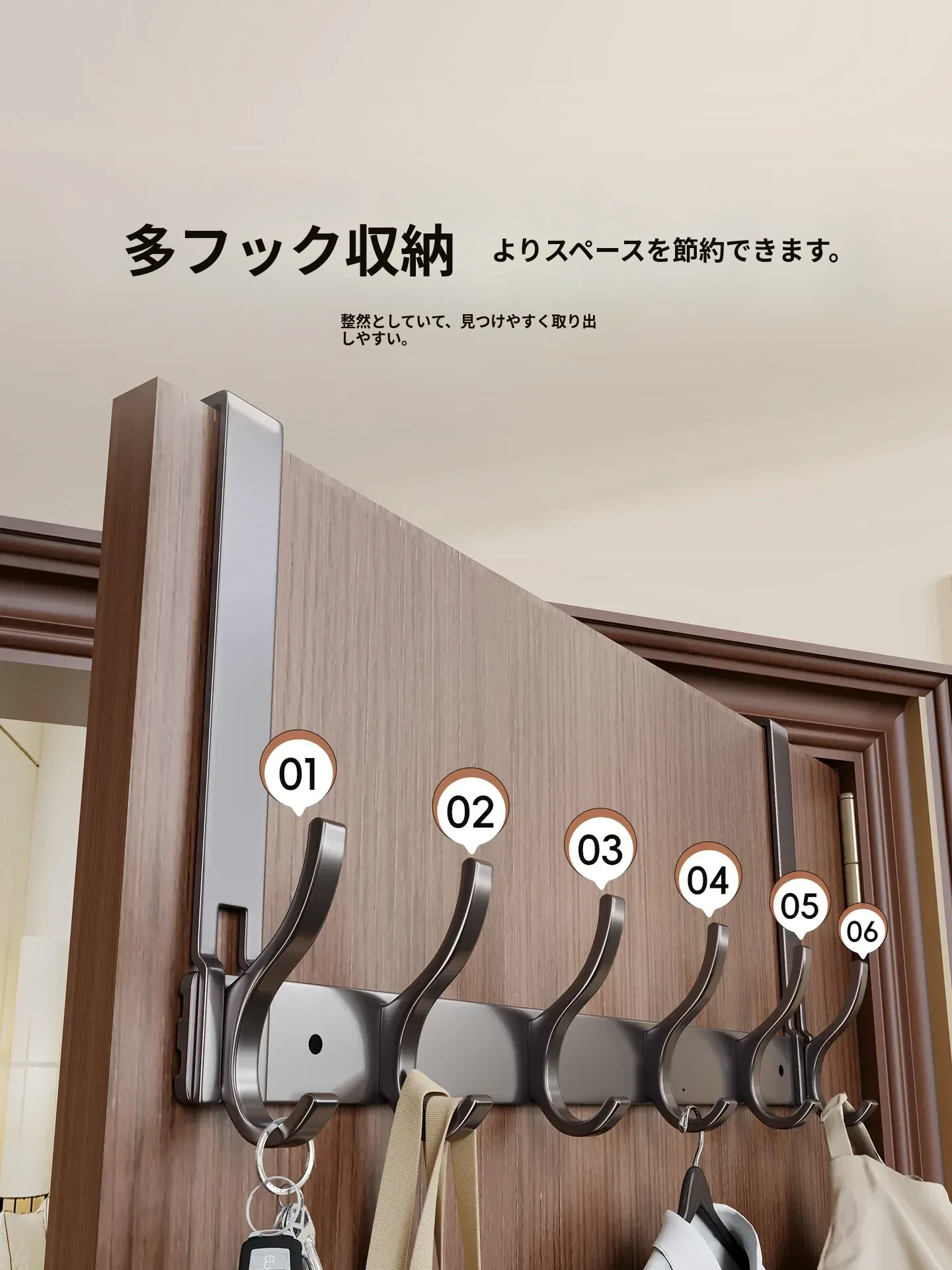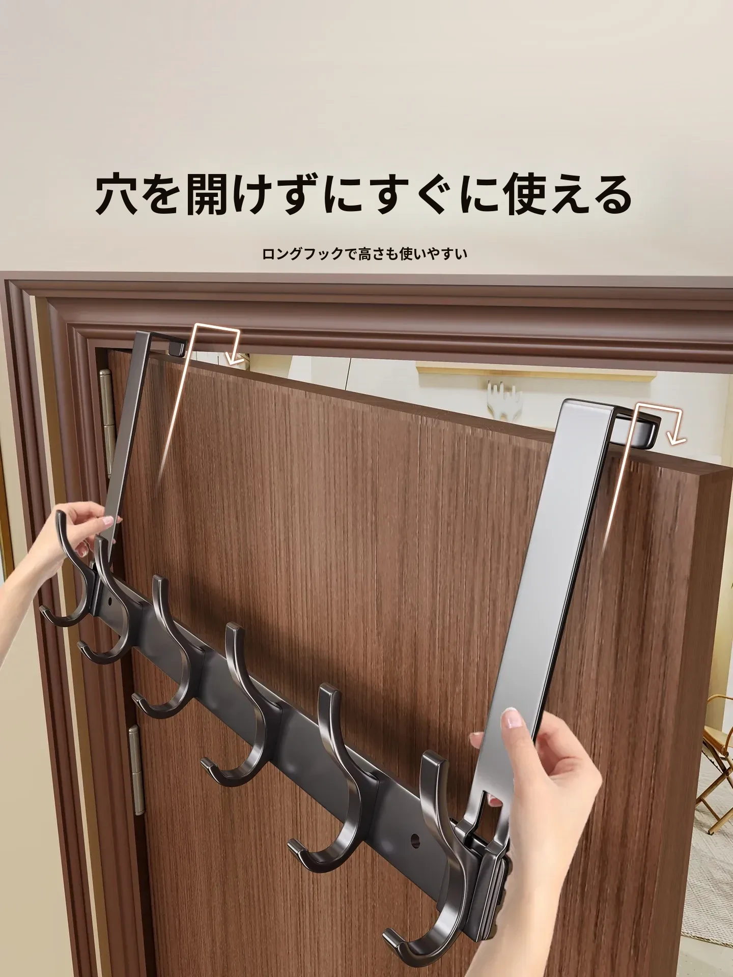 ドアフック 便利な衣類掛け 壁掛けタイプ 無穴・無痕で簡単取り付け!寝室やバスルームで大活躍の収納アイテム!スペースを有効活用して、スッキリ快適なお部屋を実現!