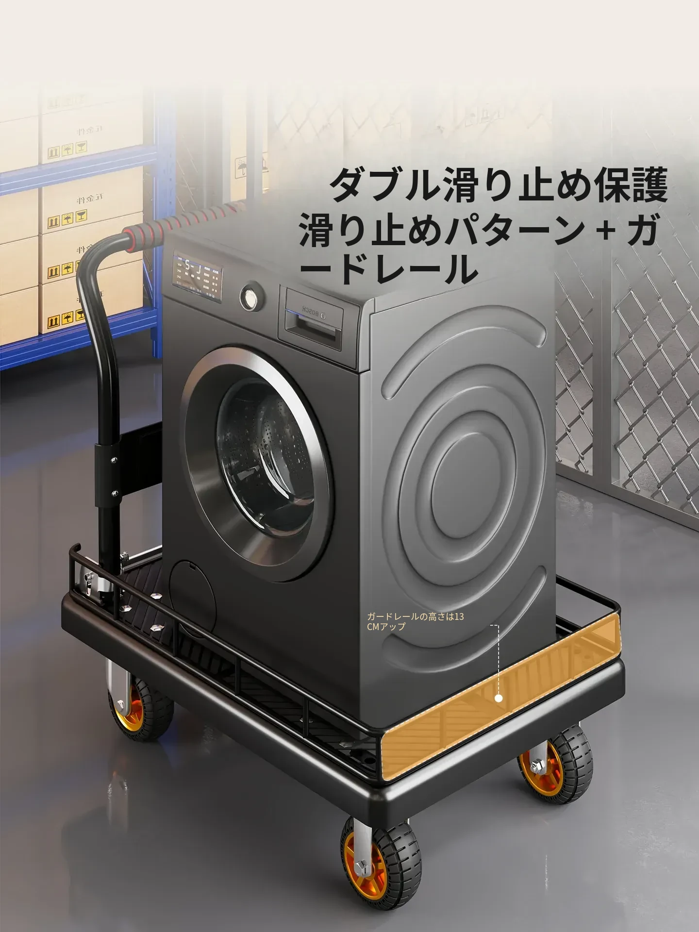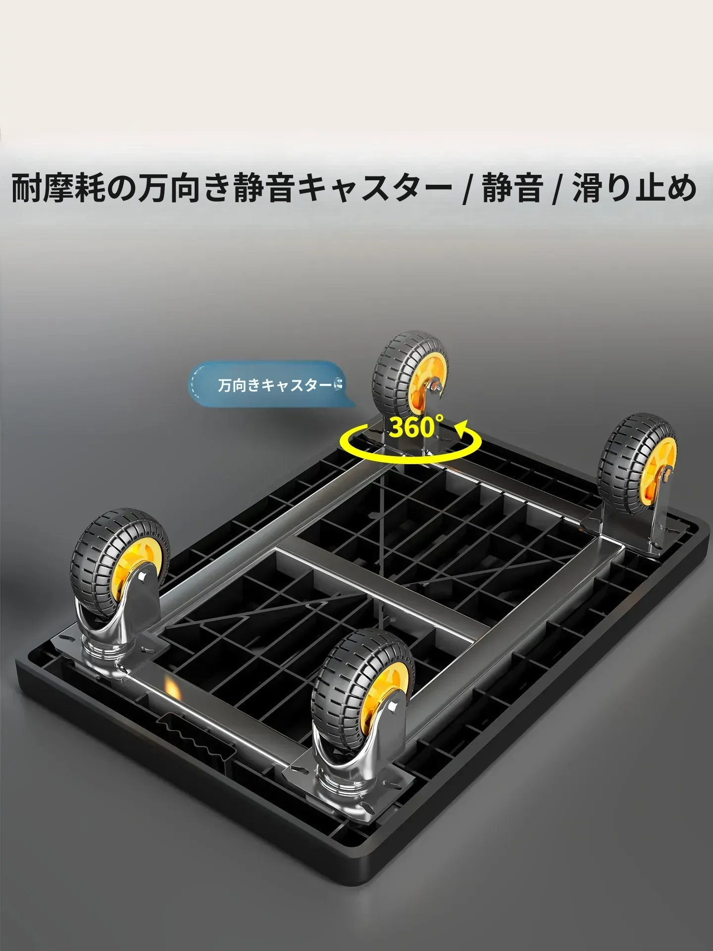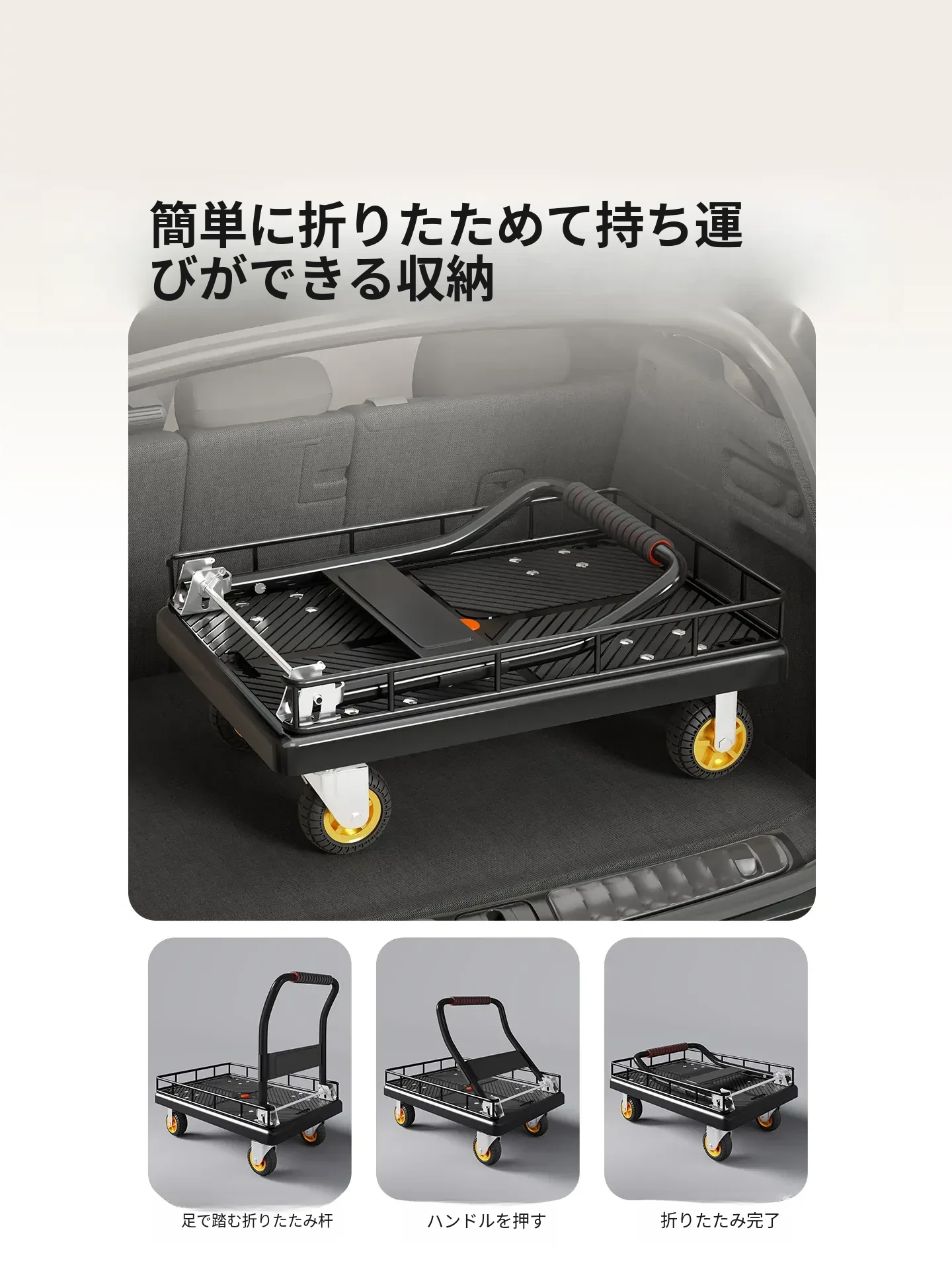 便利な折りたたみ式手押し車!宅配や引っ越しに最適な小型トロリー。軽量で持ち運びも簡単、広い荷台でたくさんの荷物を運べます。家事やお買い物にも大活躍!