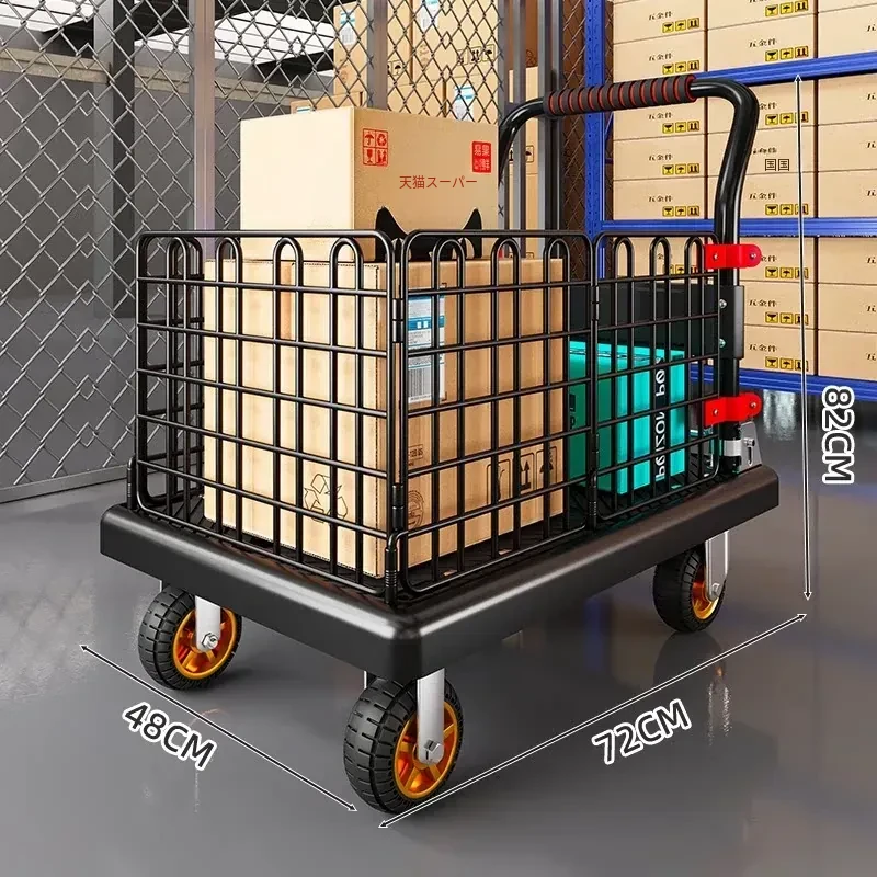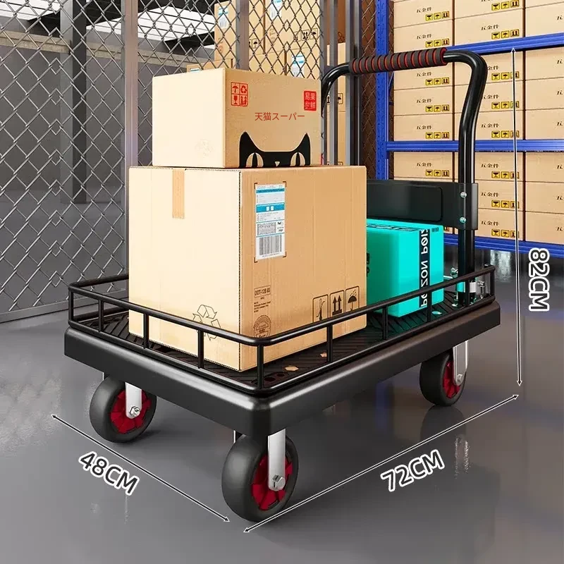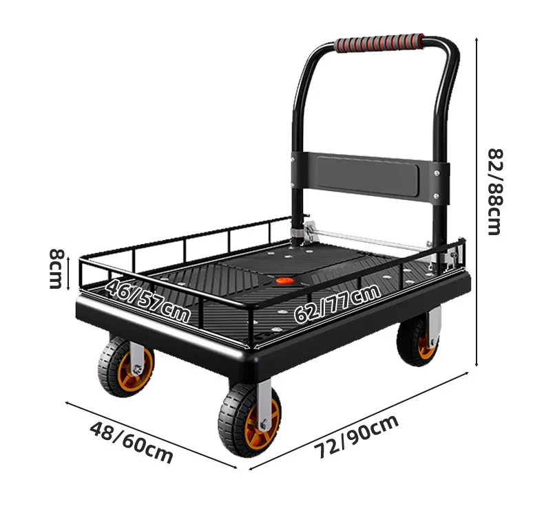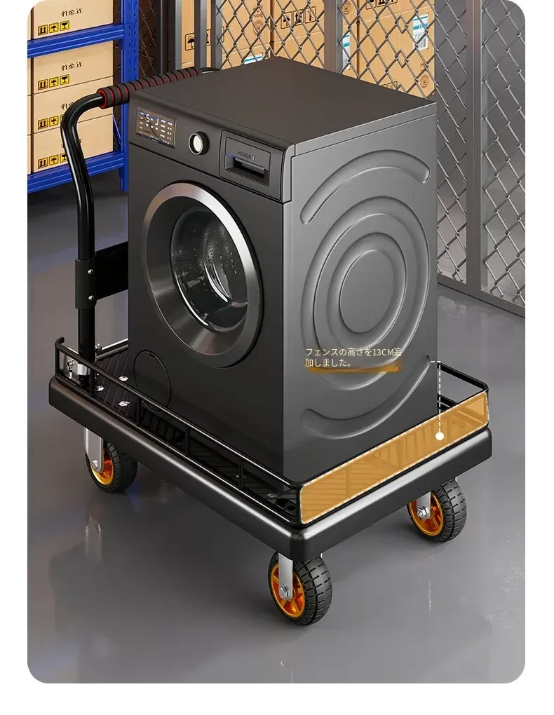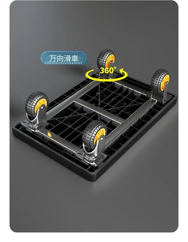 便利な折りたたみ式手押し車!宅配や引っ越しに最適な小型トロリー。軽量で持ち運びも簡単、広い荷台でたくさんの荷物を運べます。家事やお買い物にも大活躍!