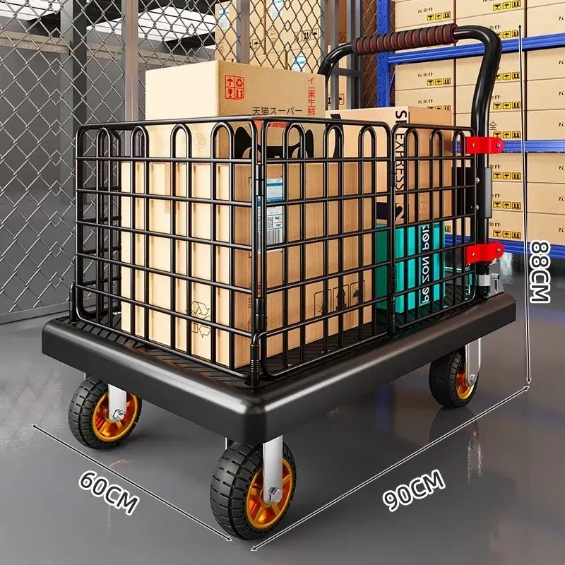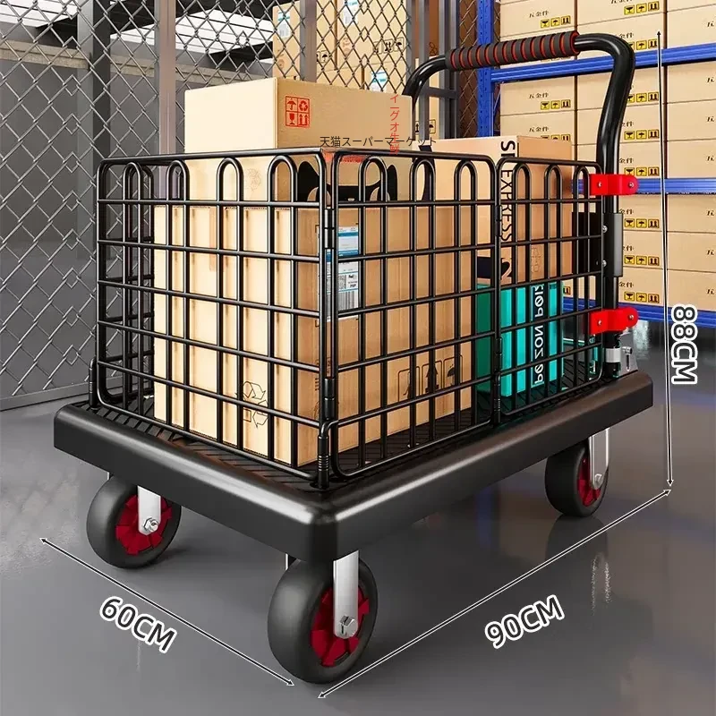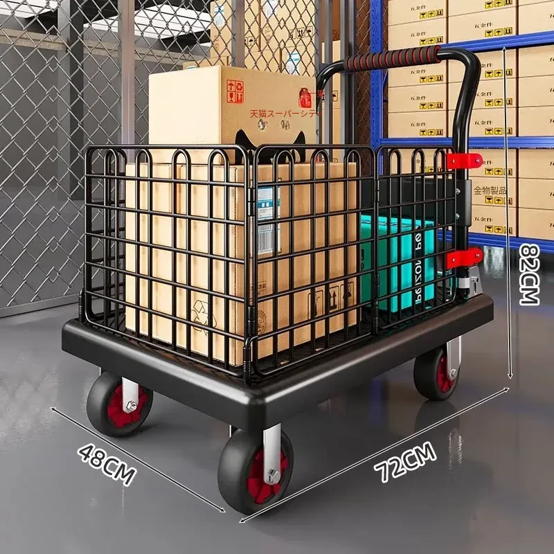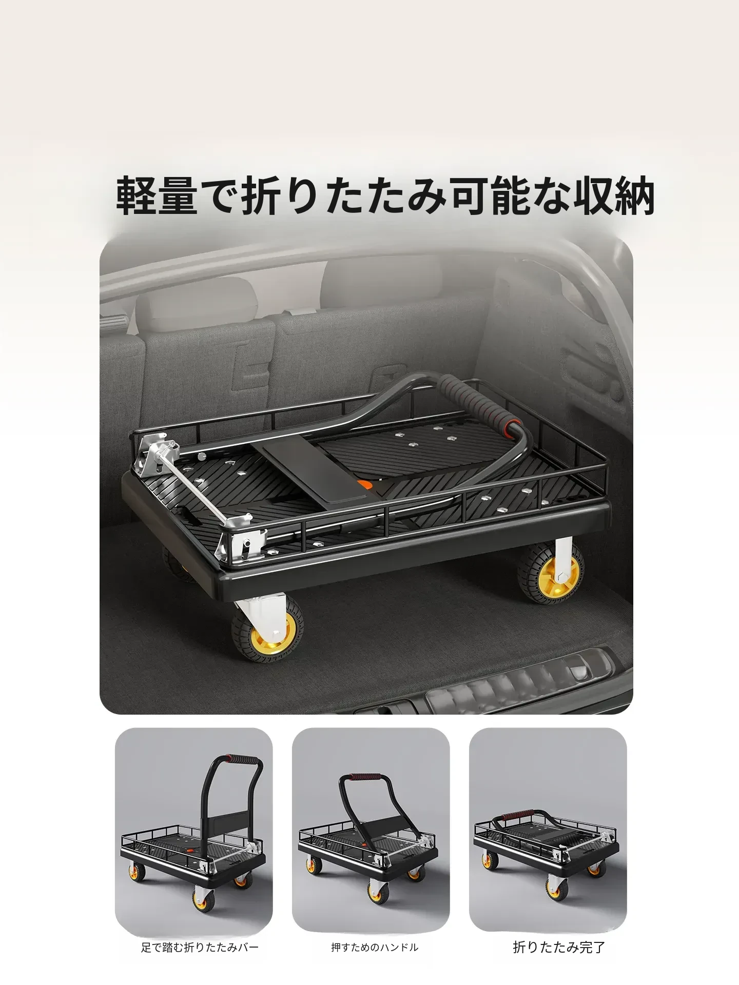 折りたたみ式手押し車!家庭用の便利な小型運搬車、フェンス付きで荷物の運搬や宅配受け取りに最適。軽量で持ち運びも簡単!あなたの生活をもっとスムーズにします。