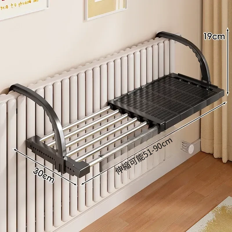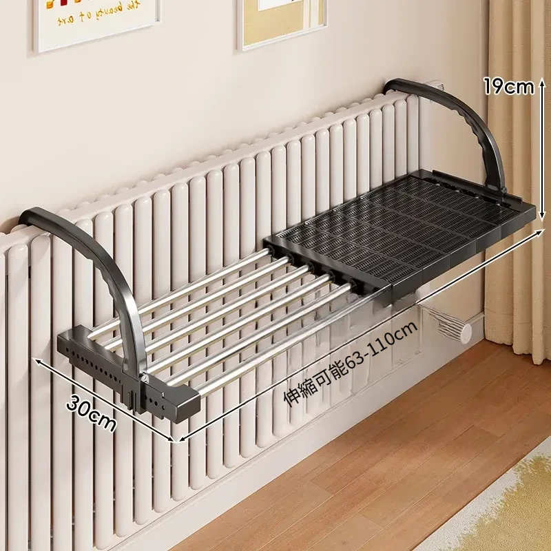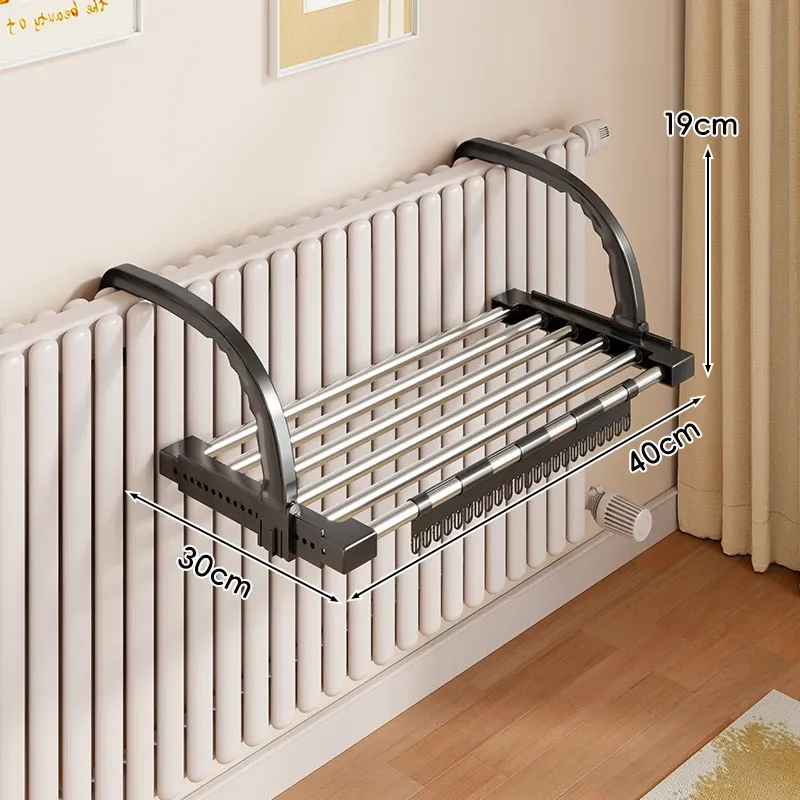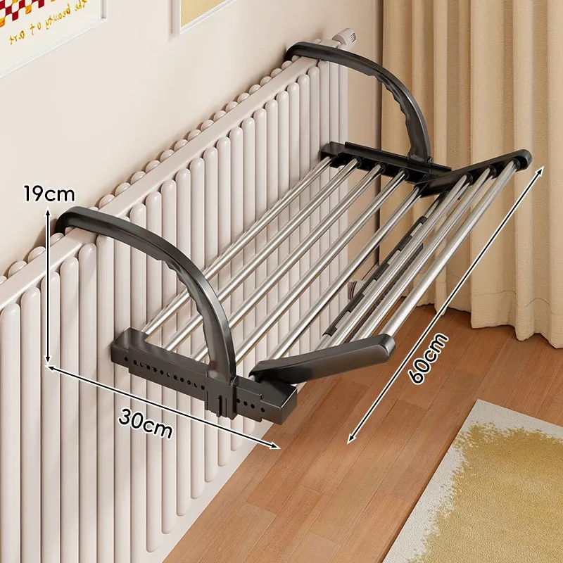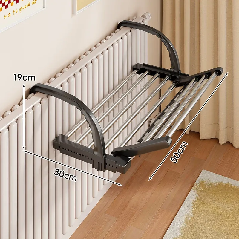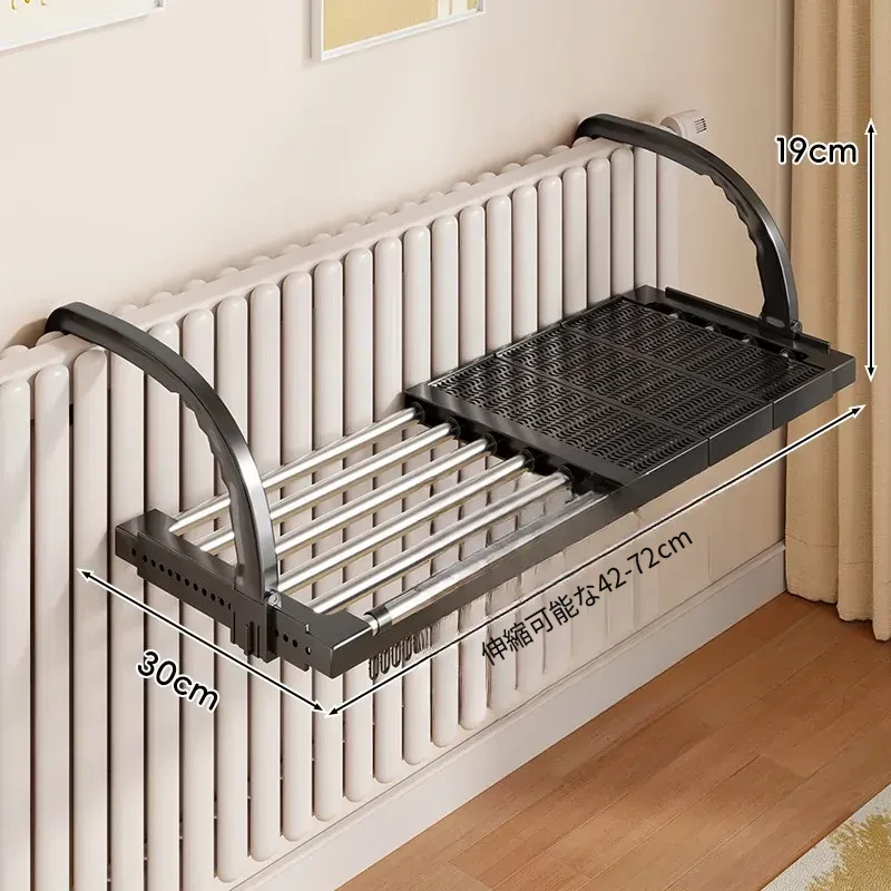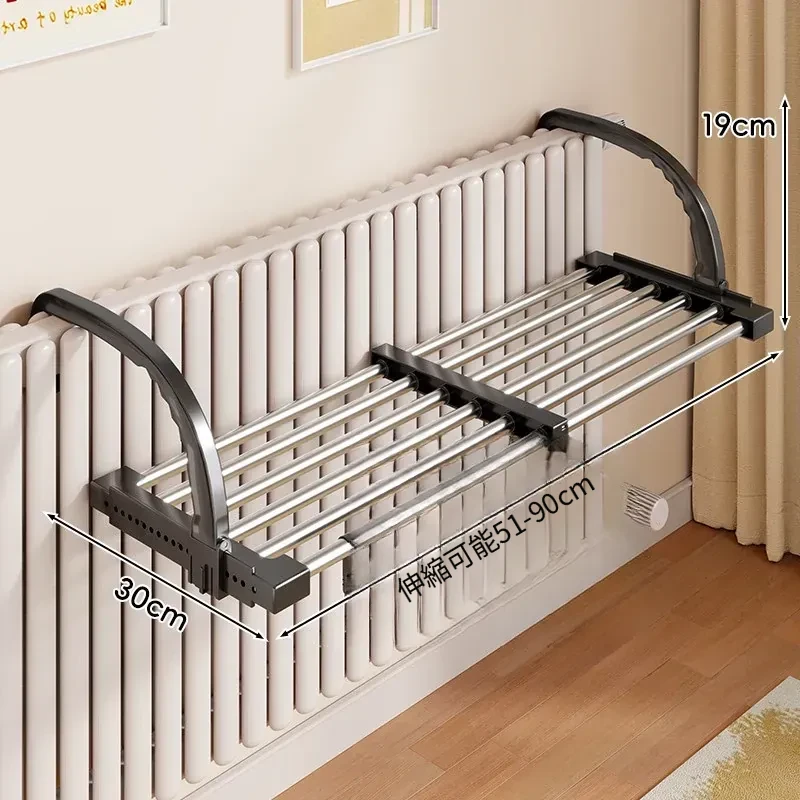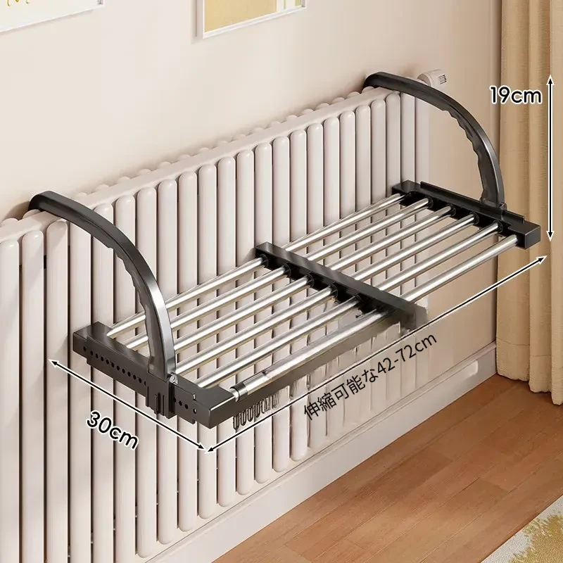 伸縮式暖房用物干しラック!バルコニーの手すりにもぴったりで、靴や衣類を効率的に干せる便利な折りたたみ収納ラック。家でのスペースを有効活用して、快適な生活をサポートします!