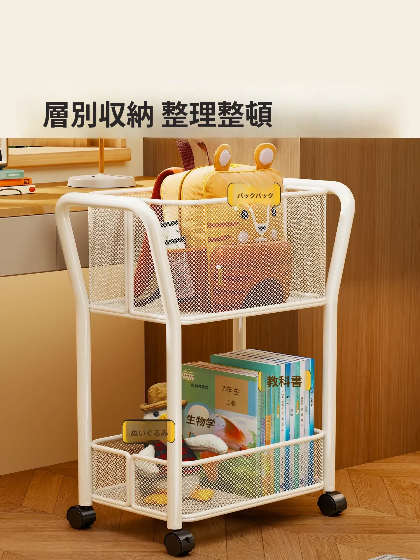 学生に最適!キャスター付きの移動式書棚 - デスクサイドで便利に使える書類収納ラック!オフィスや学習スペースをすっきり整理整頓。