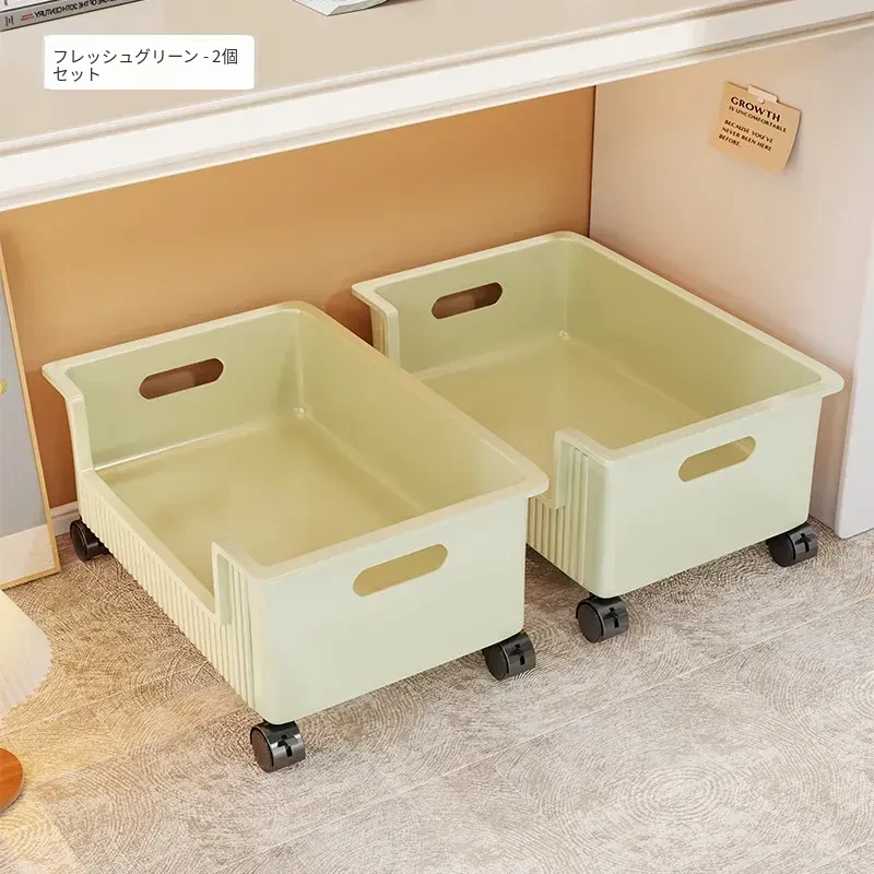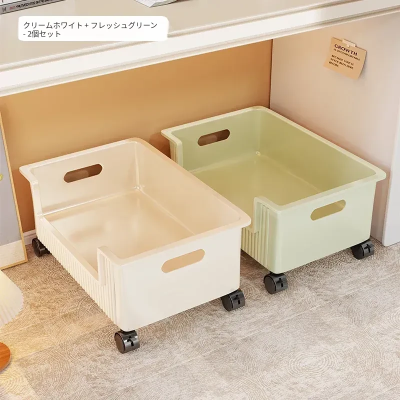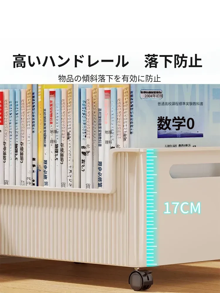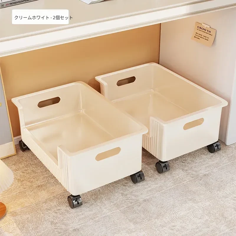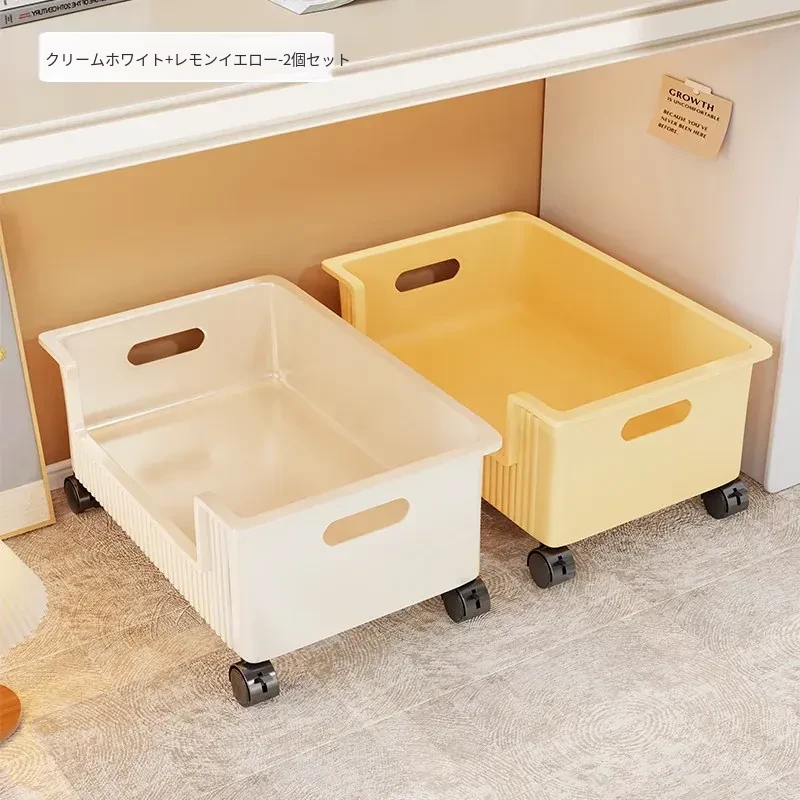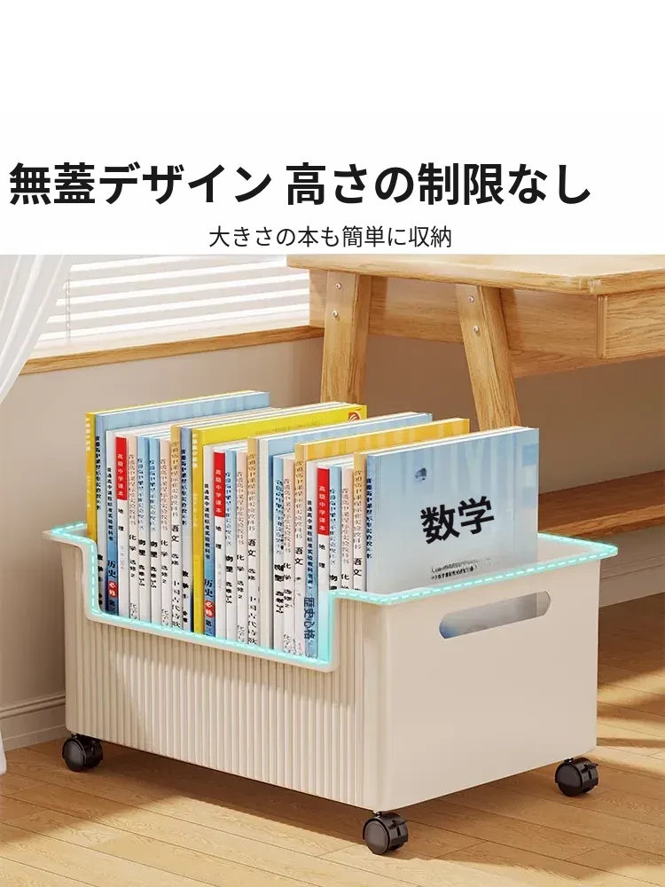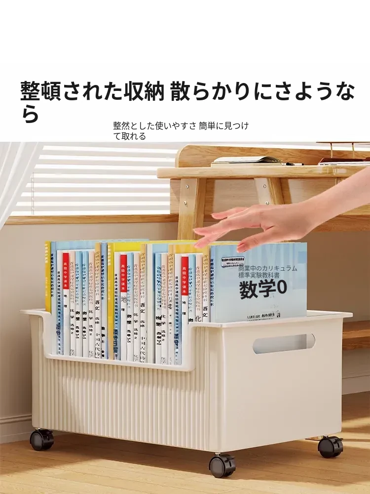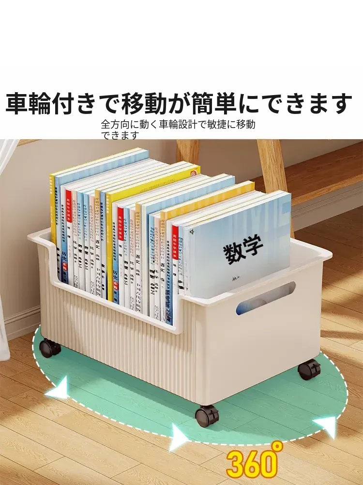 移動式収納ボックス - 学生の教室や寮に最適!本をすっきり収納できるキャスター付きの便利な収納ケース。机の下にぴったりフィットし、スペースを有効活用!