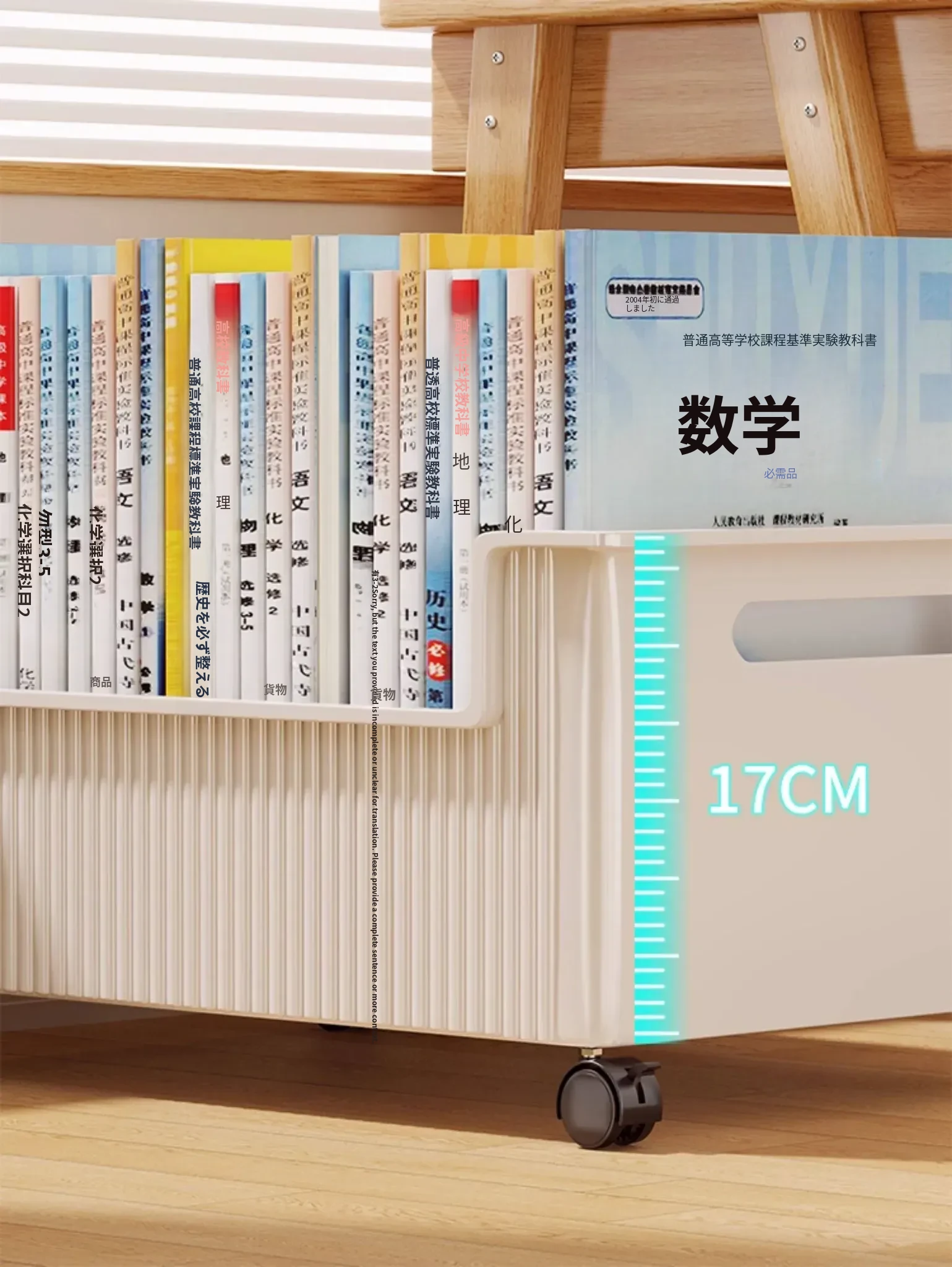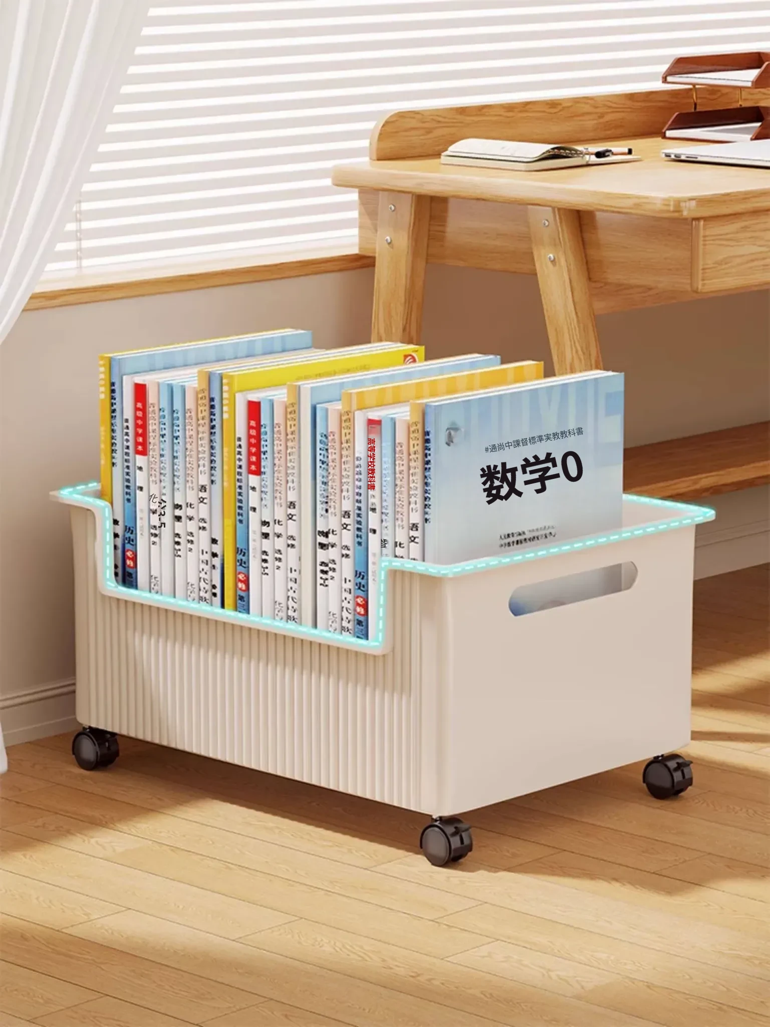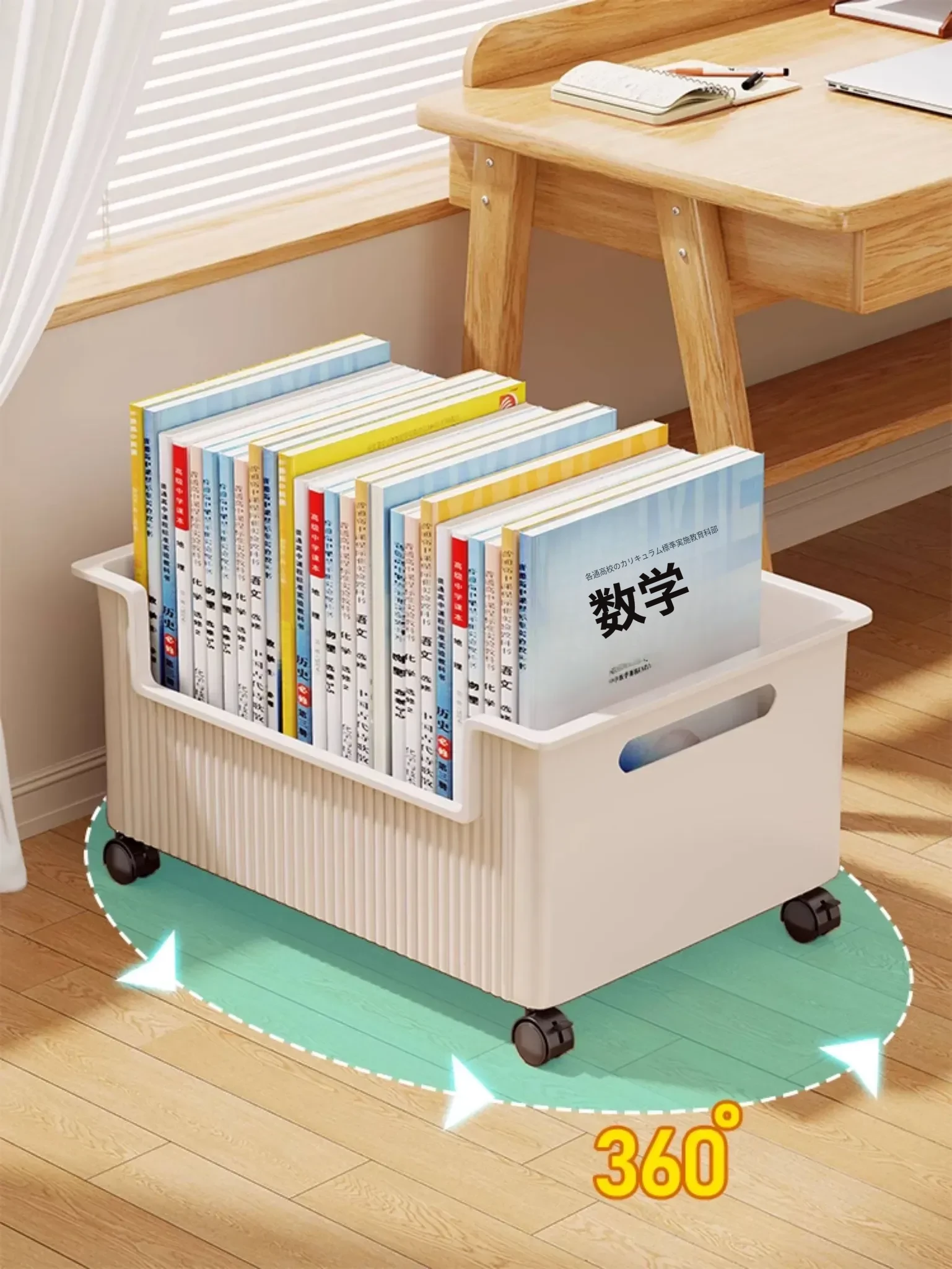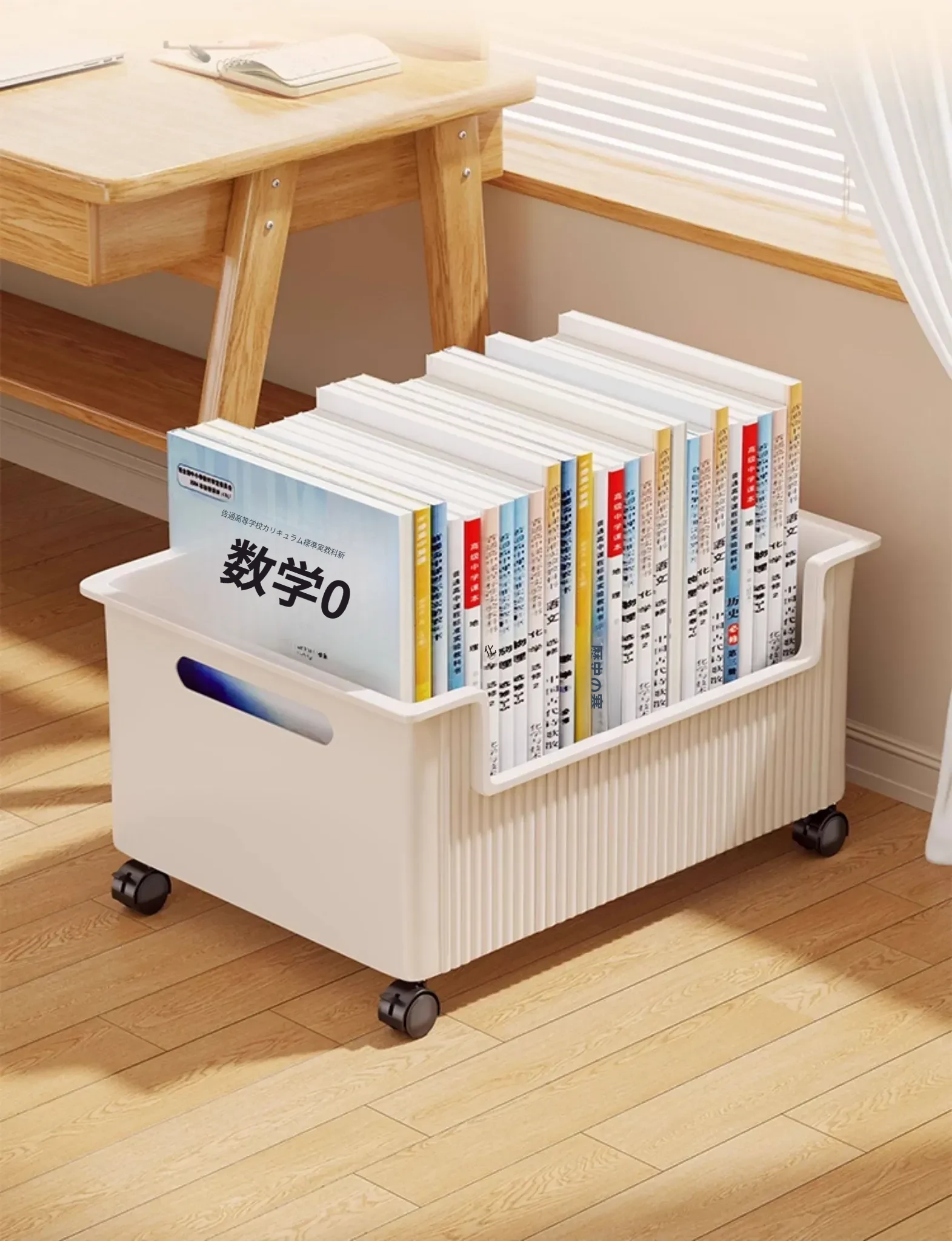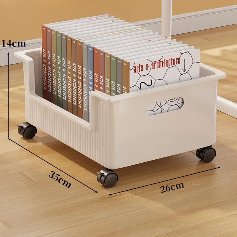 移動式収納ボックス - 学生の教室や寮に最適!本をすっきり収納できるキャスター付きの便利な収納ケース。机の下にぴったりフィットし、スペースを有効活用!
